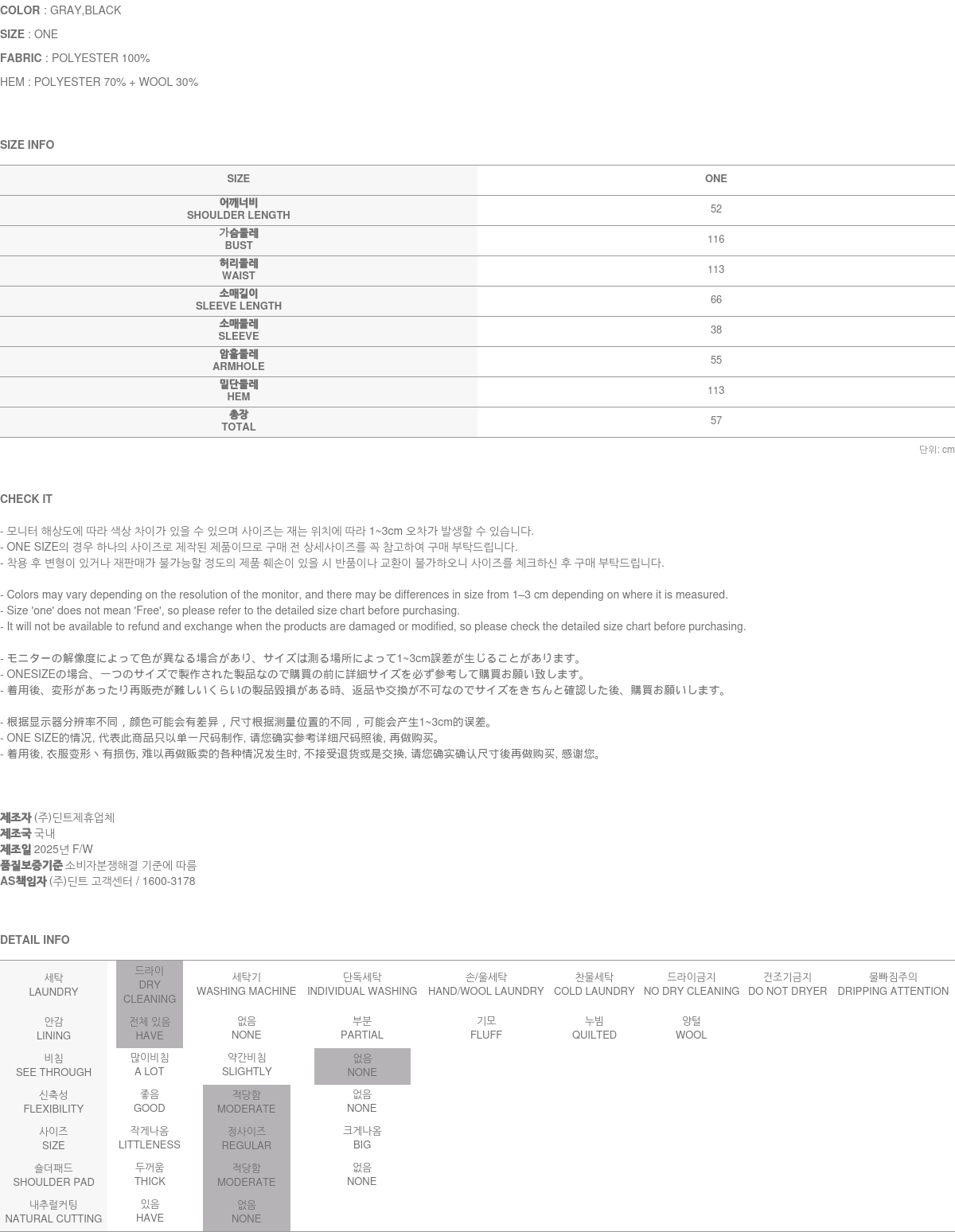 173CM模特身穿ONE尺寸,灰色。