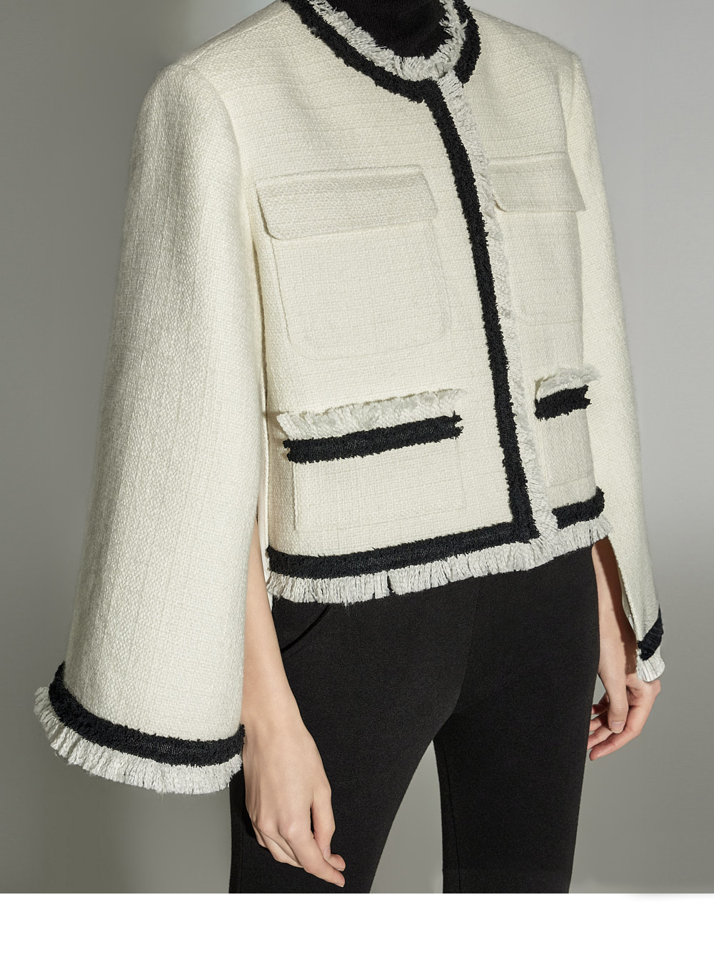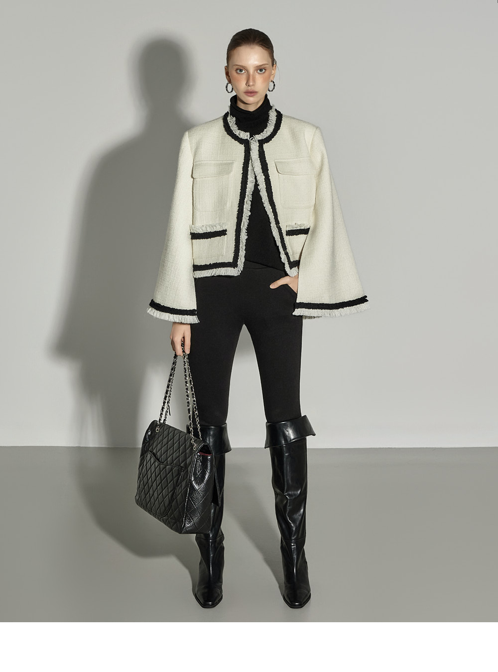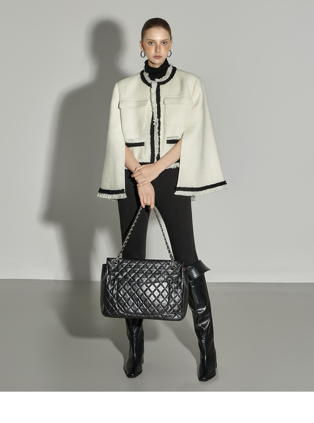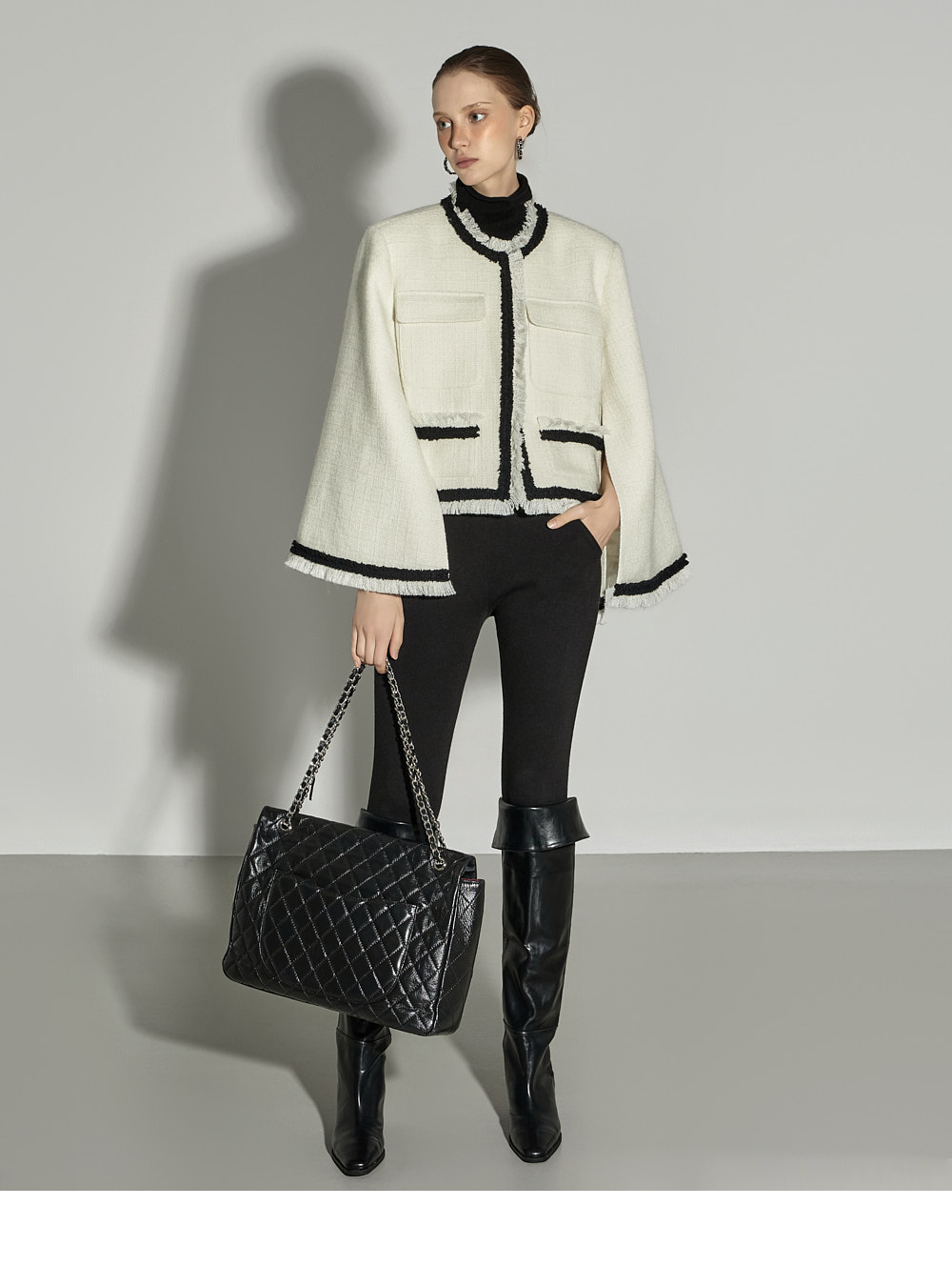 搭配花呢织纹与拼色线条,凸显高级质感。