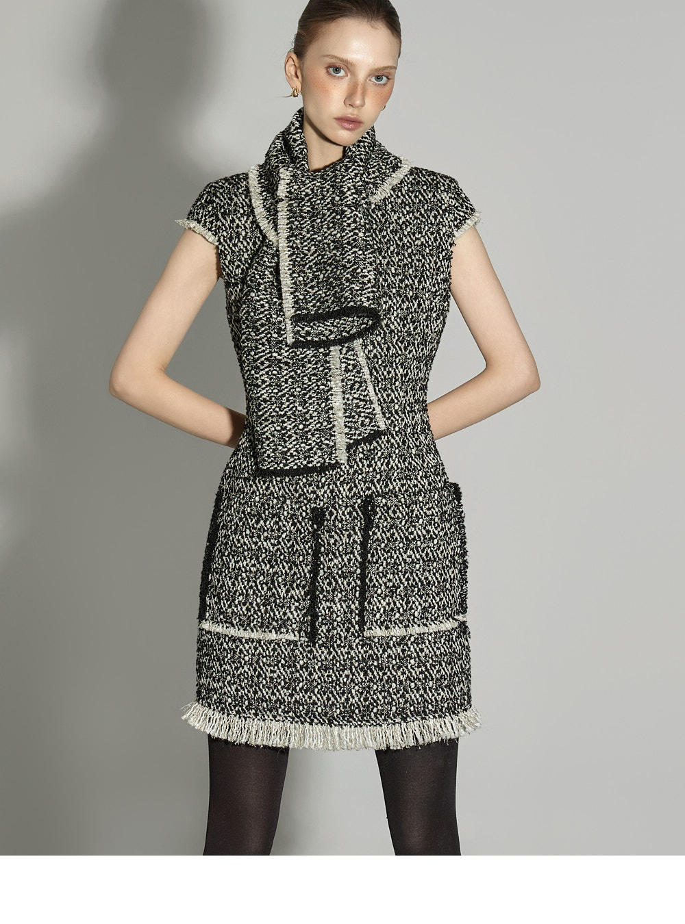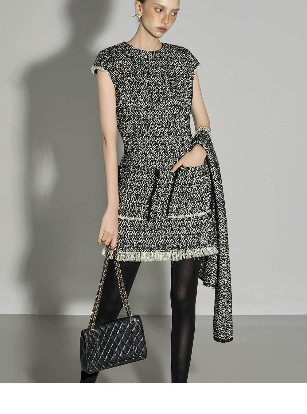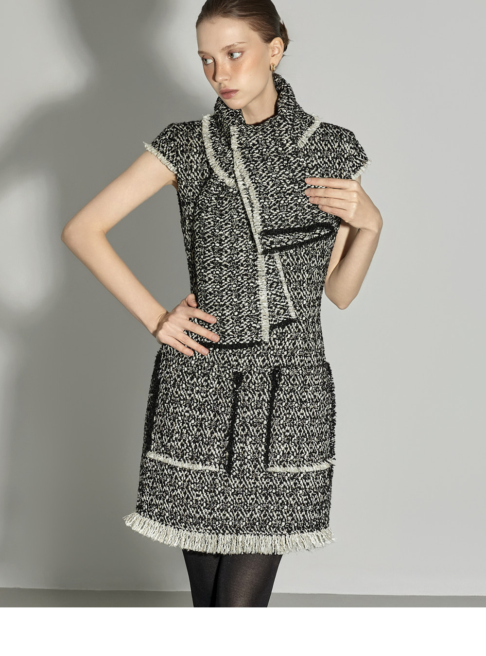 전면 캡소매 디테일로 페미닌한 라인을 강조해주며,