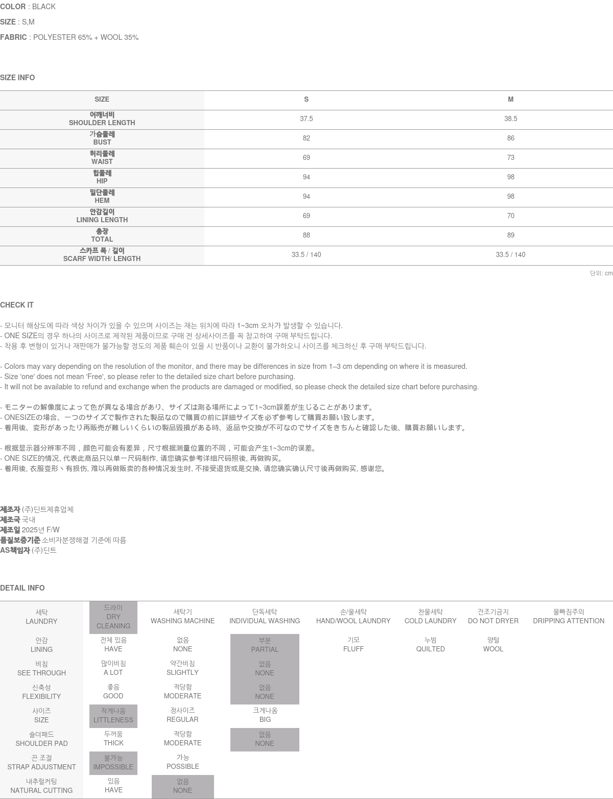 174CM 모델 S 사이즈, BLACK 컬러 착용하였습니다.