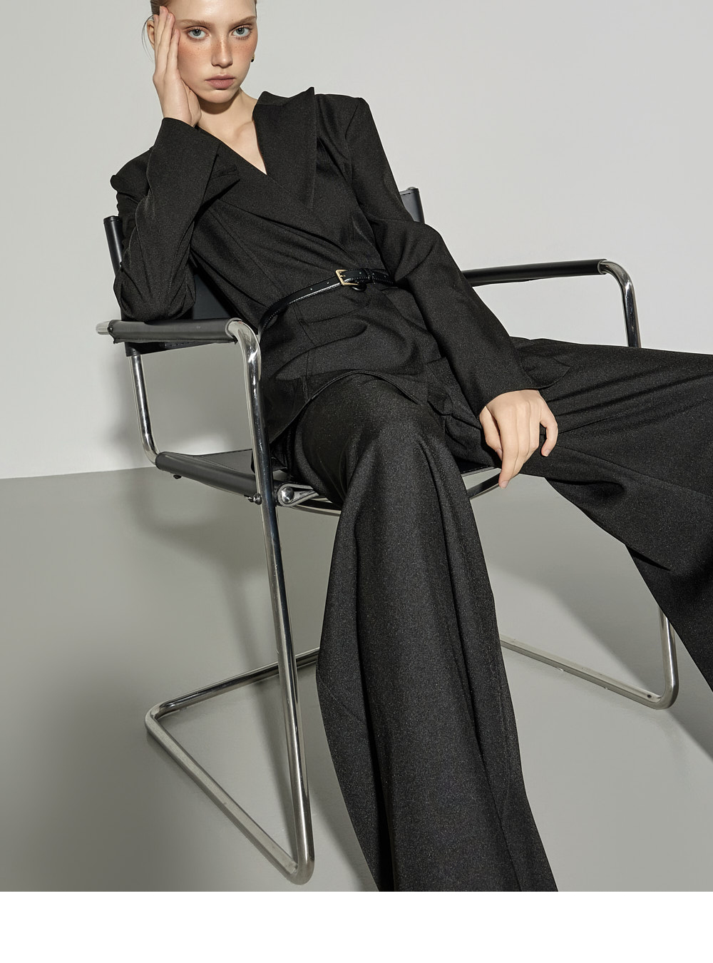 전체적으로 슬림한 핏과 부츠컷 팬츠 라인이