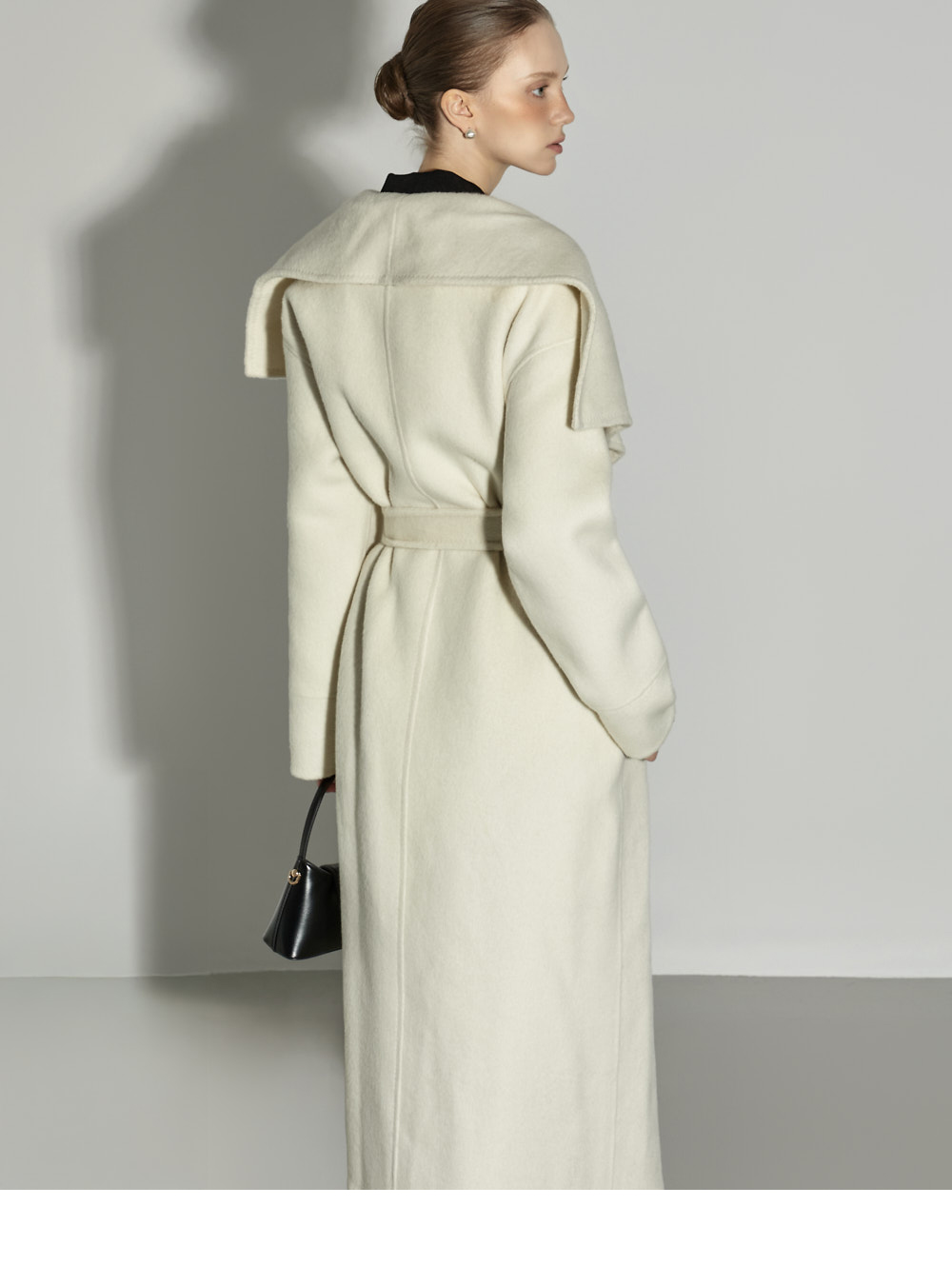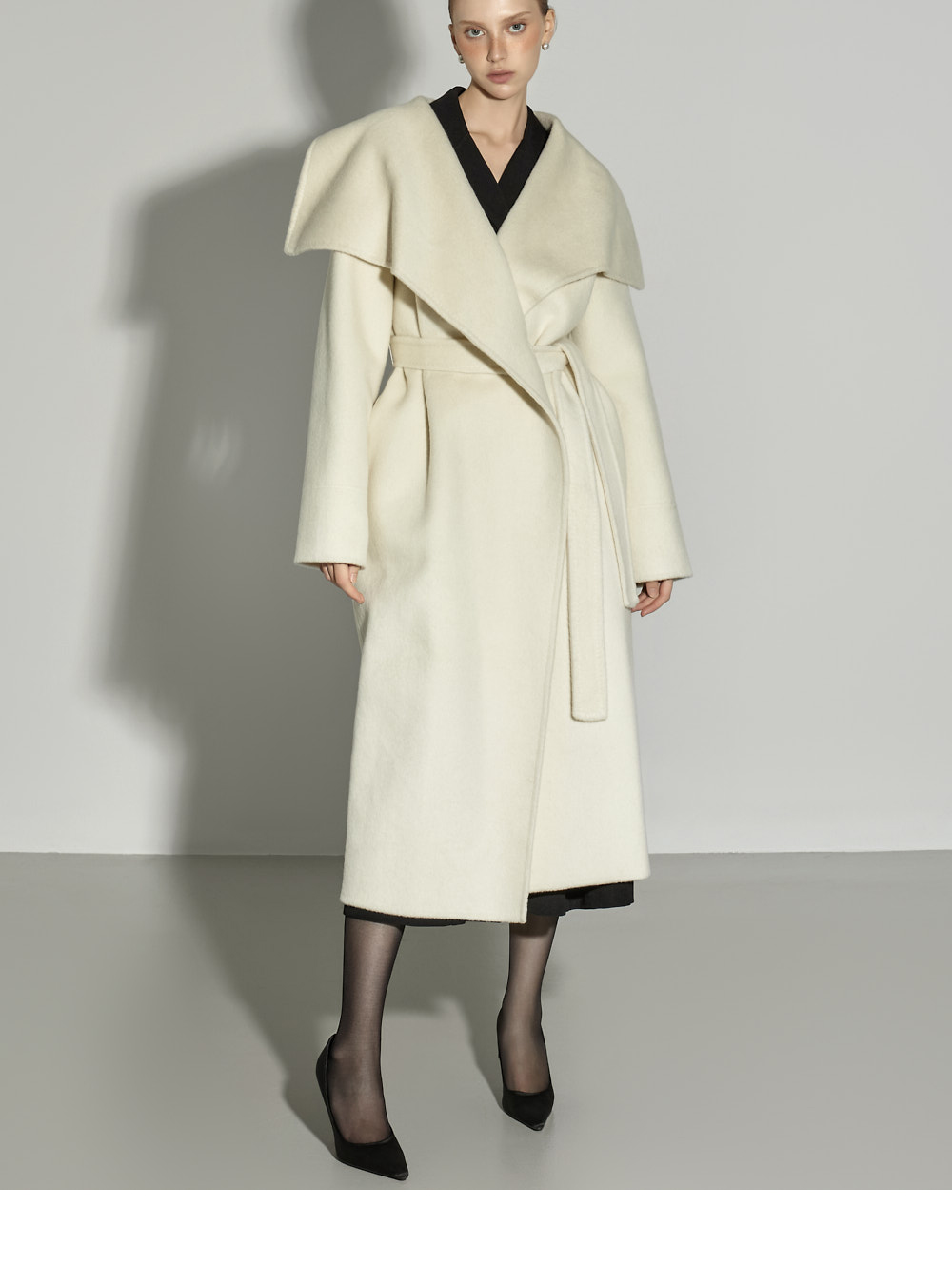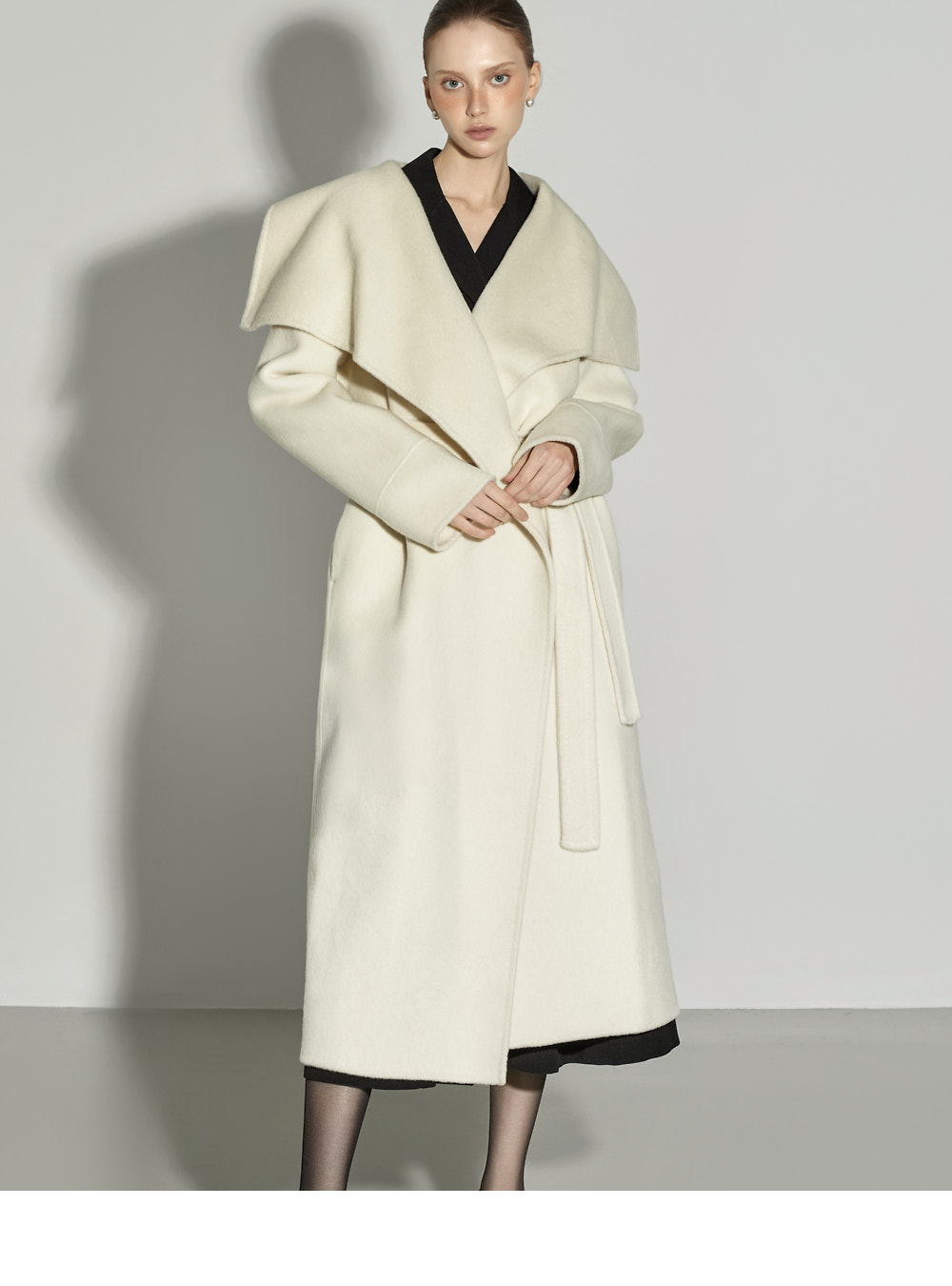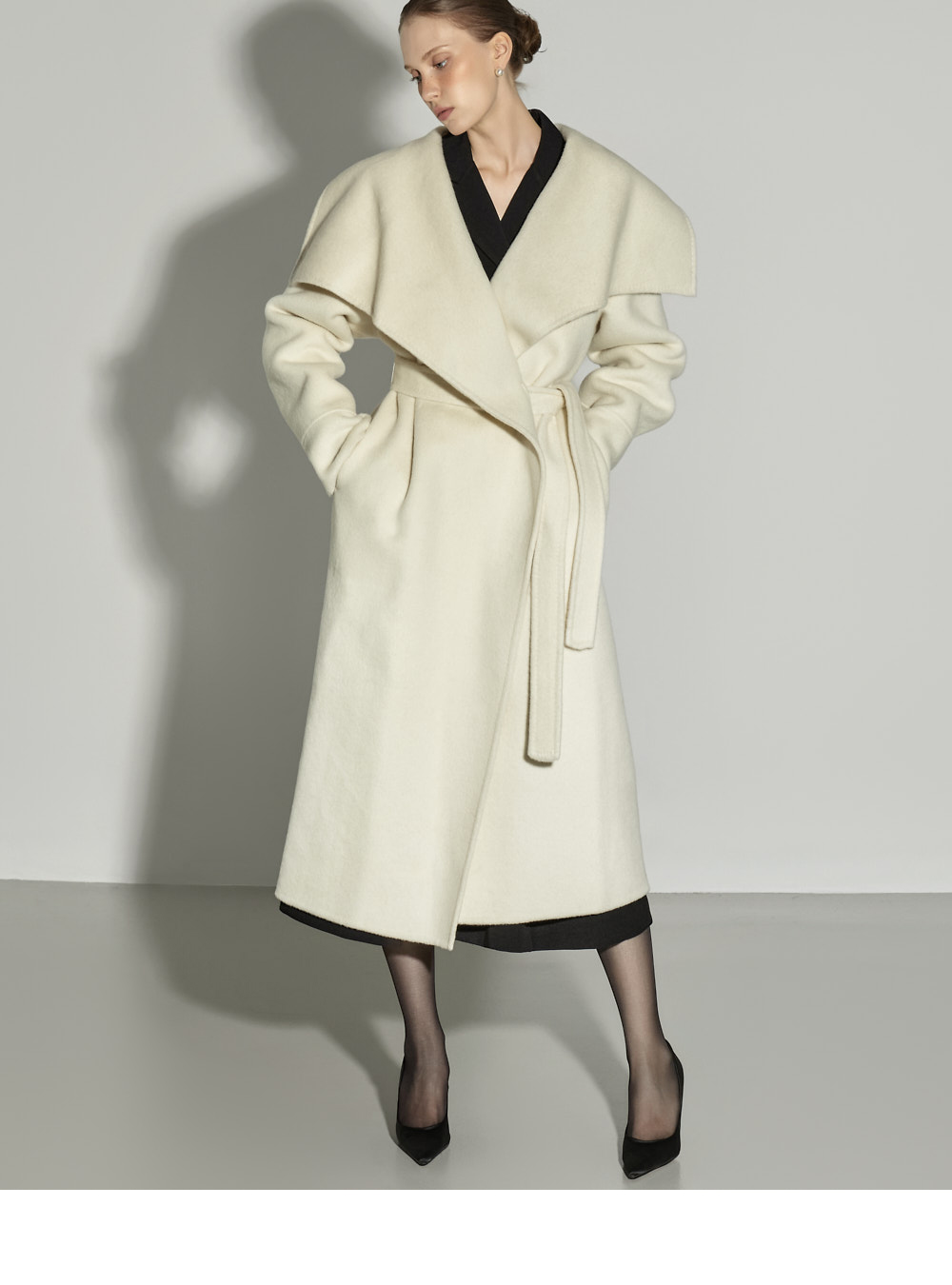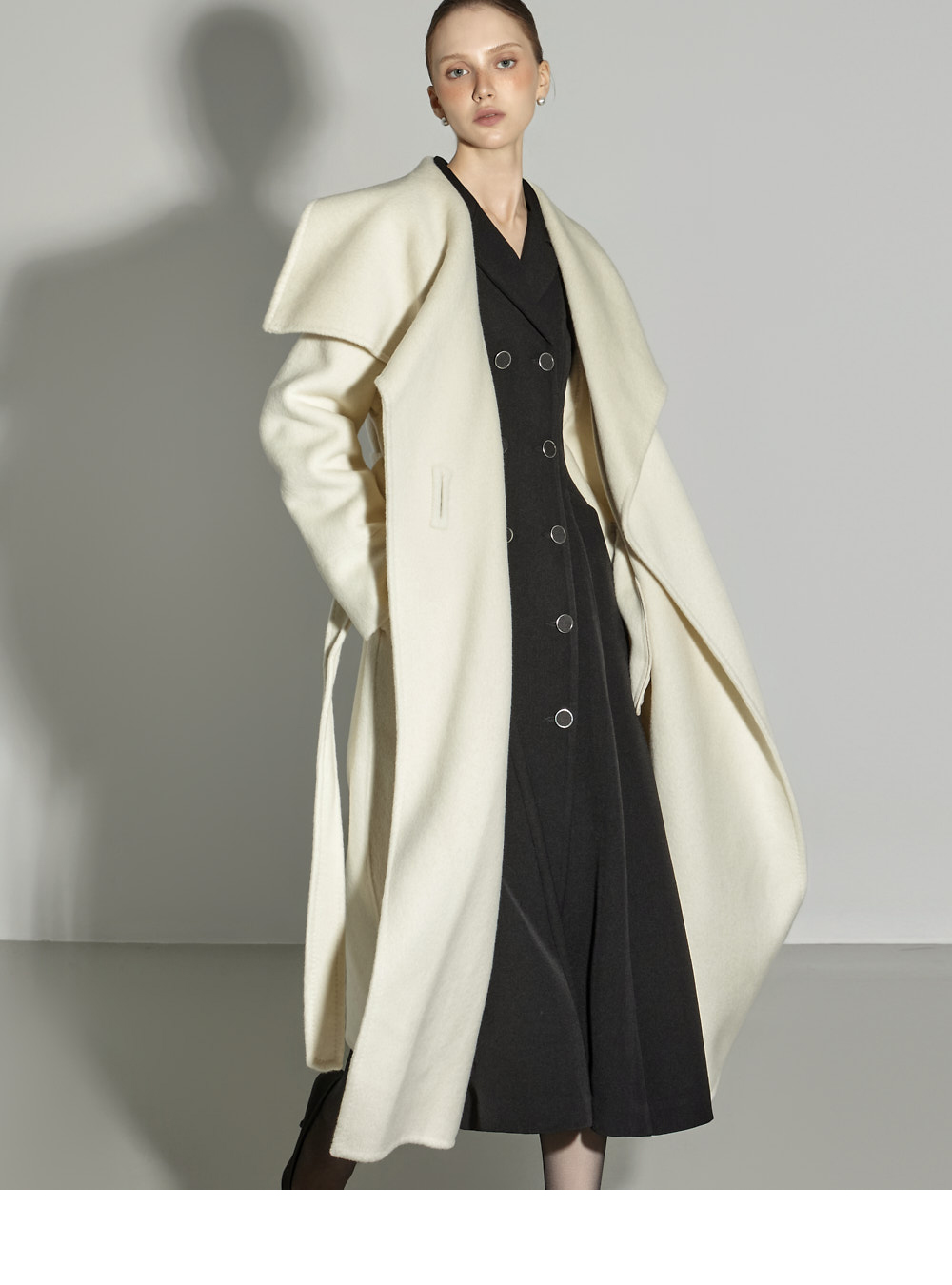 세련된 실루엣이 돋보이는 양모 코트입니다.