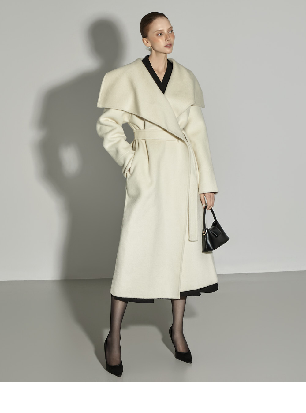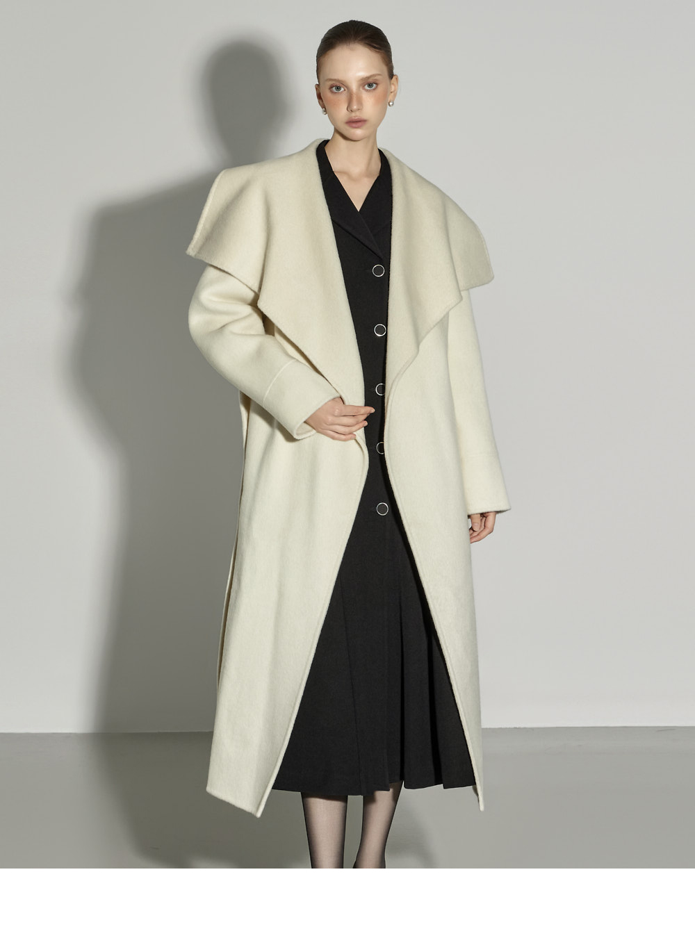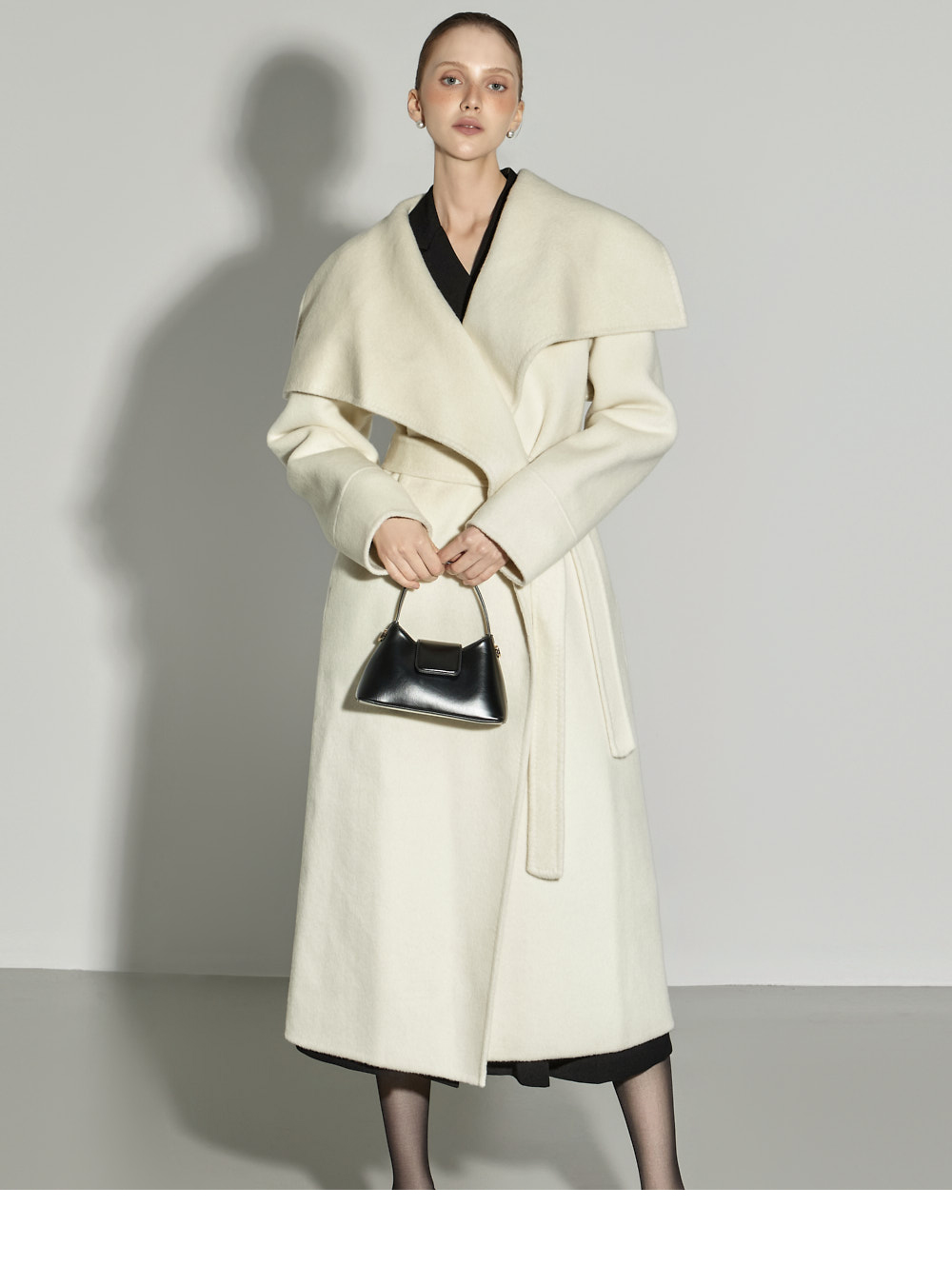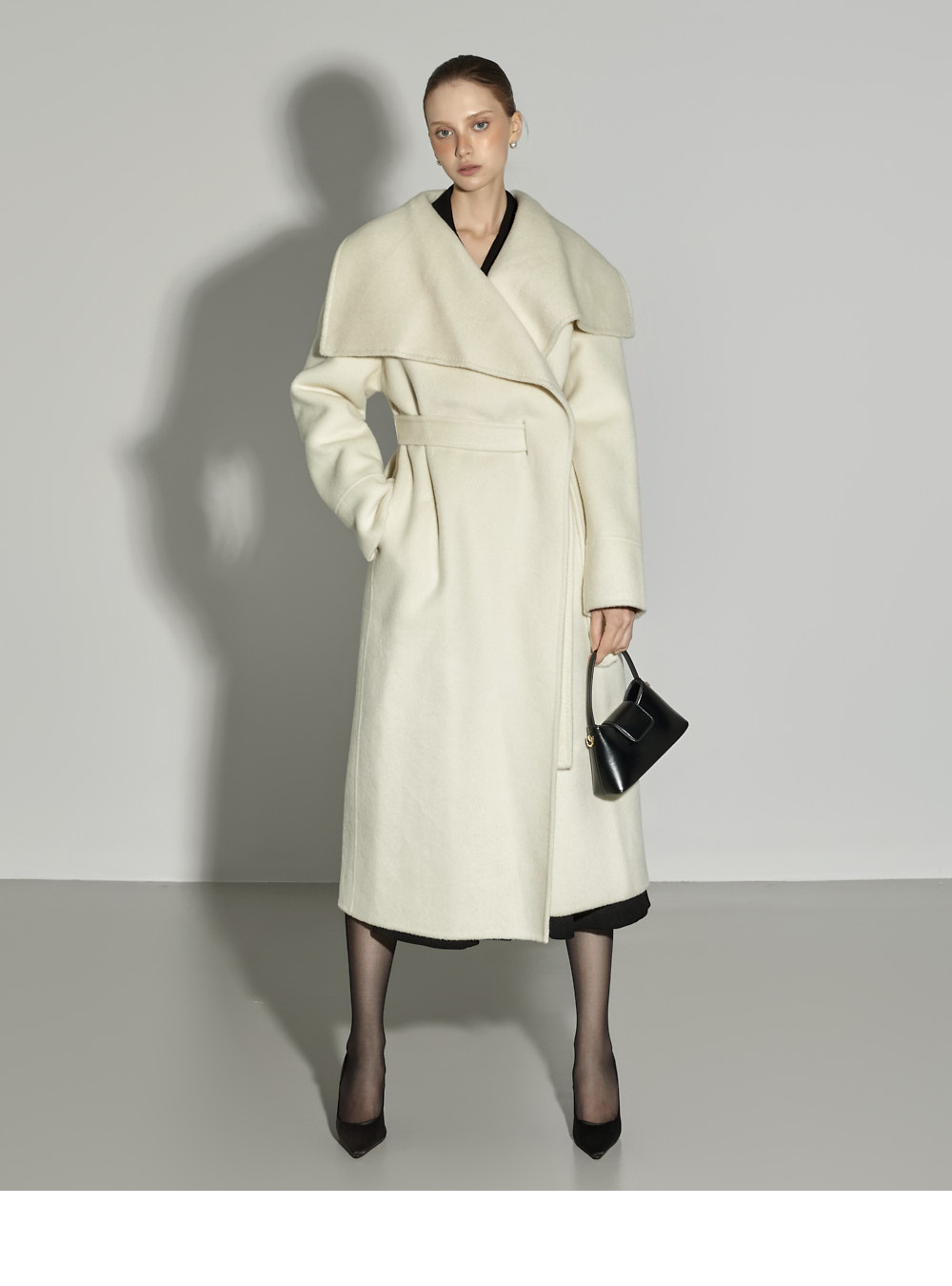 세련된 실루엣이 돋보이는 양모 코트입니다.