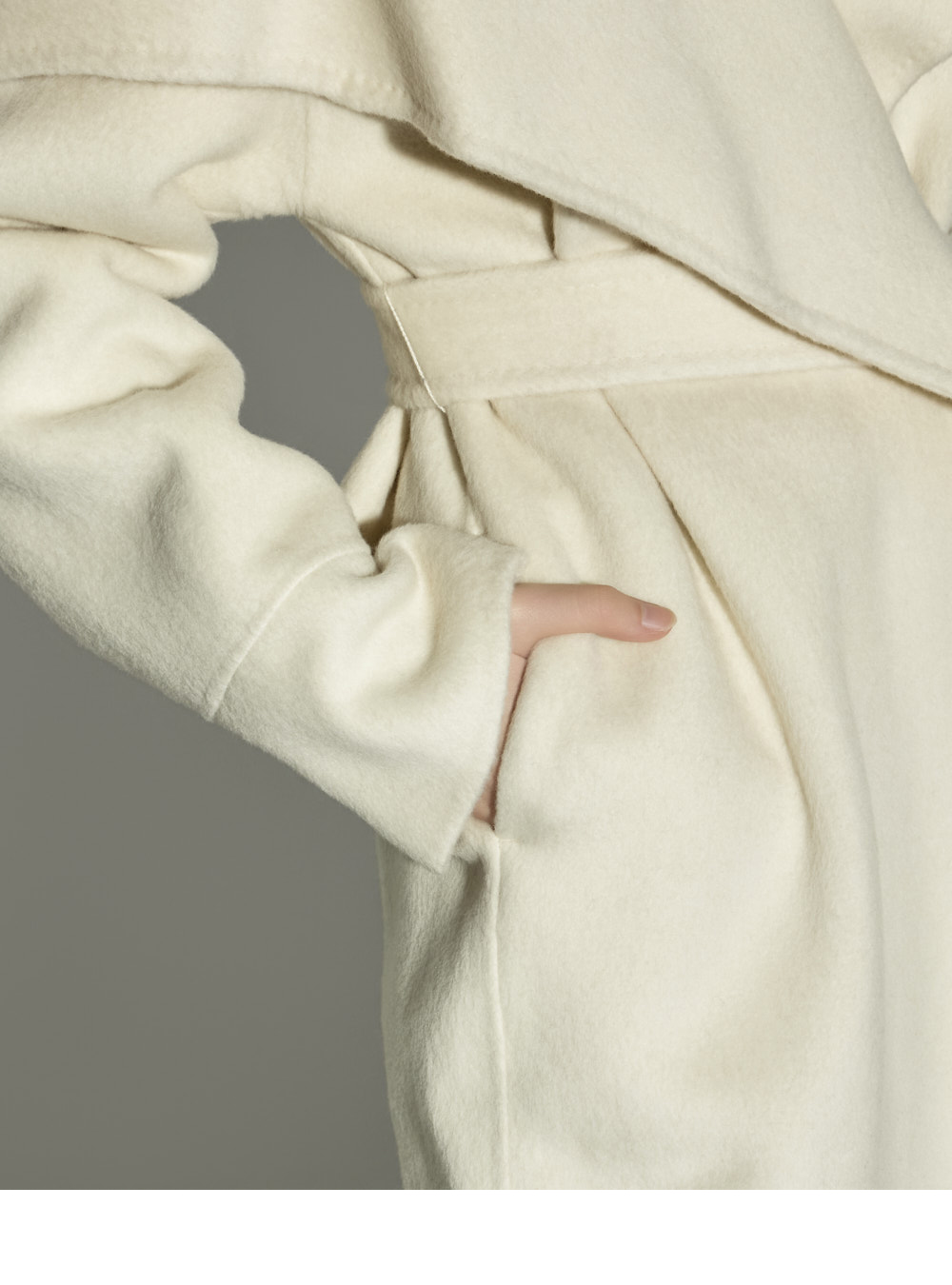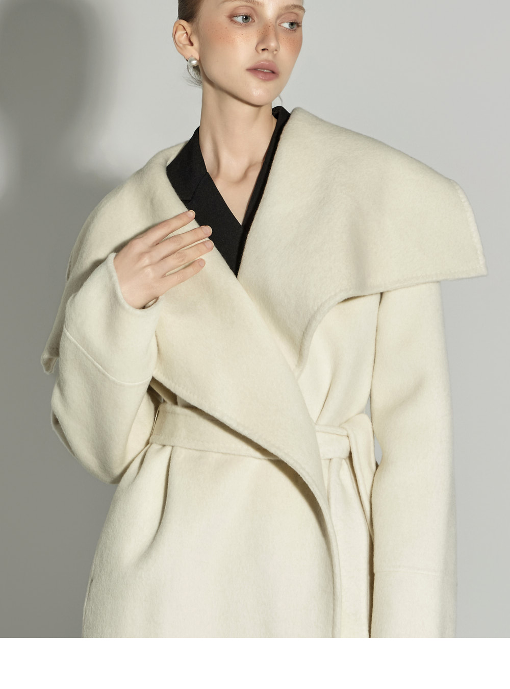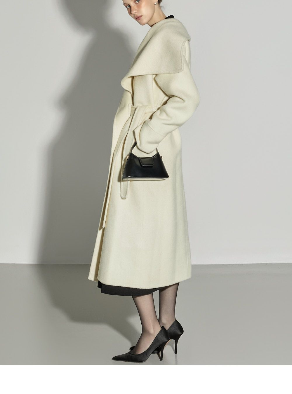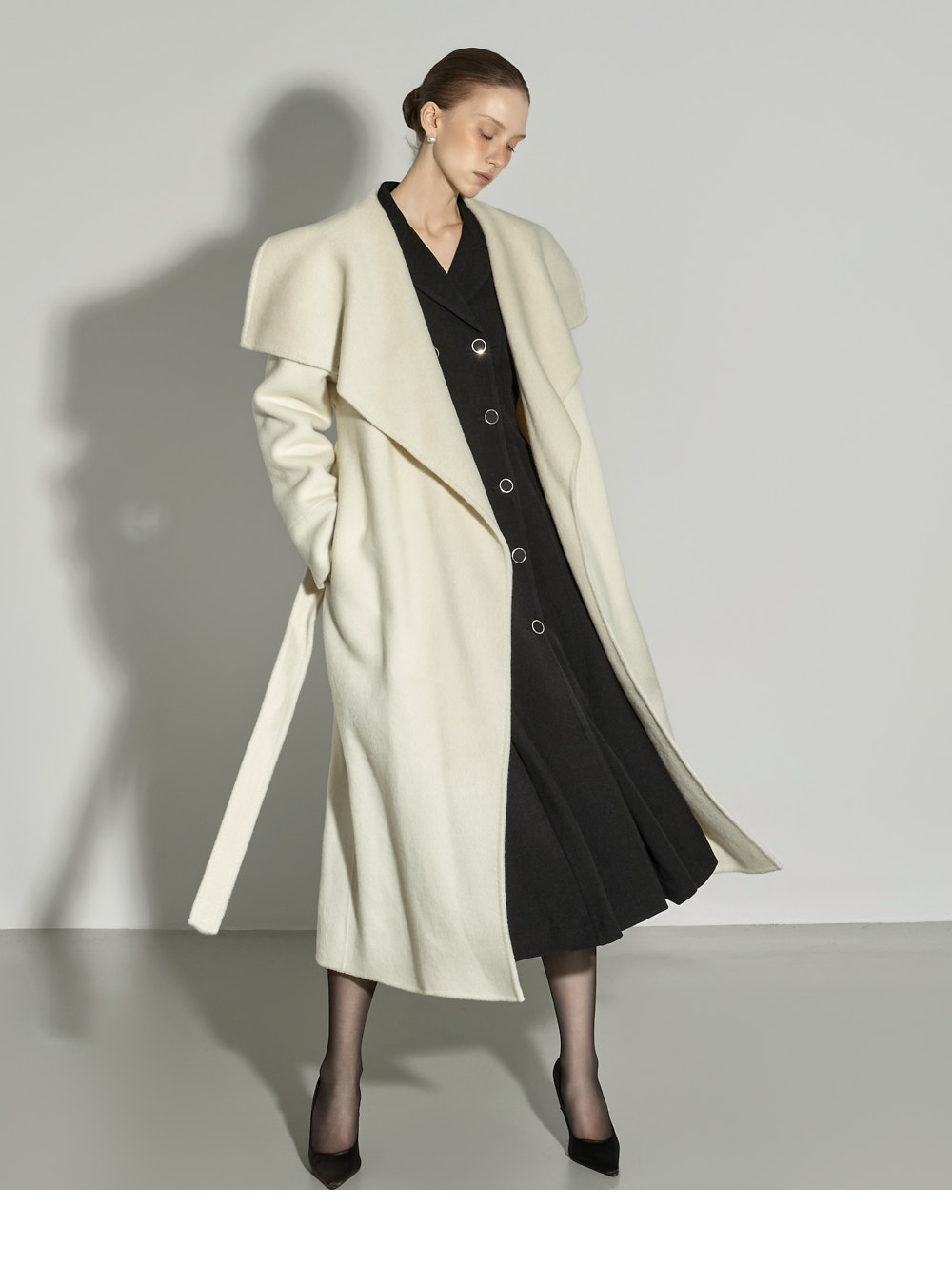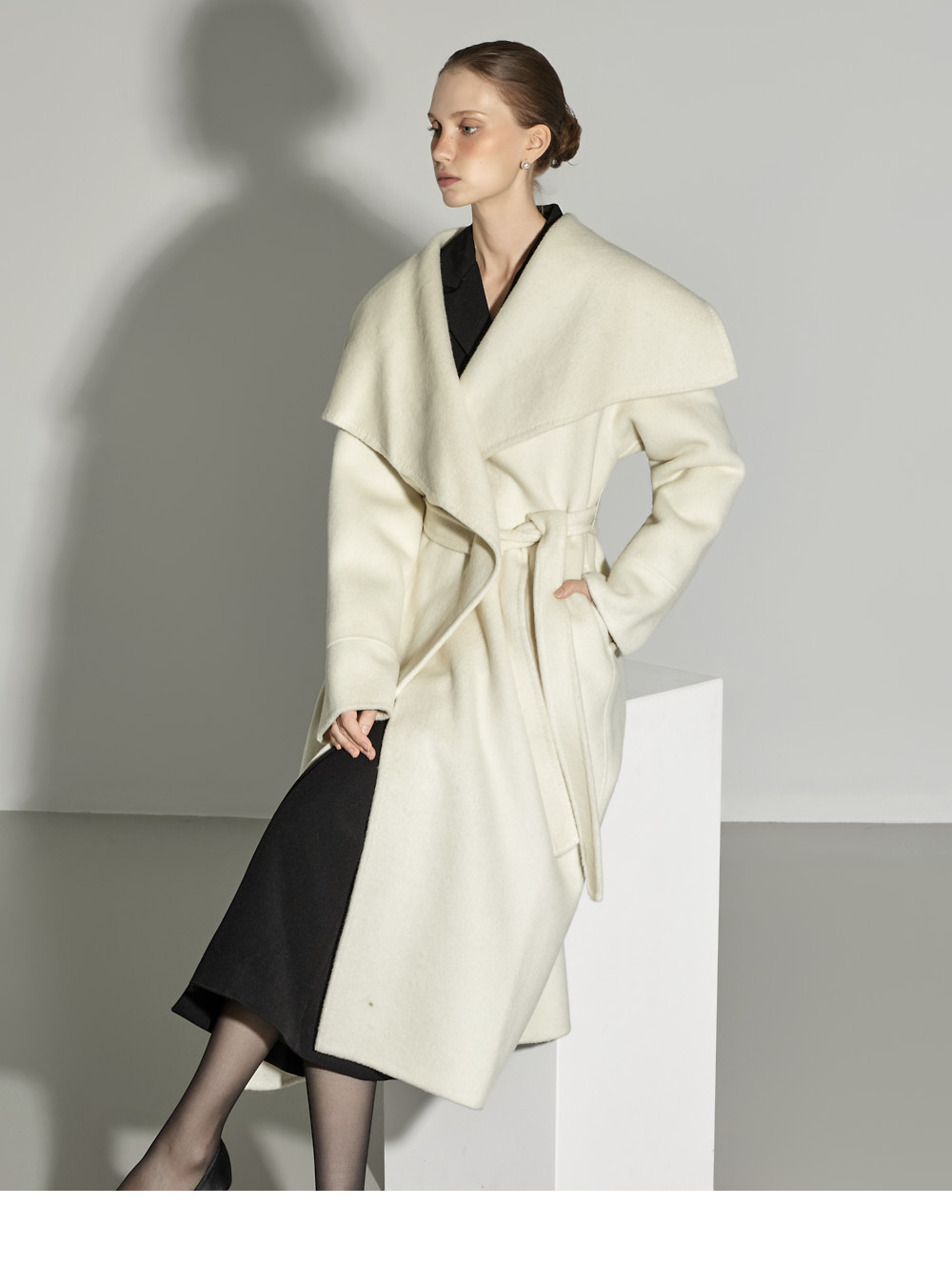 세련된 실루엣이 돋보이는 양모 코트입니다.