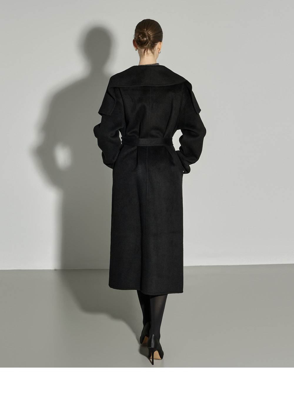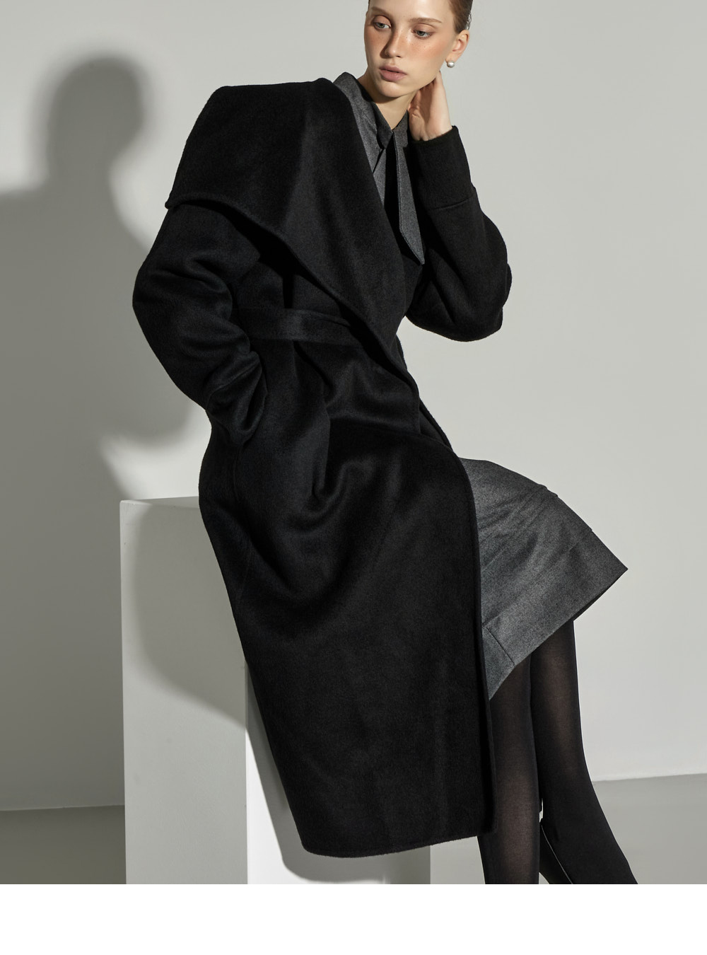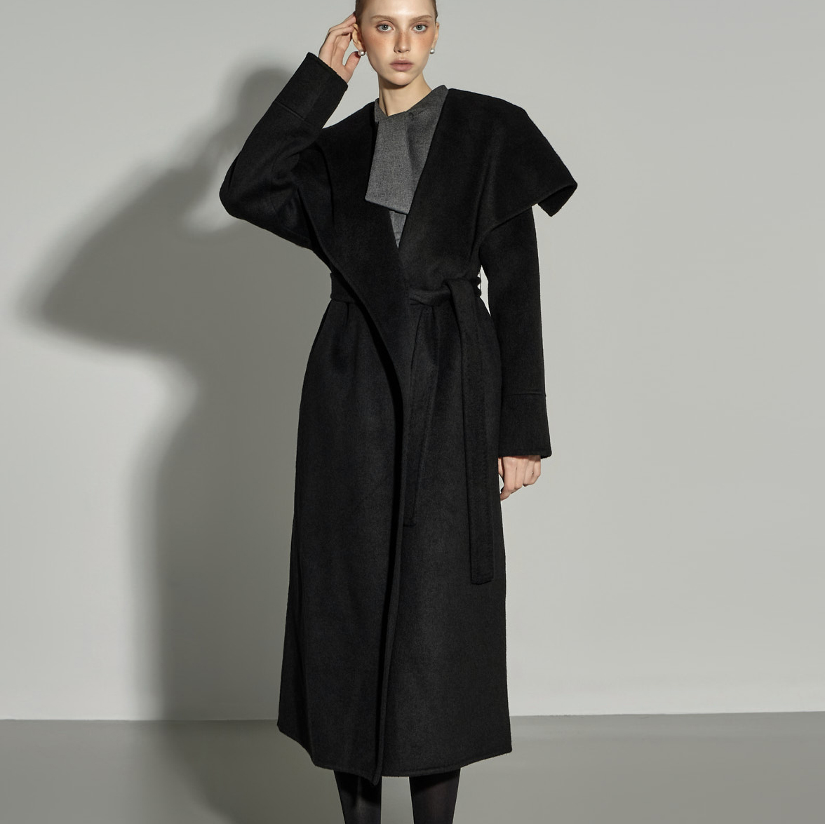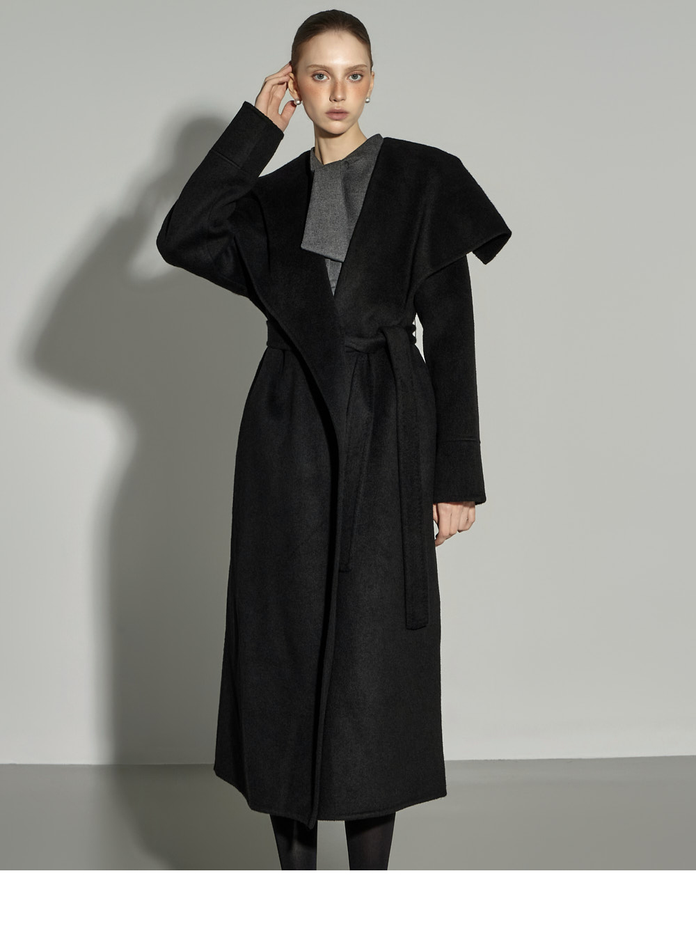 세련된 실루엣이 돋보이는 양모 코트입니다.
