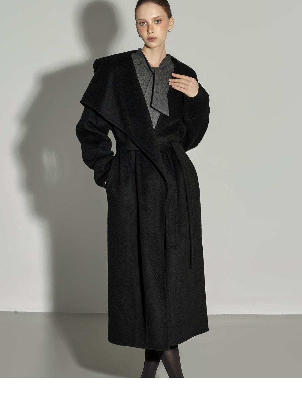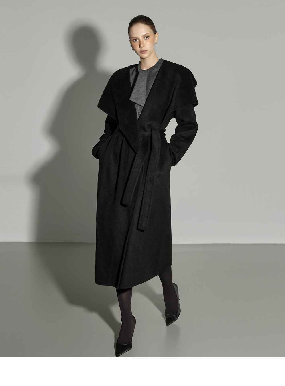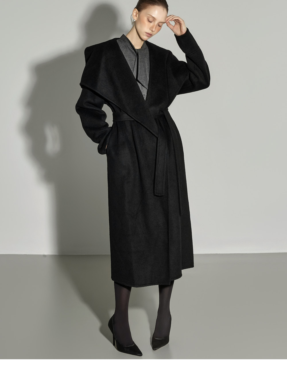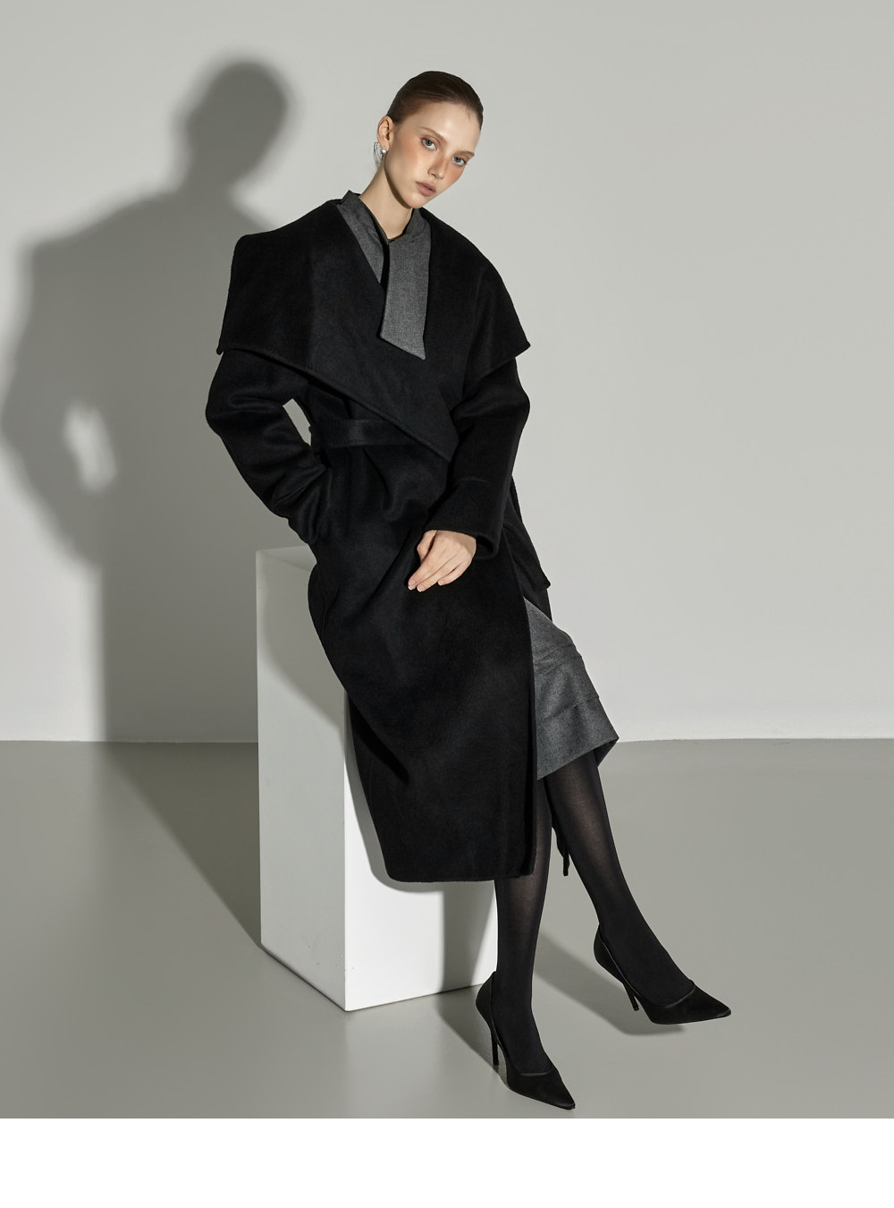 세련된 실루엣이 돋보이는 양모 코트입니다.