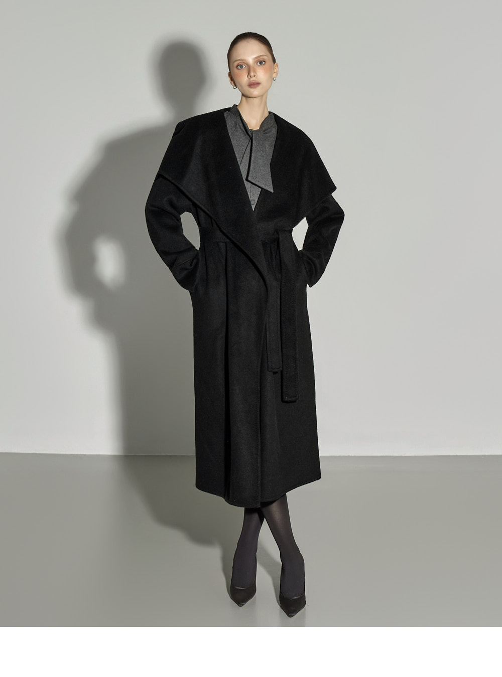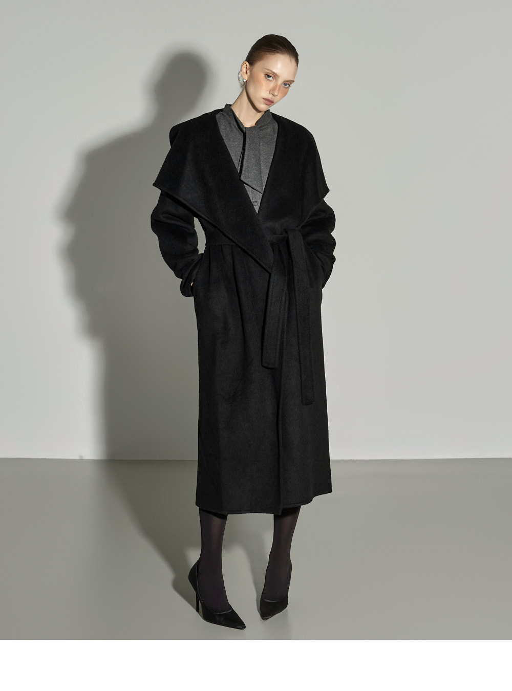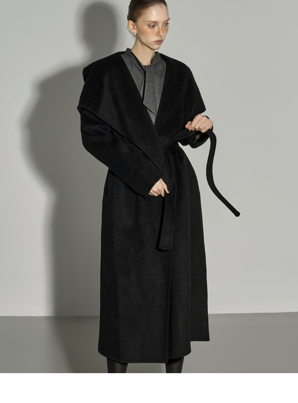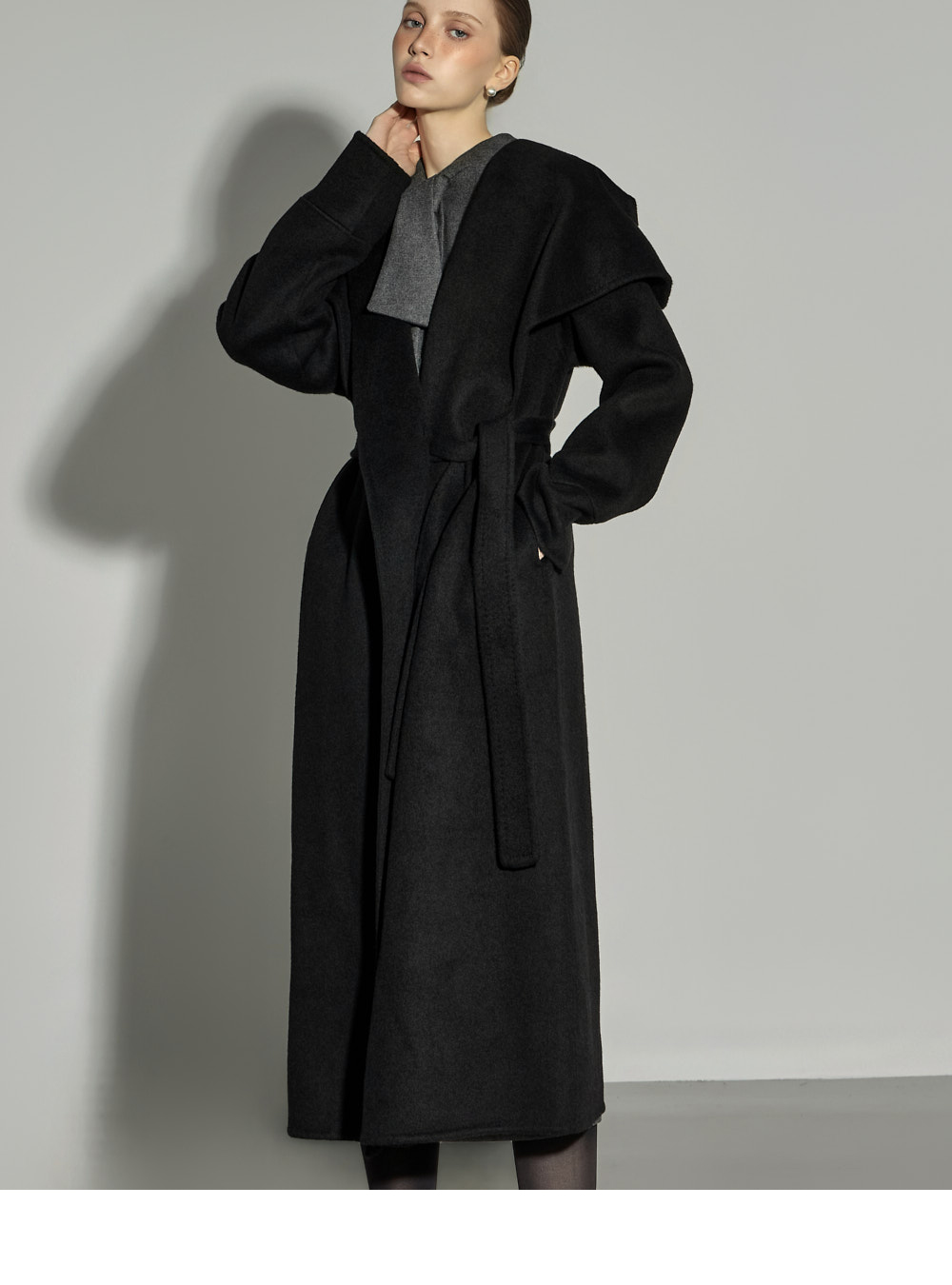 세련된 실루엣이 돋보이는 양모 코트입니다.