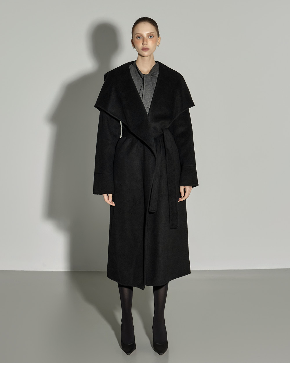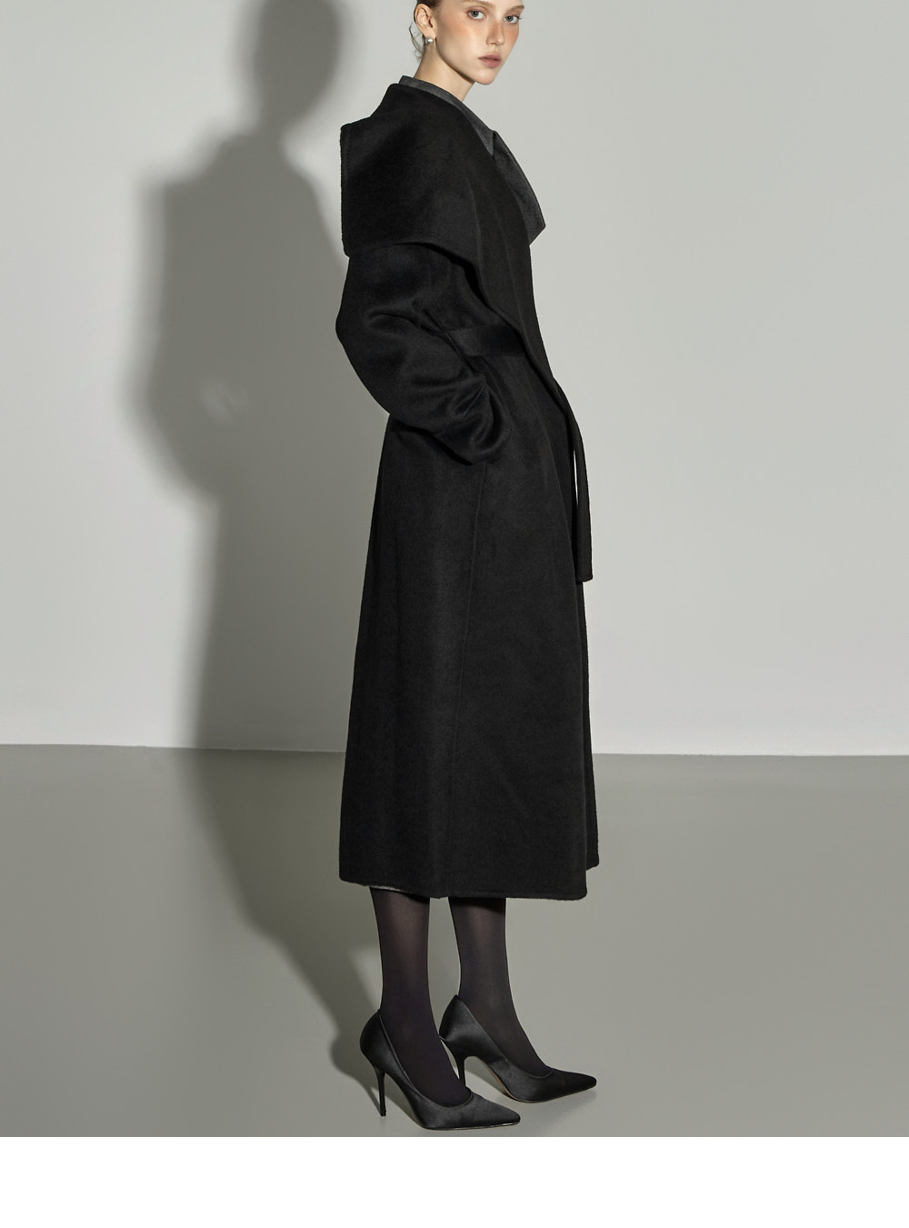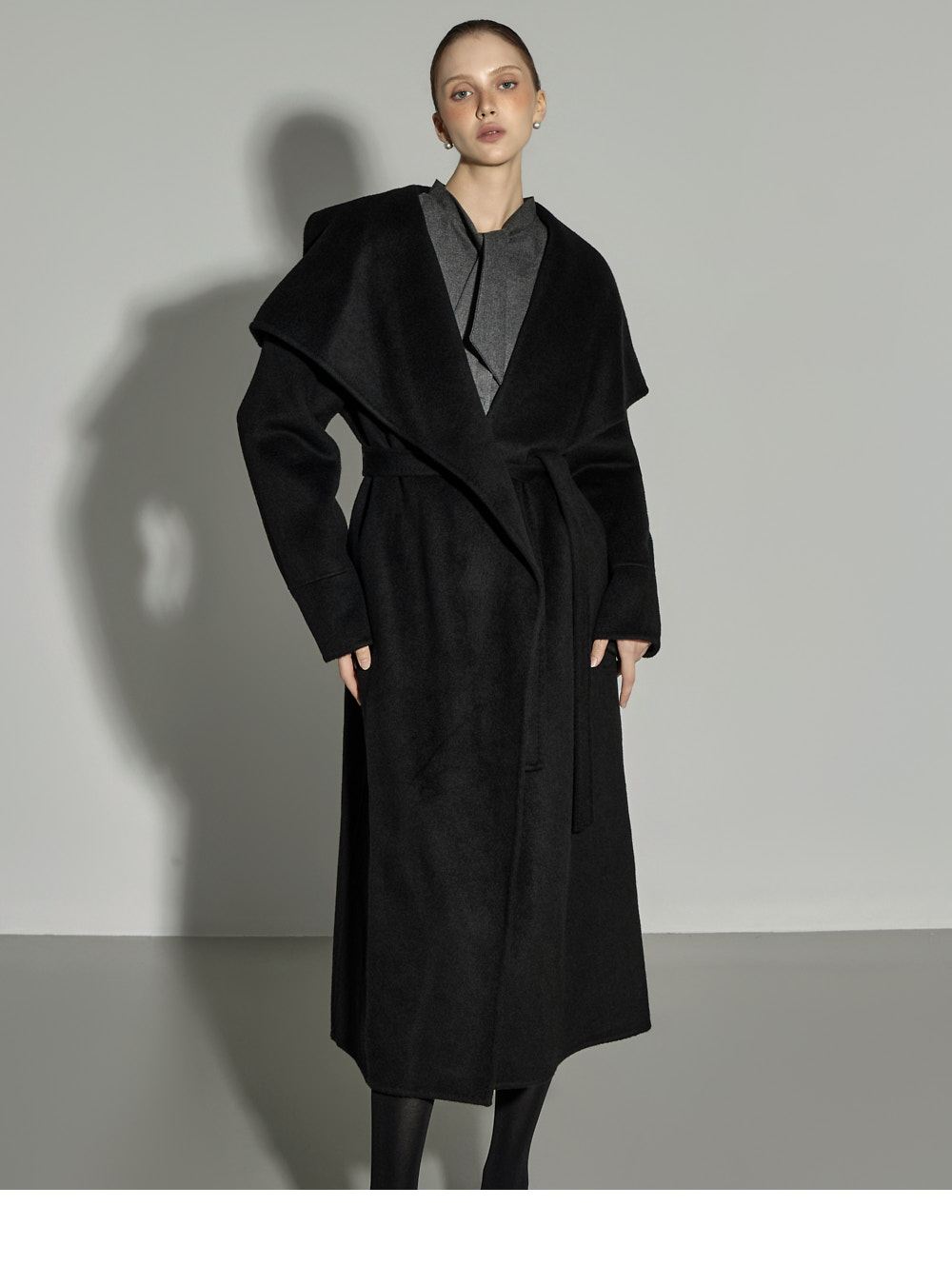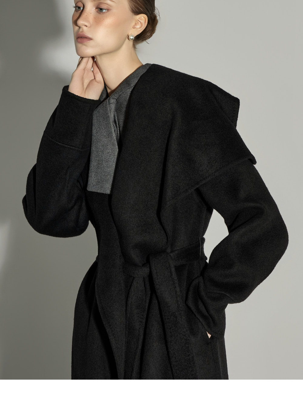 세련된 실루엣이 돋보이는 양모 코트입니다.