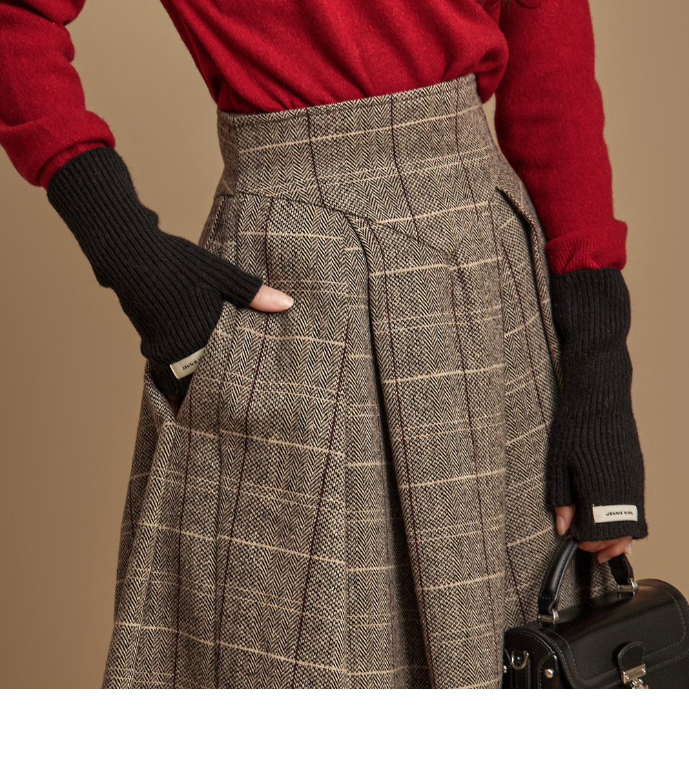 这是一套具有独特风格的格纹夹克与半身裙套装