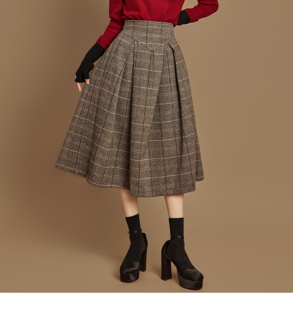 171CM模特,夹克ONE码 / 半身裙S码,棕色。