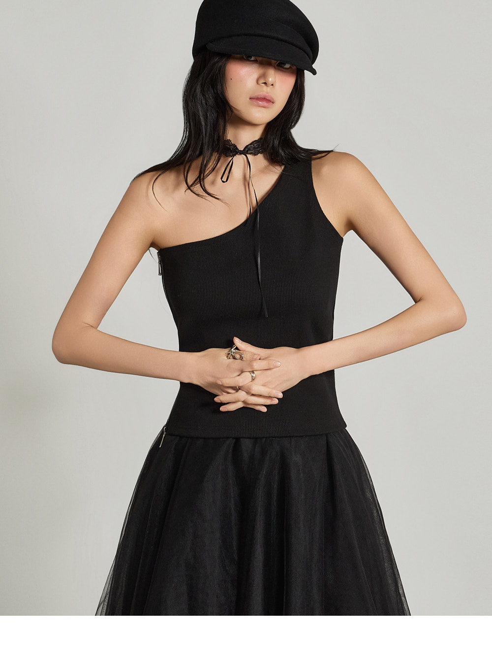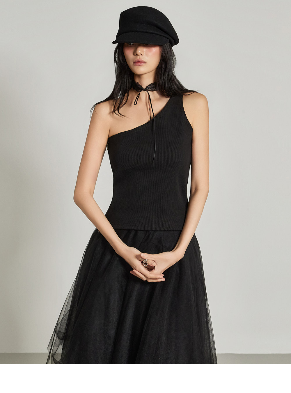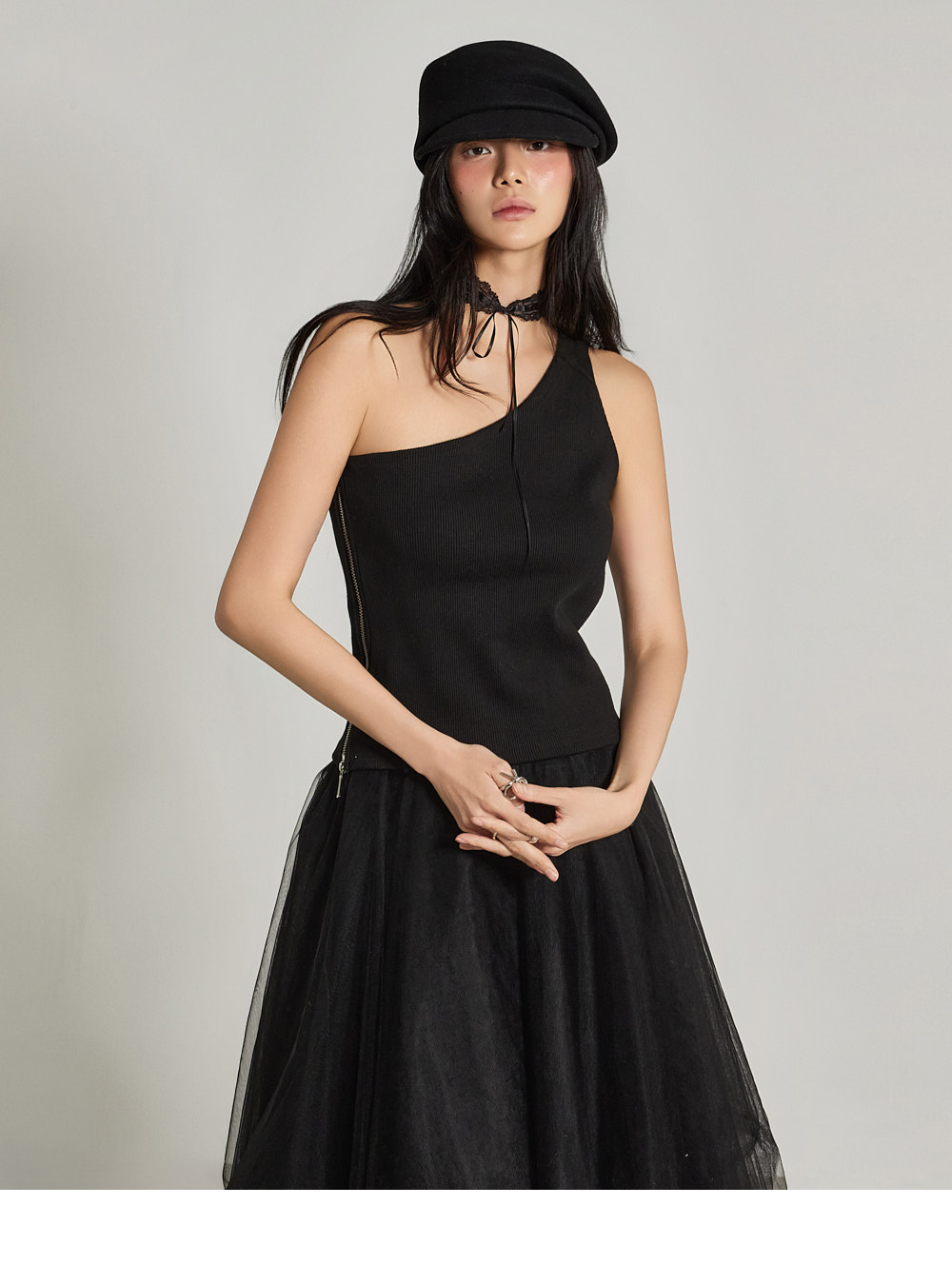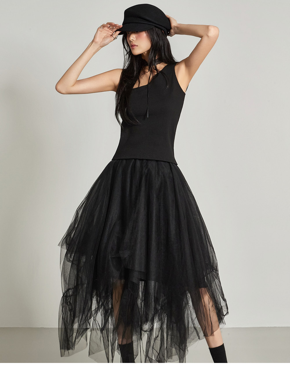 这是一款兼具独特与优雅氛围的不规则纱质半裙。 采用聚酯纤维材质制作,轻盈且富有蓬松感的剪裁展现立体轮廓,随动作轻轻摇曳,透视层次感自然呈现。 腰部后松紧设计提供舒适穿着感,侧边拉链确保整洁的裙型。 自然裁剪细节增添独特感,局部内衬可有效减少透视,穿着稳妥且安心。 即使搭配基础上衣或外套,也能成为造型亮点,打造感性独特的时尚造型。 171CM 模特,ONE 尺码,BLACK 色穿着。