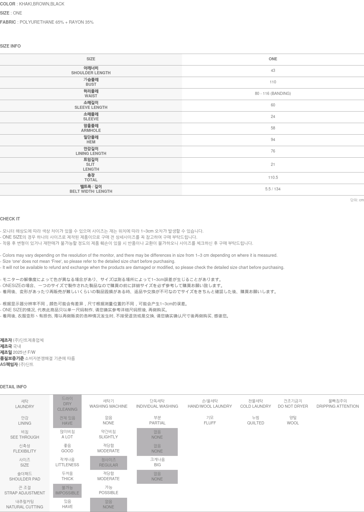 換貨 與 退貨 收到商品後, 7日內能在我的頁面申請交換或退貨, 申請後請將商品寄回DINT. 申請後, 請填寫包裹裡一同寄去的撤回申請書, 再將包裹包裝成一開始您收到時的狀態(包裝袋、衣架、贈品皆要一起寄送回來)發送至DINT即可. 因爲顧客變心所申請的換貨與退貨, 運費將由顧客負擔;誤送或是商品瑕疵的部分, 將由DINT負擔運費. 退貨住所爲:首爾市 衿川區 加山洞 459-8號 大韓通運 7樓 DINT股份有限公司 品質保證標準說明:符合電子商務等有關消費者保護法律規定的消費者可申請交換或是退貨.