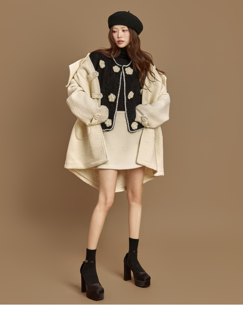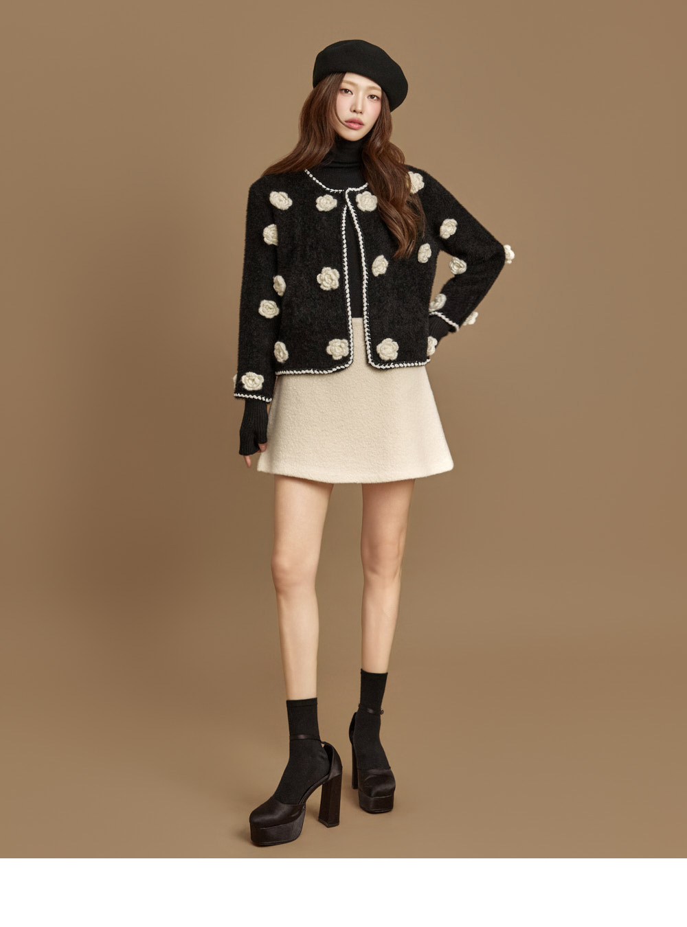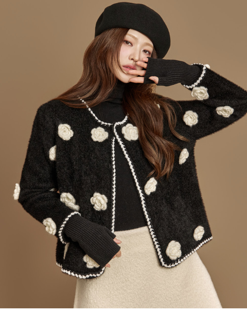 立体花卉细节与柔和的拼色相互呼应,