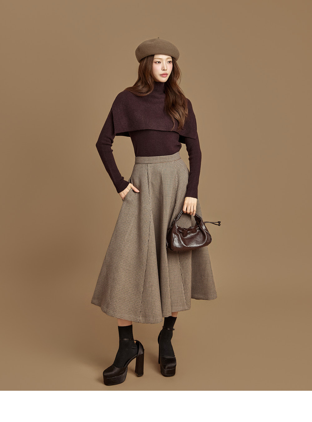 模特身高171CM,穿ONE码,WINE颜色。