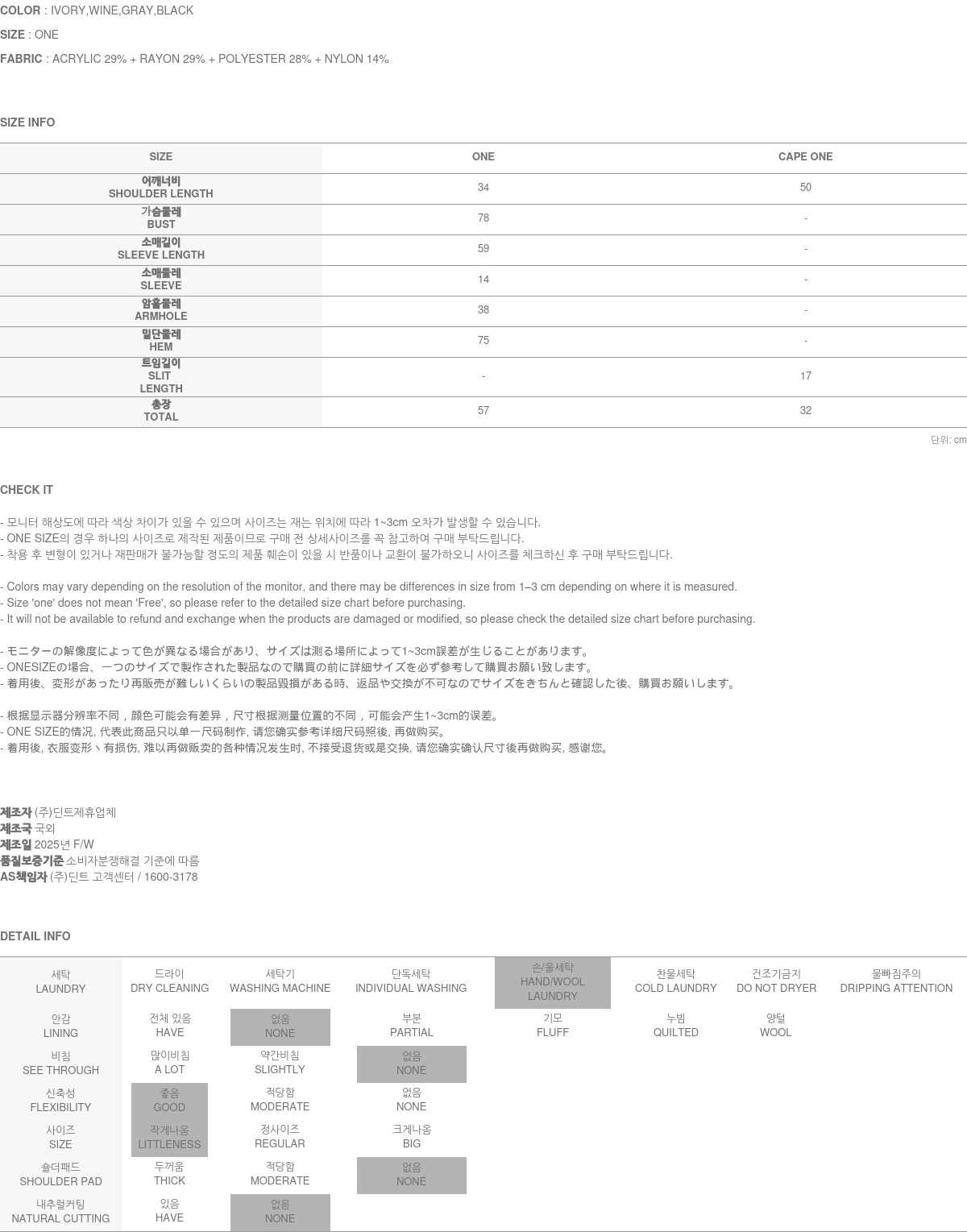 • DINT的所有商品, 使用一般洗滌或是烘乾機, 皆有可能成爲變形或是商品損傷的原因, 建議您使用乾洗.