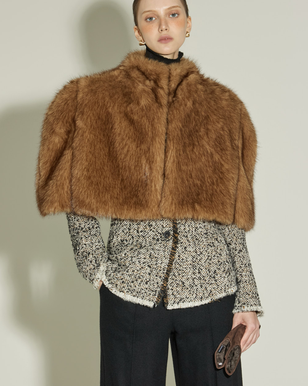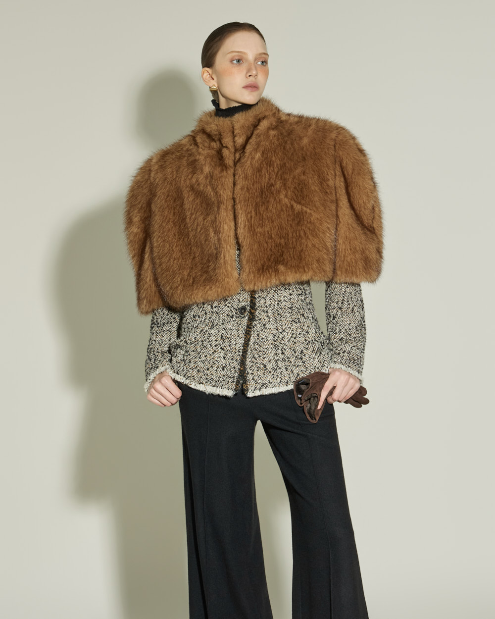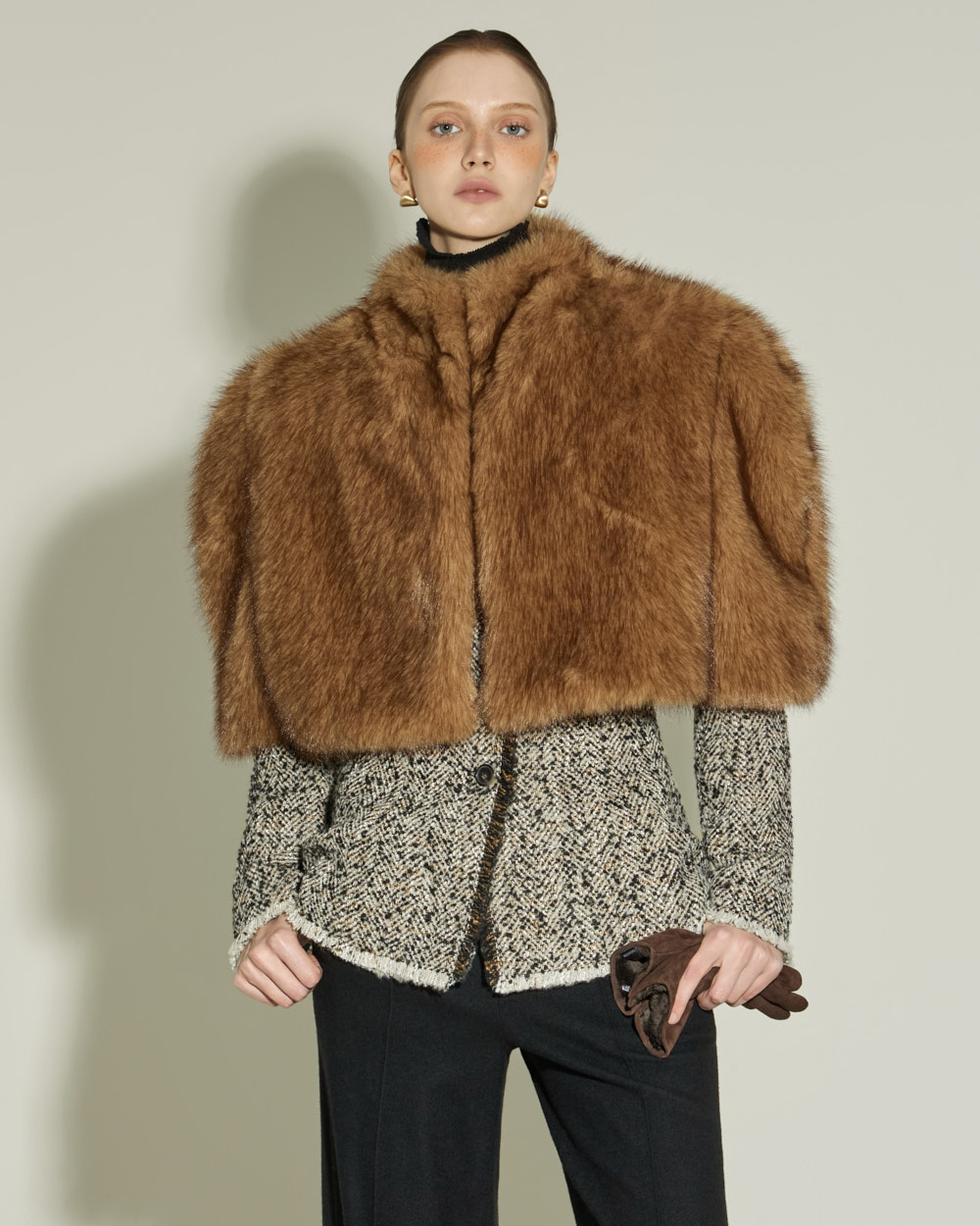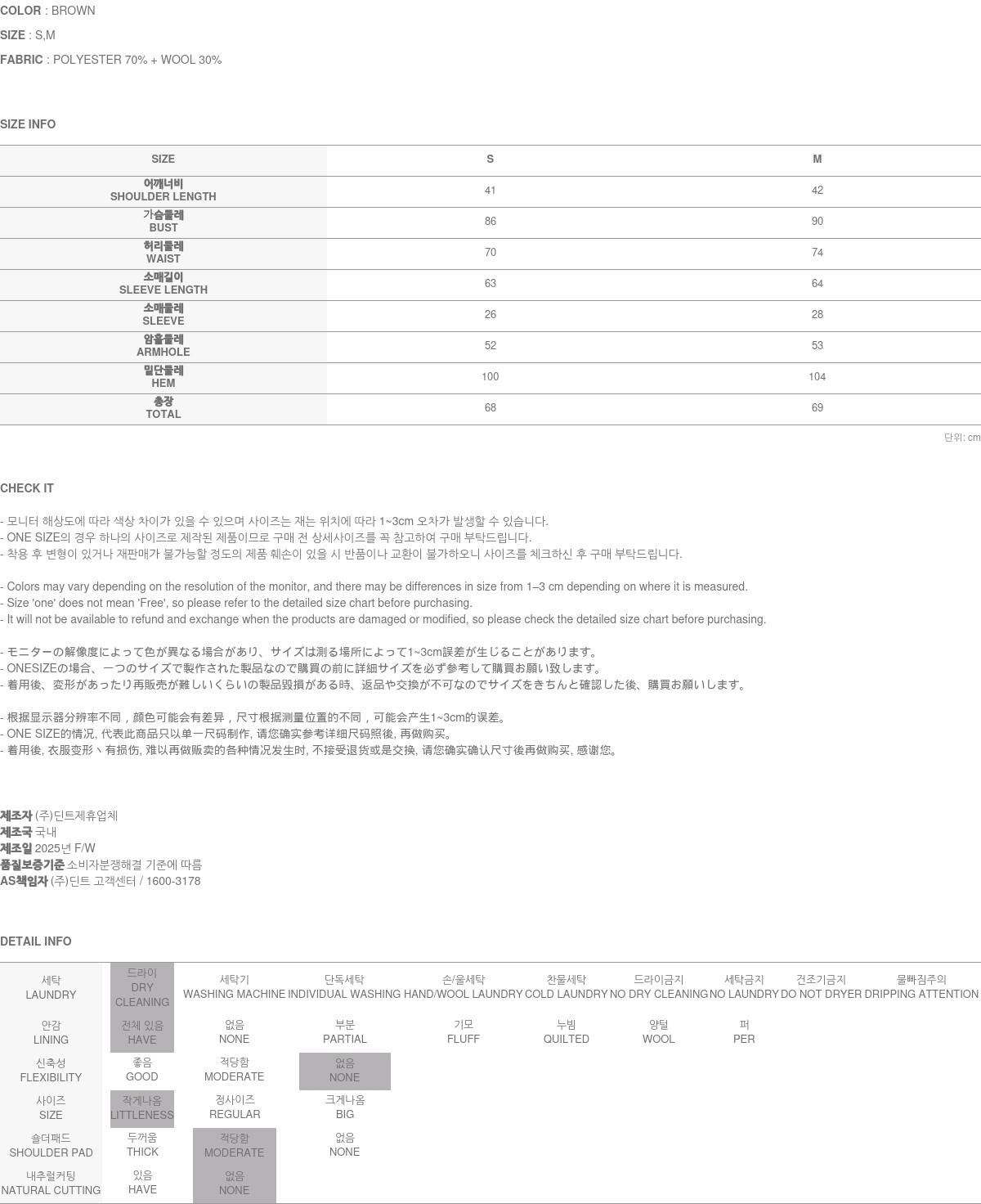 174CM 模特穿着 S 码,颜色为 BROWN。