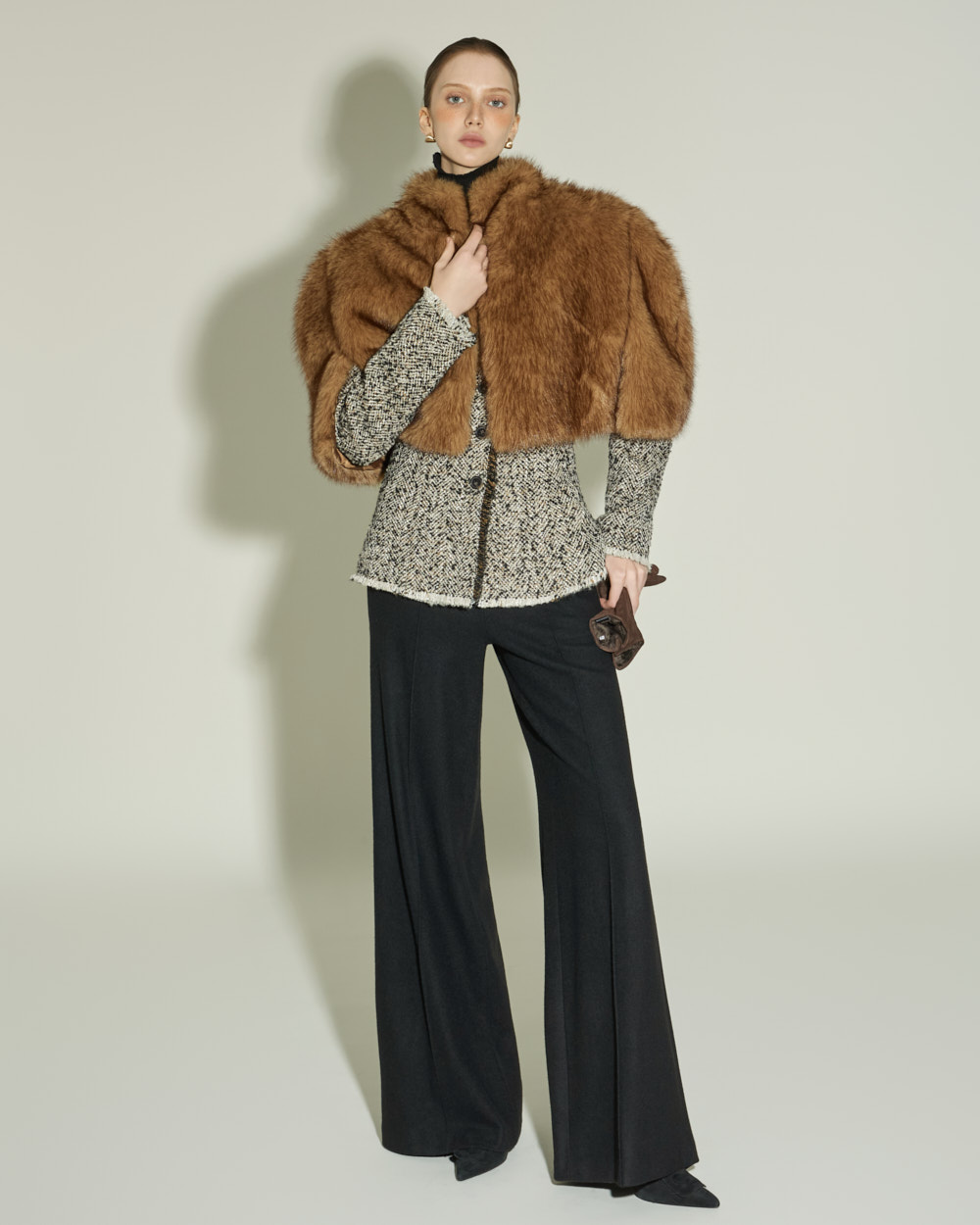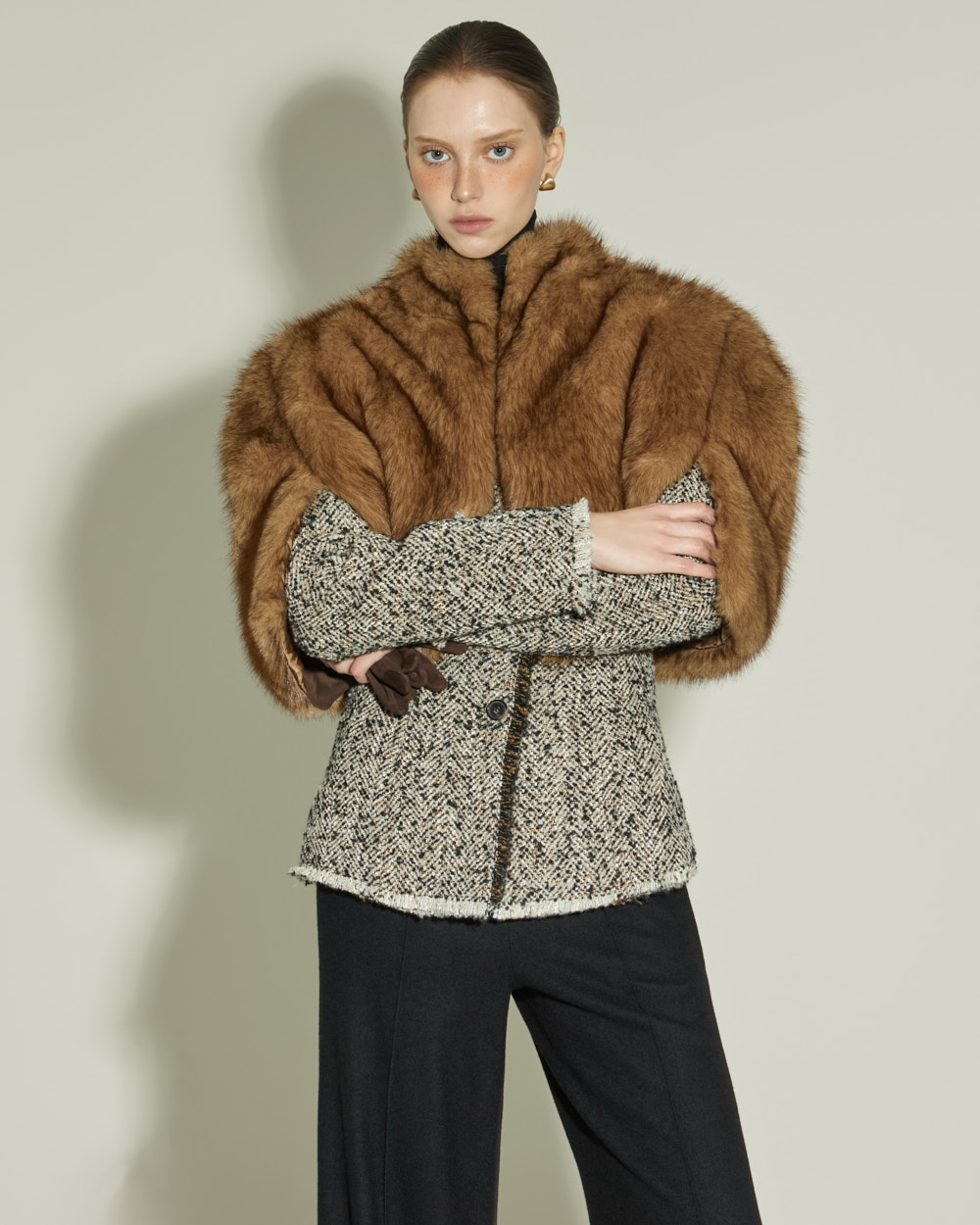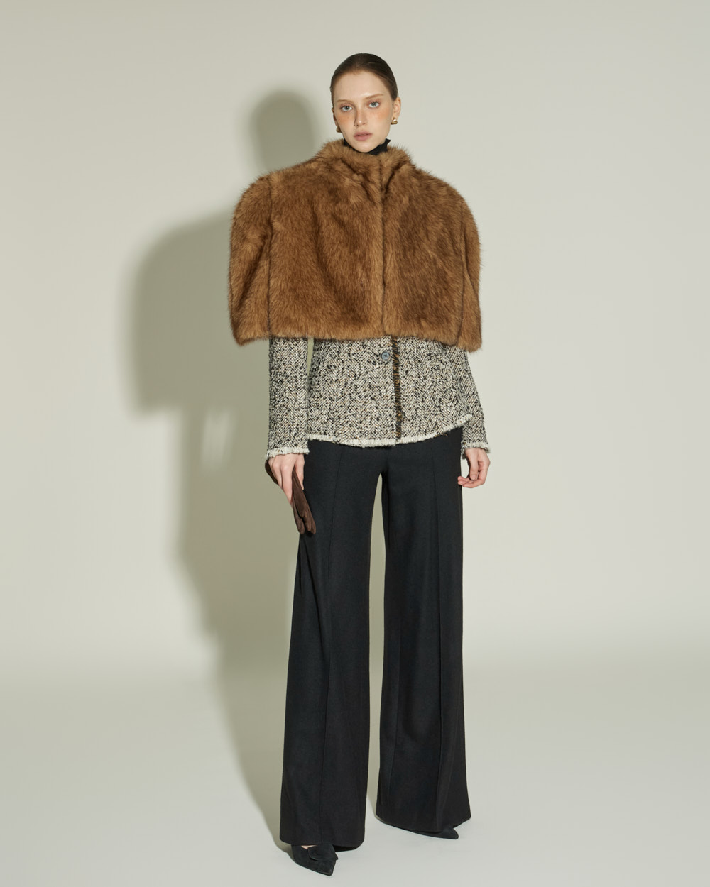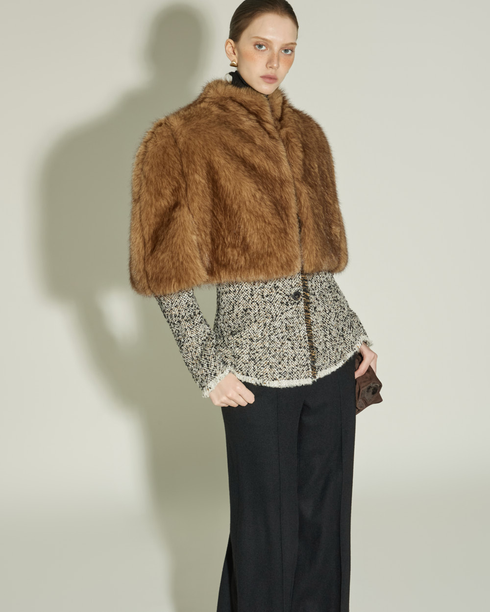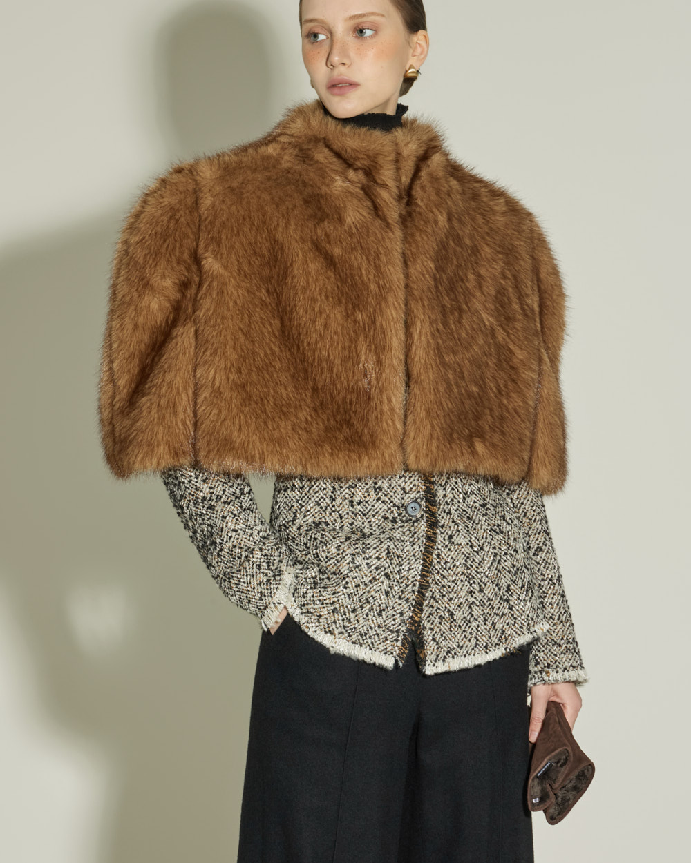 174CM 模特穿着 S 码,颜色为 BROWN。