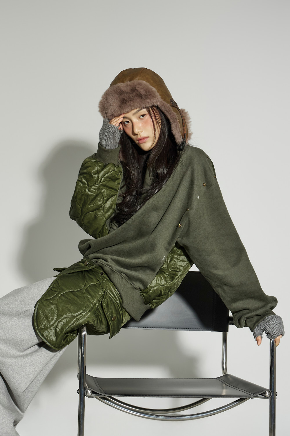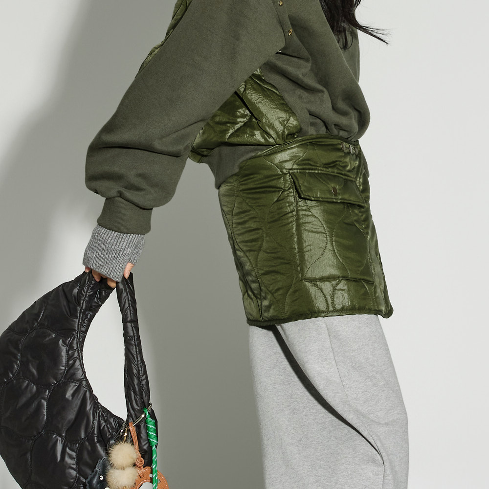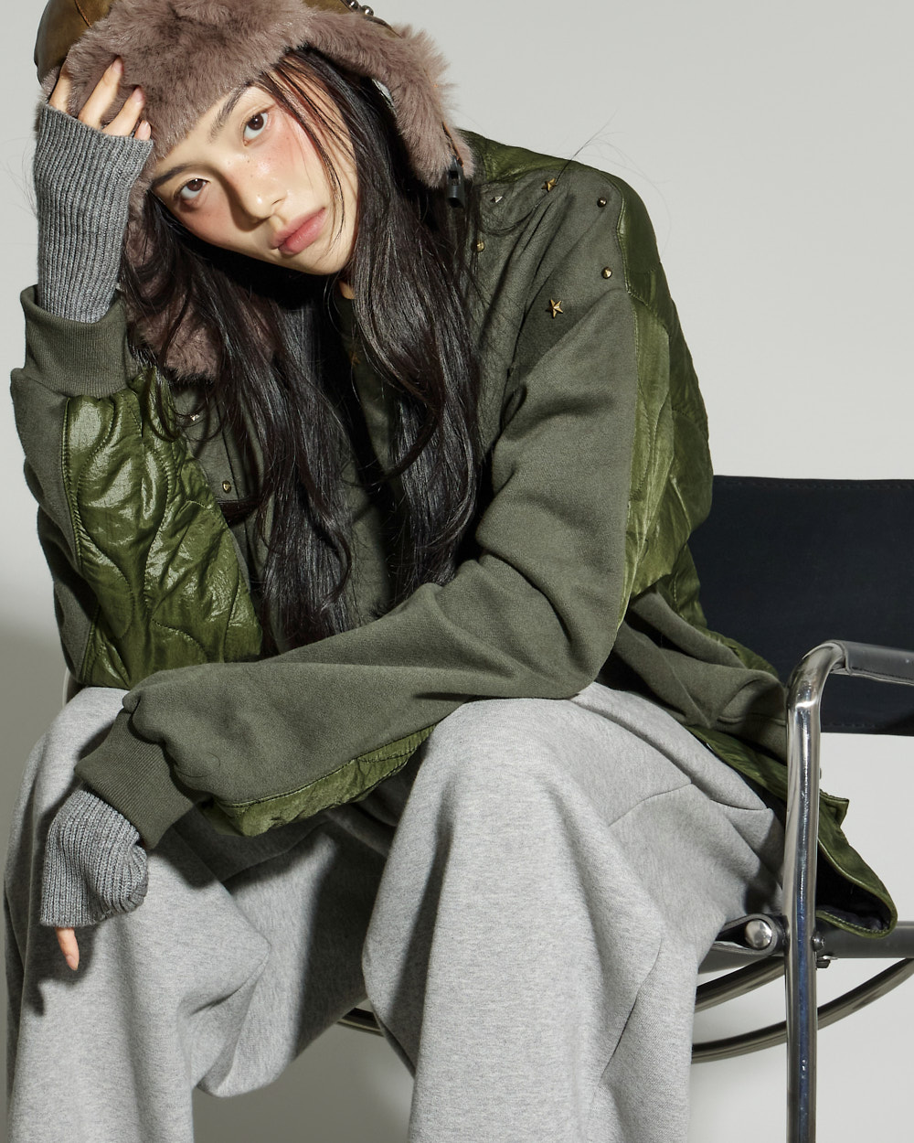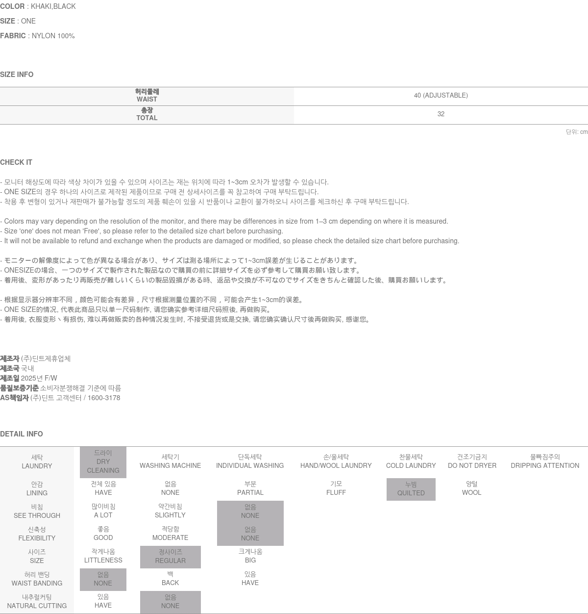171CM 模特穿着 ONE 码,KHAKI 颜色。