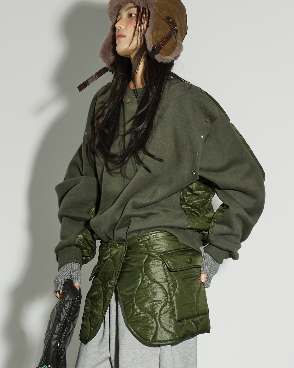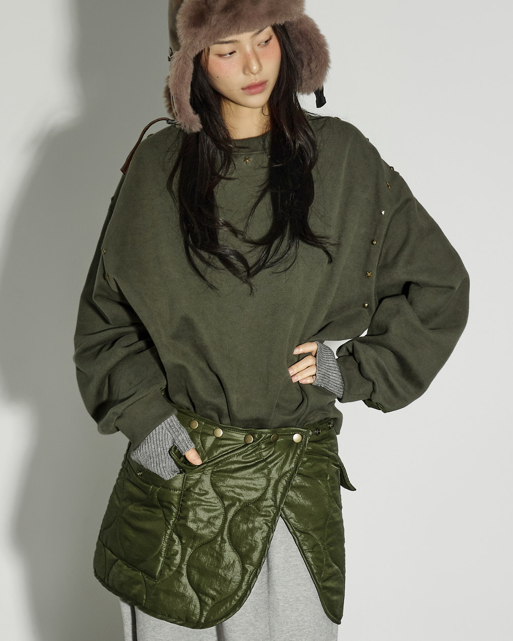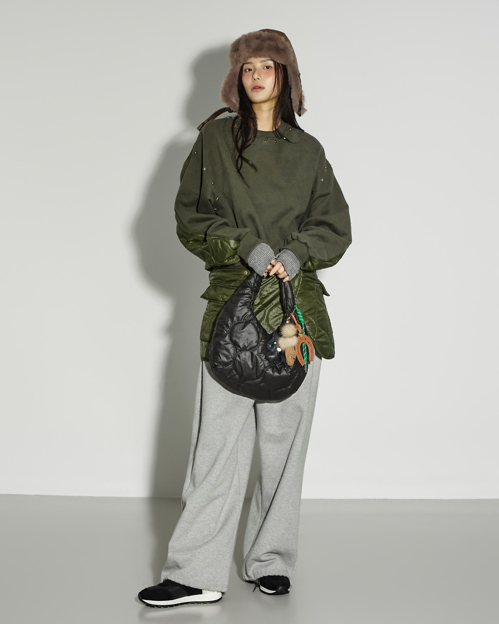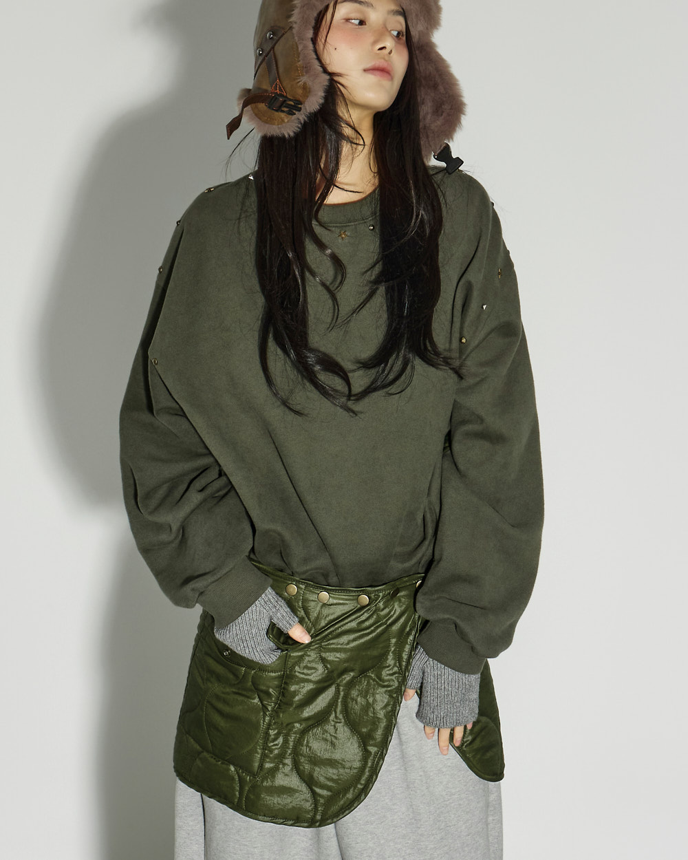 171CM 模特穿着 ONE 码,KHAKI 颜色。