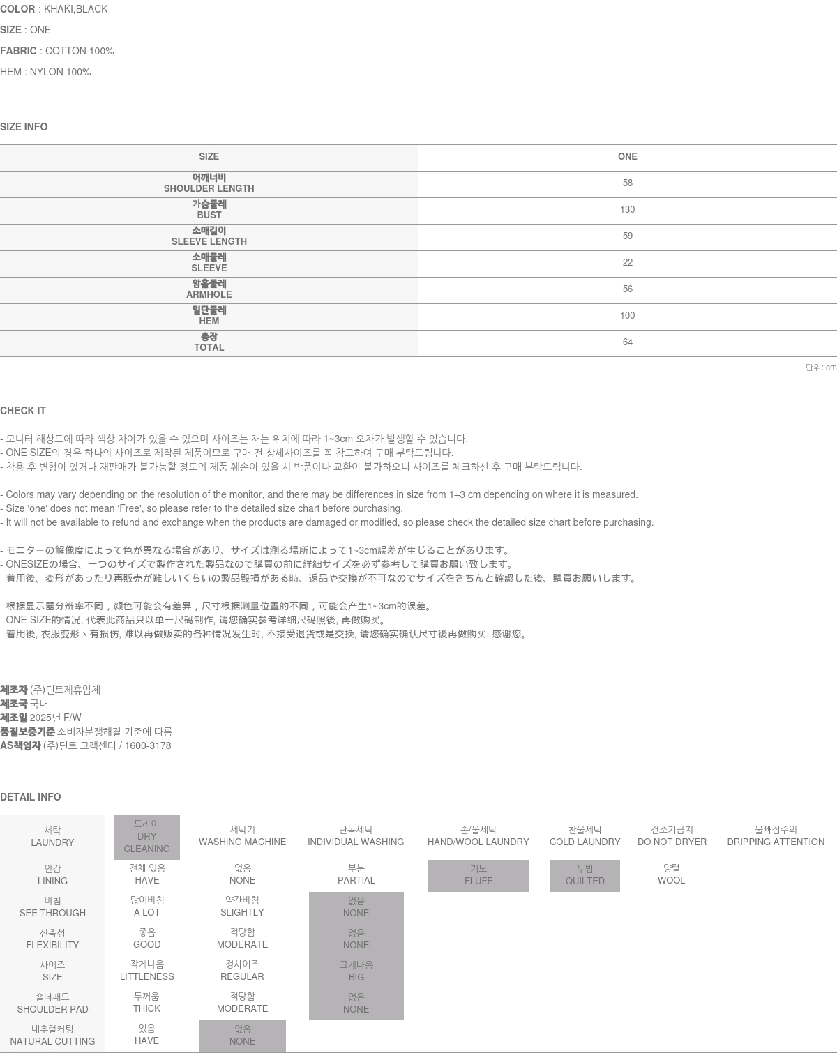 • DINT的所有商品, 使用一般洗滌或是烘乾機, 皆有可能成爲變形或是商品損傷的原因, 建議您使用乾洗.