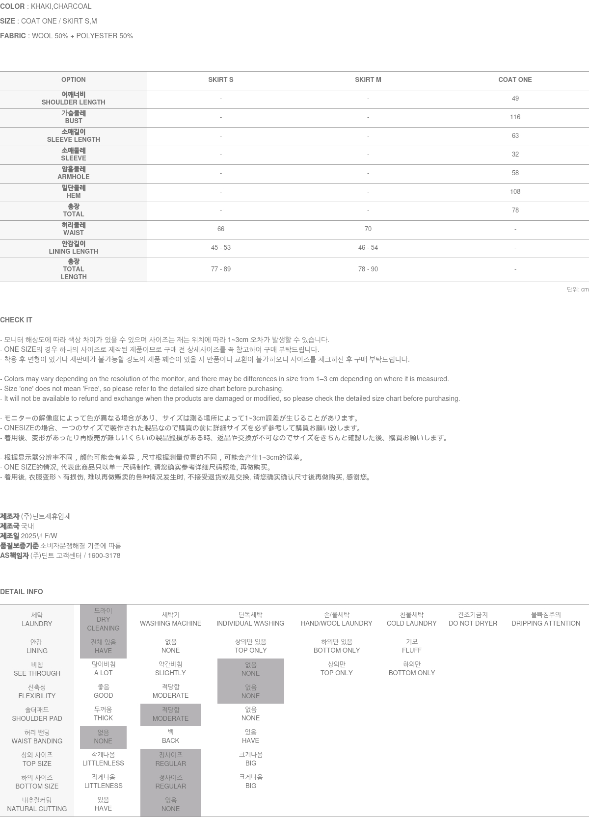 171CM 模特外套穿着 ONE 码 / 半身裙 S 码,