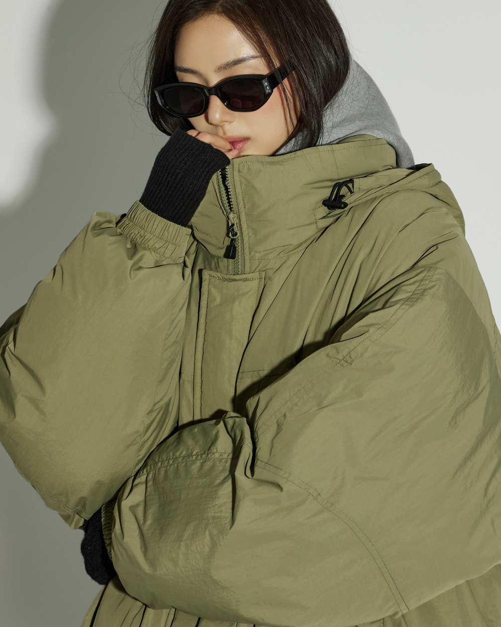 171CM 模特身穿 ONE 尺寸,颜色为 军绿色。