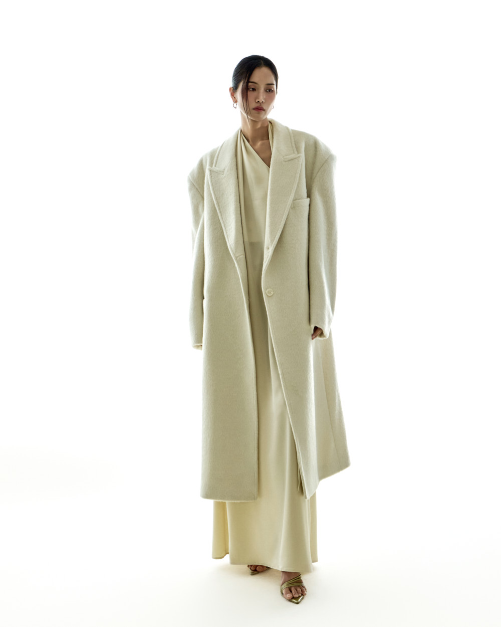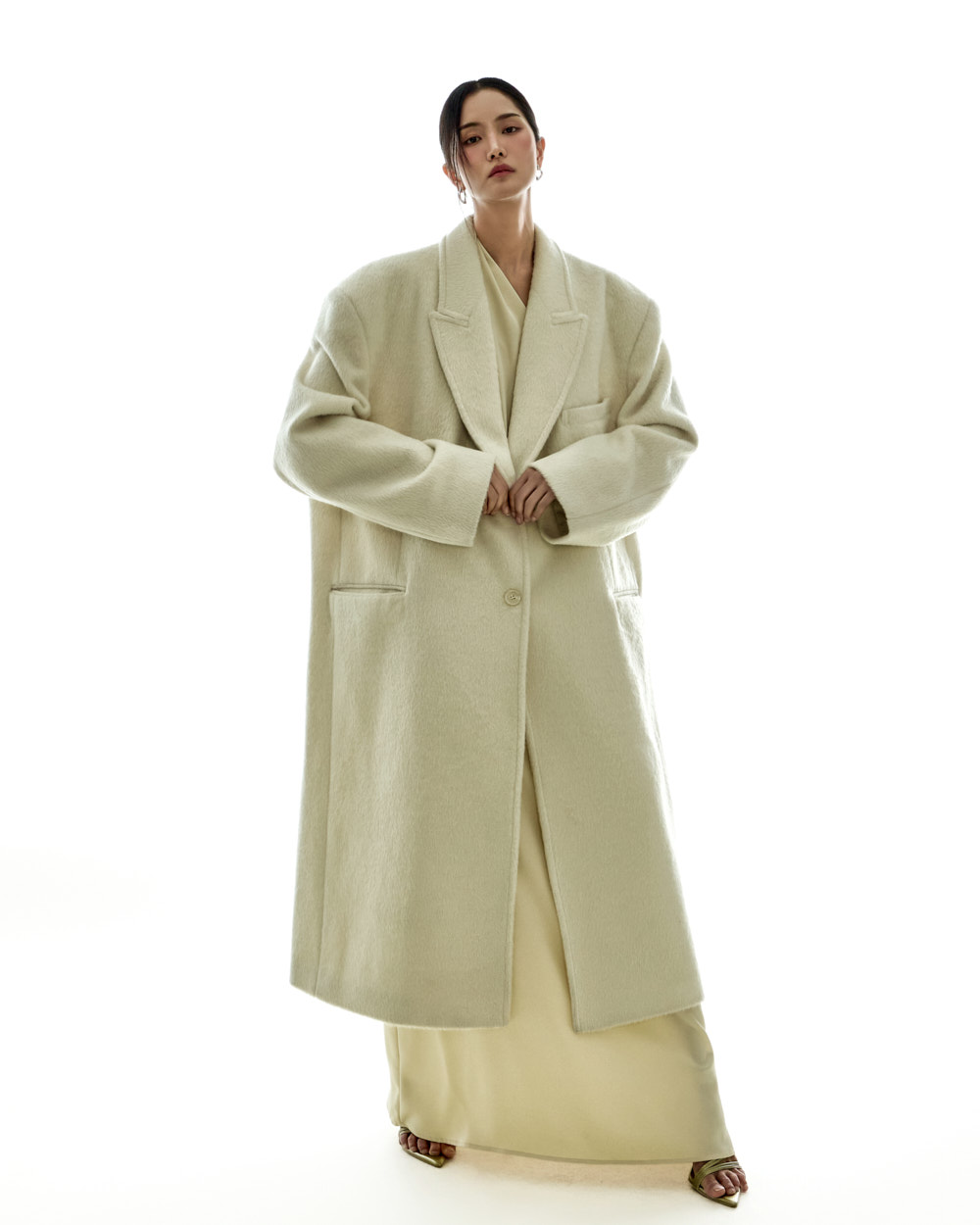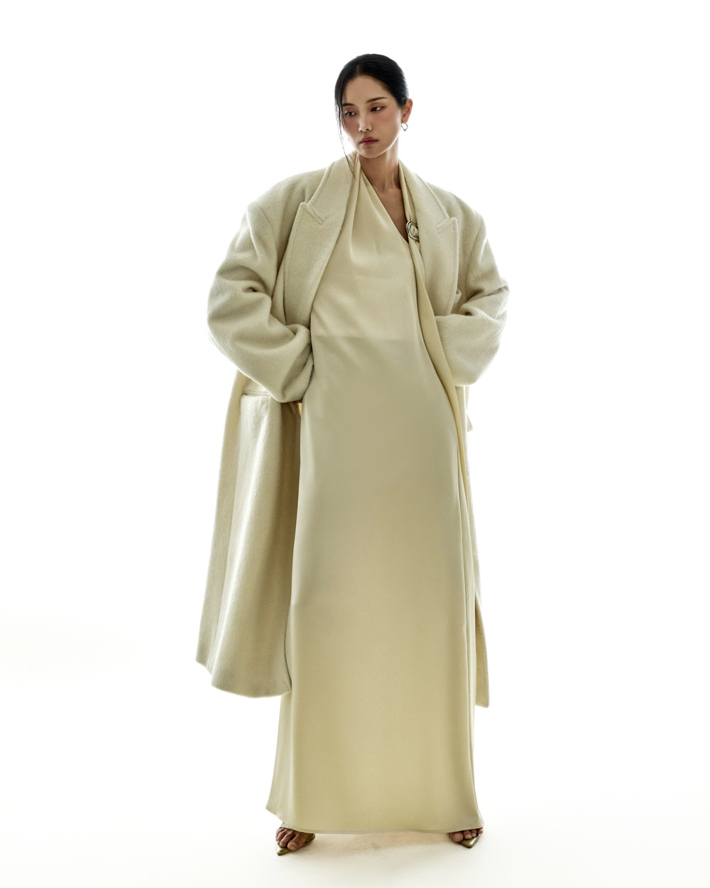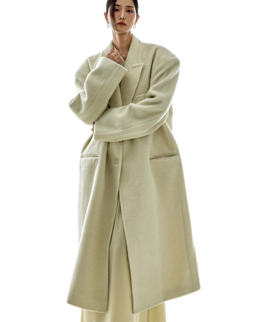 宽松版型与超长衣长自然垂落,