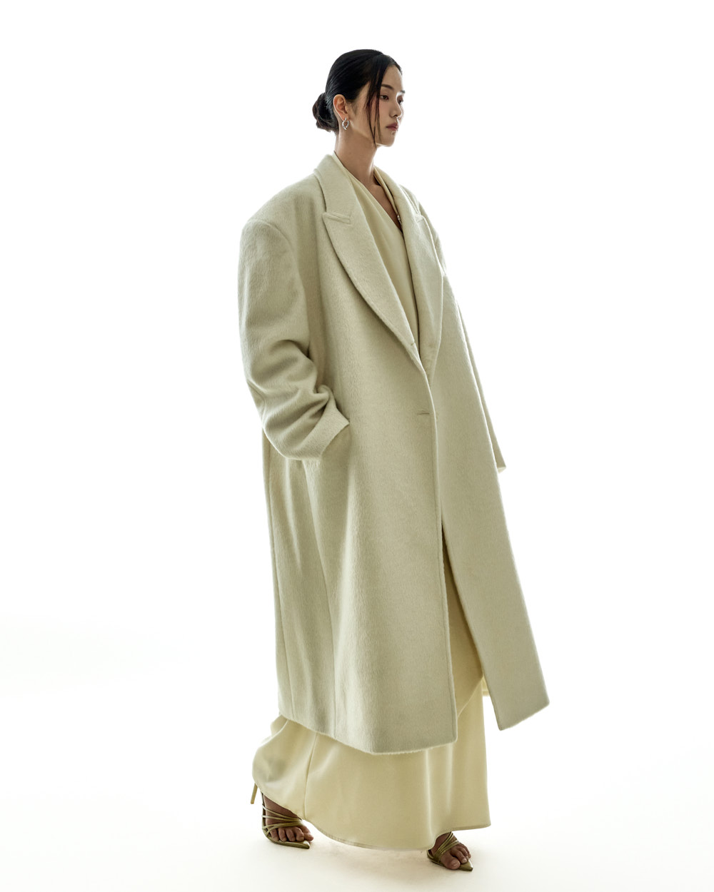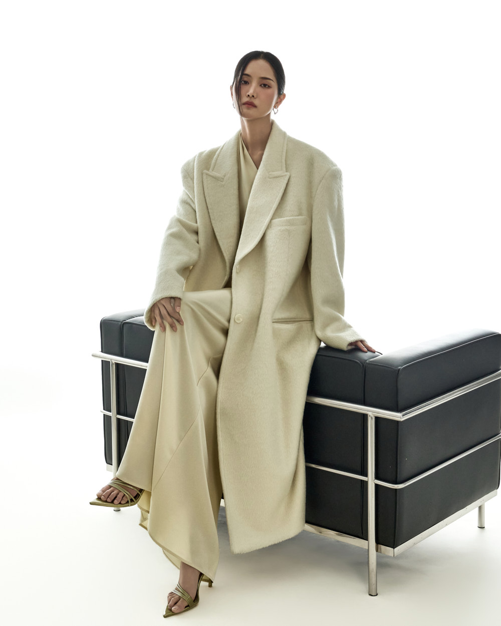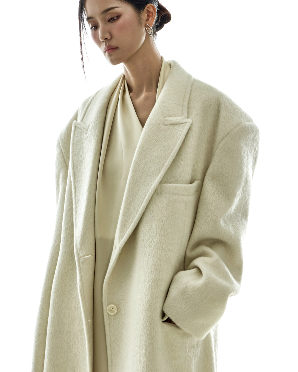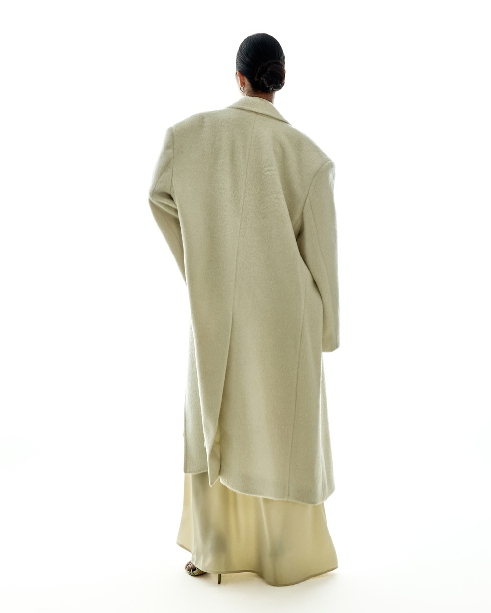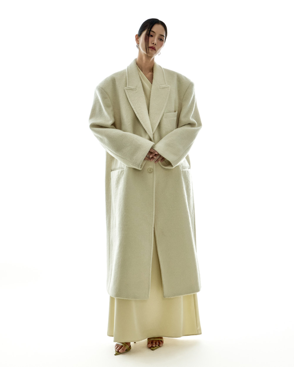 宽松版型与超长衣长自然垂落,