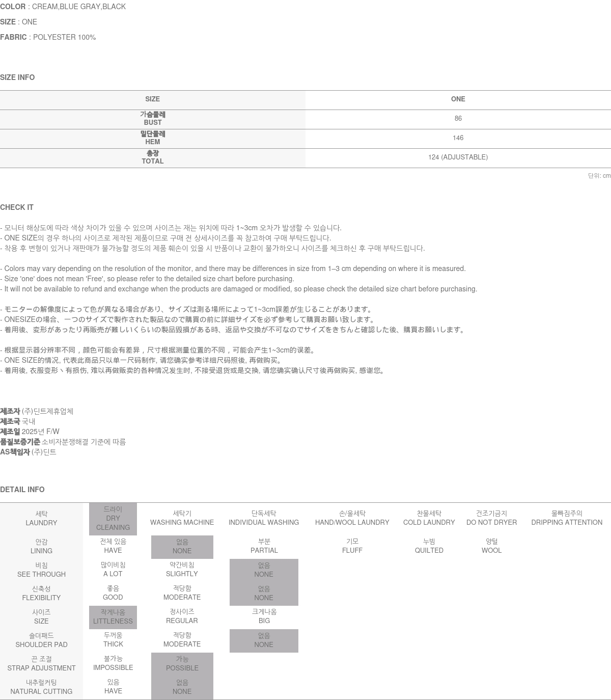 • DINT的所有商品, 使用一般洗滌或是烘乾機, 皆有可能成爲變形或是商品損傷的原因, 建議您使用乾洗.