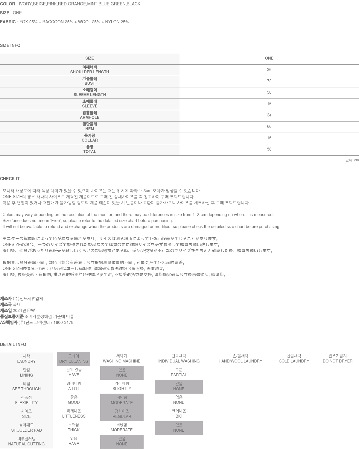 폭스,라쿤 혼방 소재로 제작되었으며,