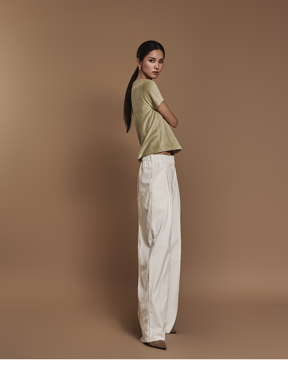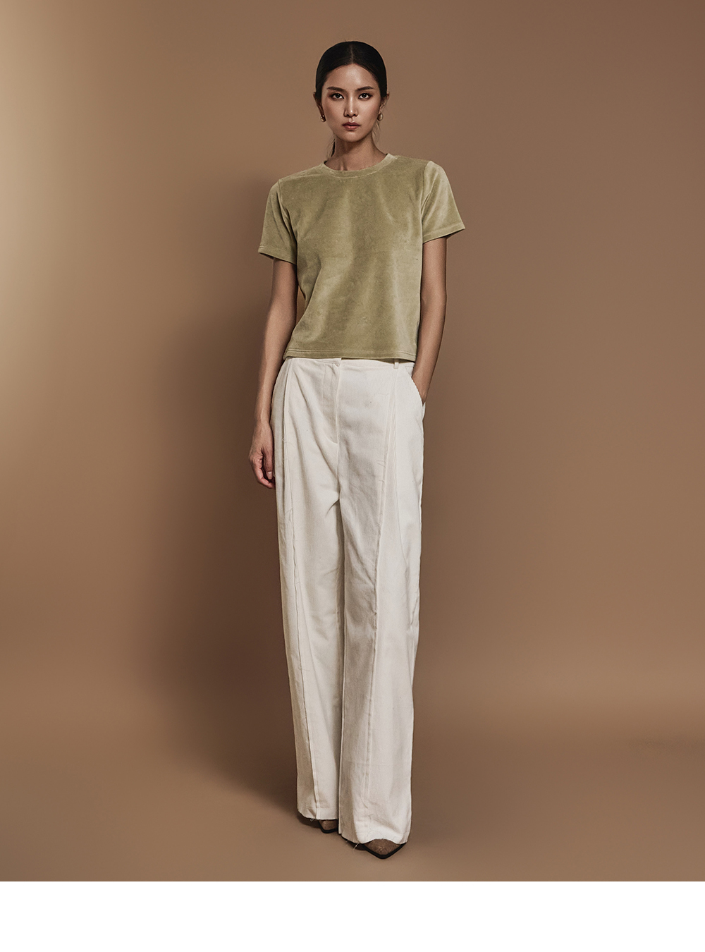 라운드 네크라인으로 부드러운 페이스 라인을 선사하며,