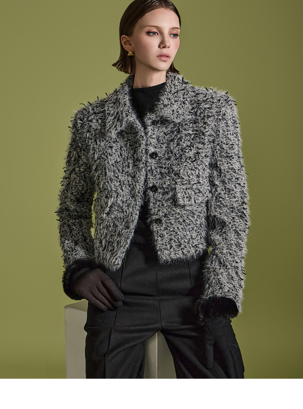 173CM模特,S尺码,BLACK色穿着。
