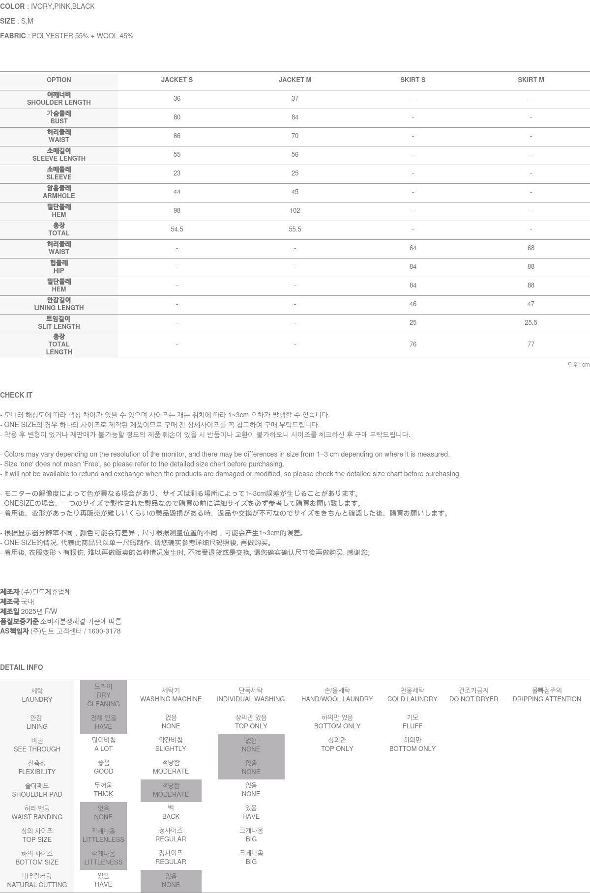 스커트는 백라인 지퍼 여밈으로 탈착용에 용이하고