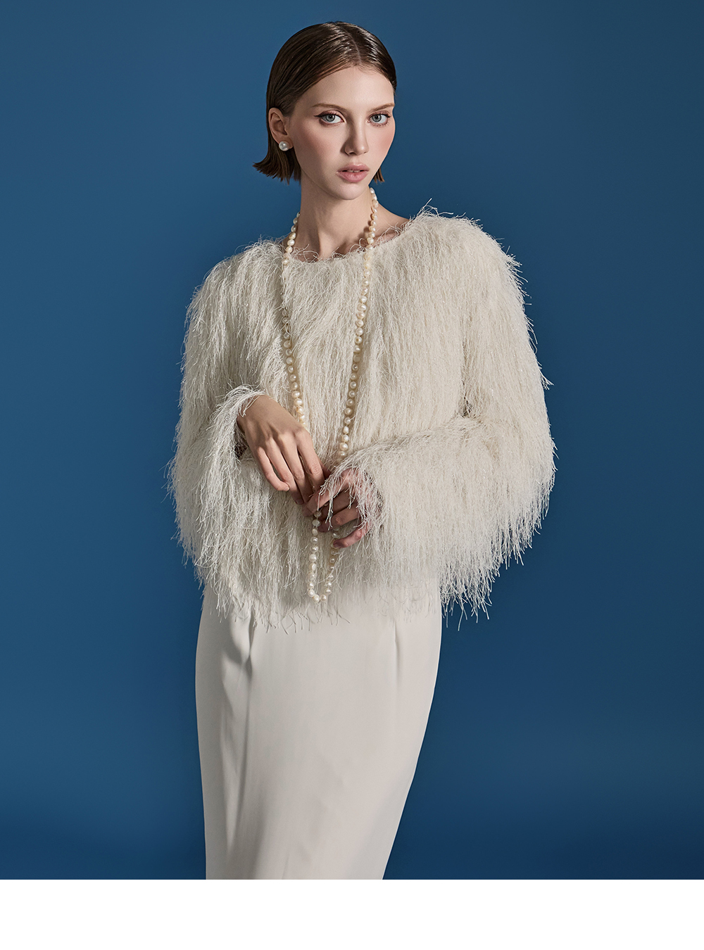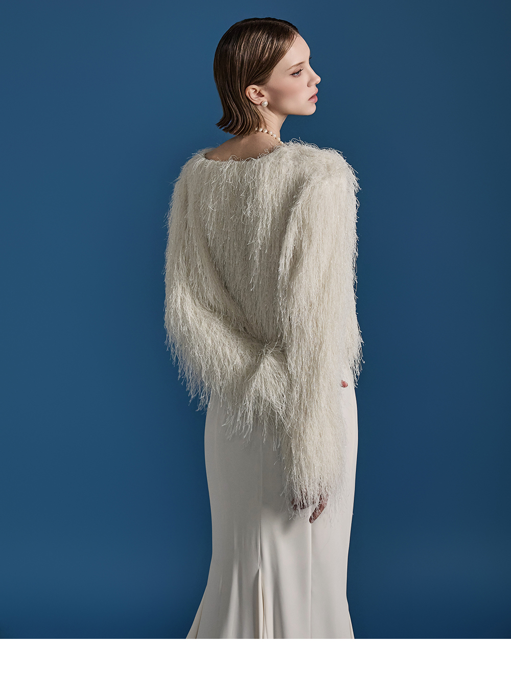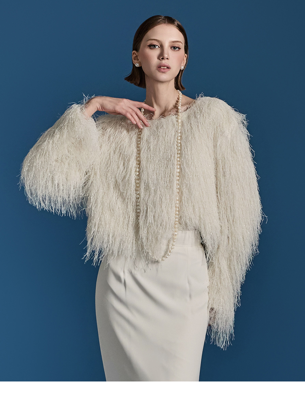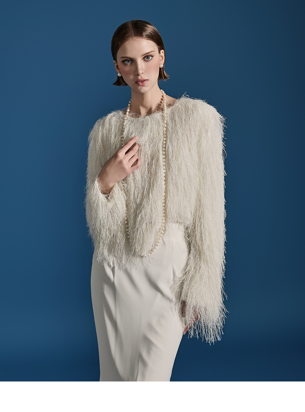 这是一款独特剪裁的肩垫上衣。 采用柔软且结实的聚酯纤维材质制作,ONE尺码设计,可根据体型舒适穿着。 无额外开合设计,圆领设计呈现柔和脸部轮廓,肩部加入薄肩垫,保持立体外观。 整体珠光流苏设计,独特亮眼,是点缀造型的理想单品,推荐给DINT顾客。 模特身高174CM,穿着ONE尺码,颜色为象牙色。