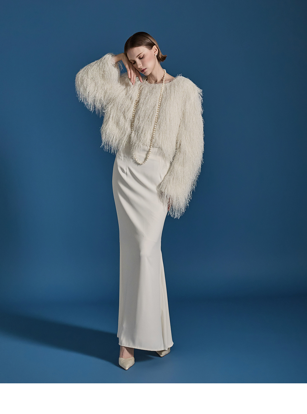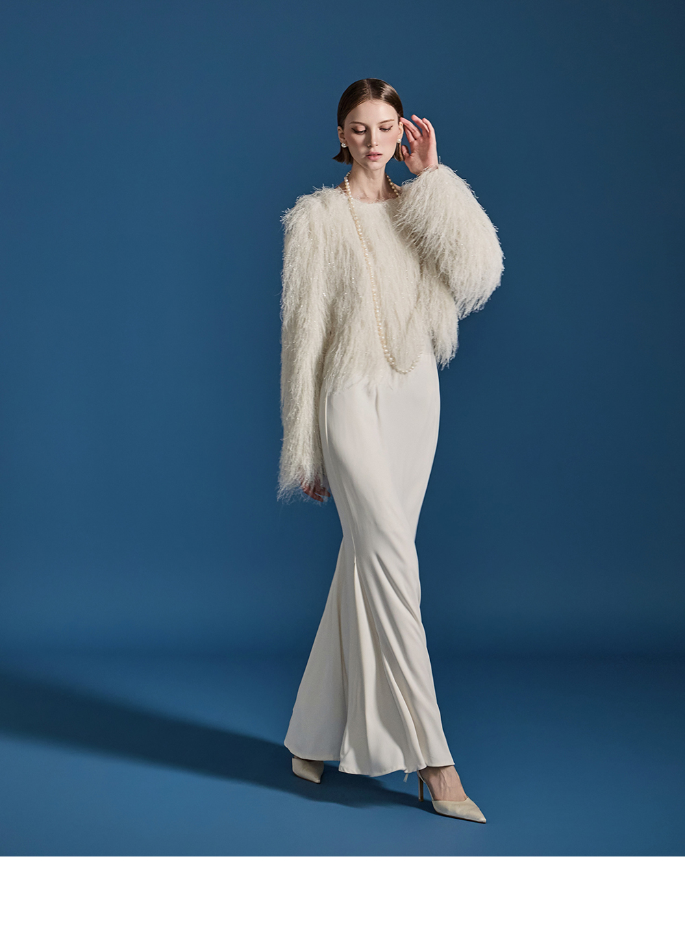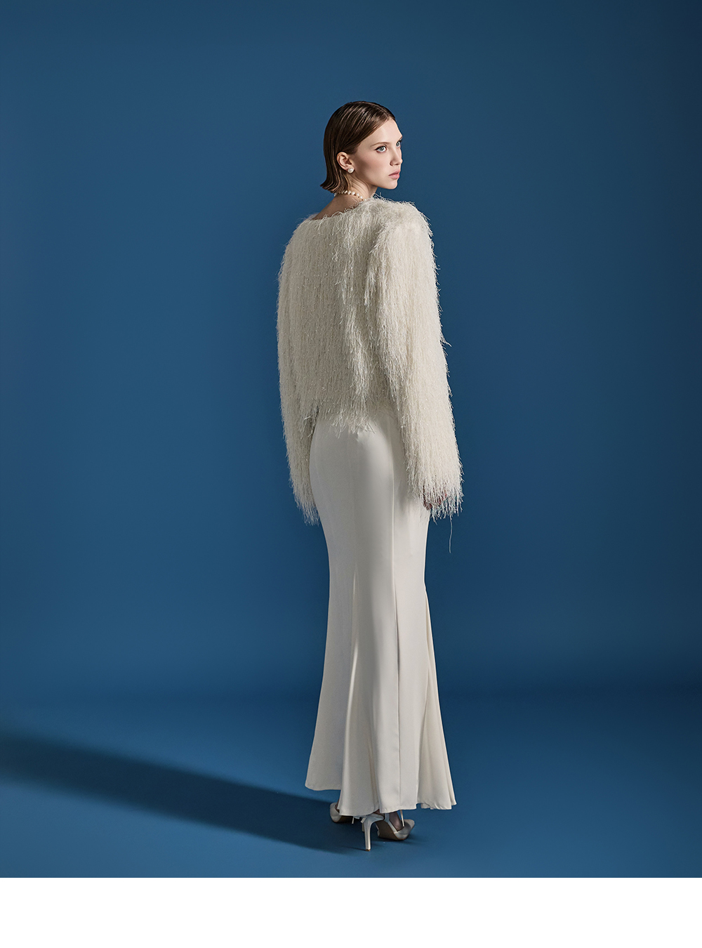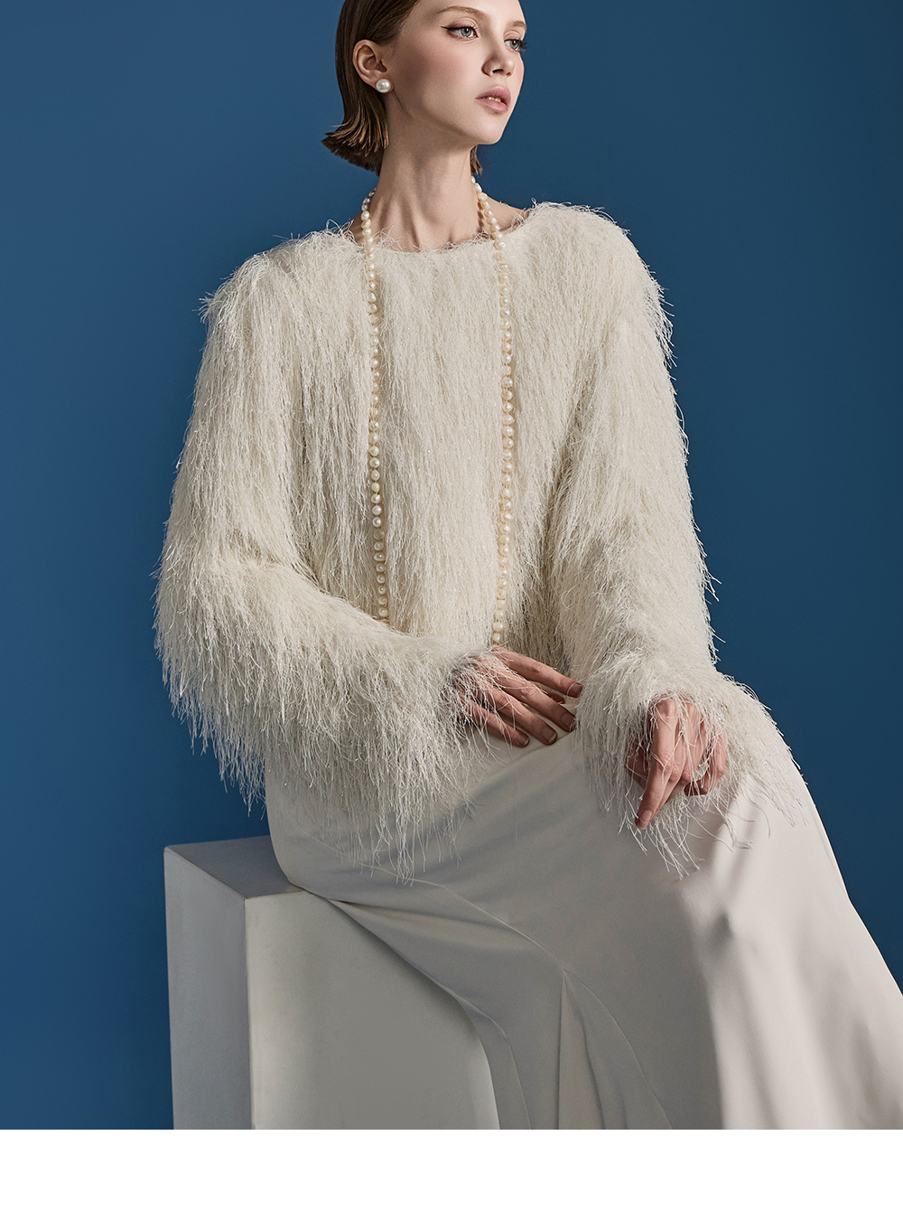 这是一款独特剪裁的肩垫上衣。 采用柔软且结实的聚酯纤维材质制作,ONE尺码设计,可根据体型舒适穿着。 无额外开合设计,圆领设计呈现柔和脸部轮廓,肩部加入薄肩垫,保持立体外观。 整体珠光流苏设计,独特亮眼,是点缀造型的理想单品,推荐给DINT顾客。 模特身高174CM,穿着ONE尺码,颜色为象牙色。
