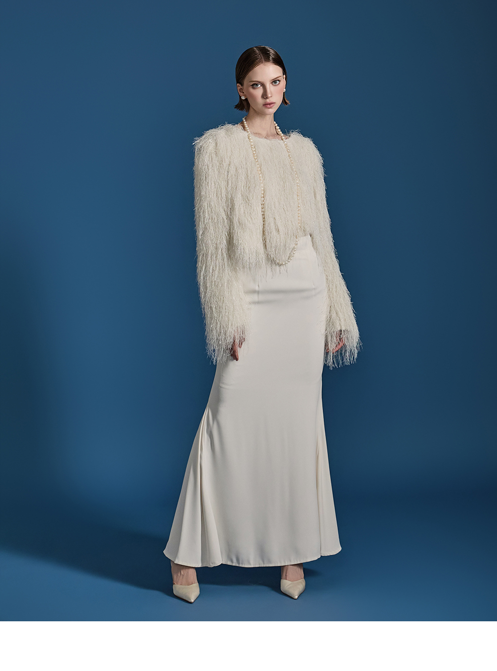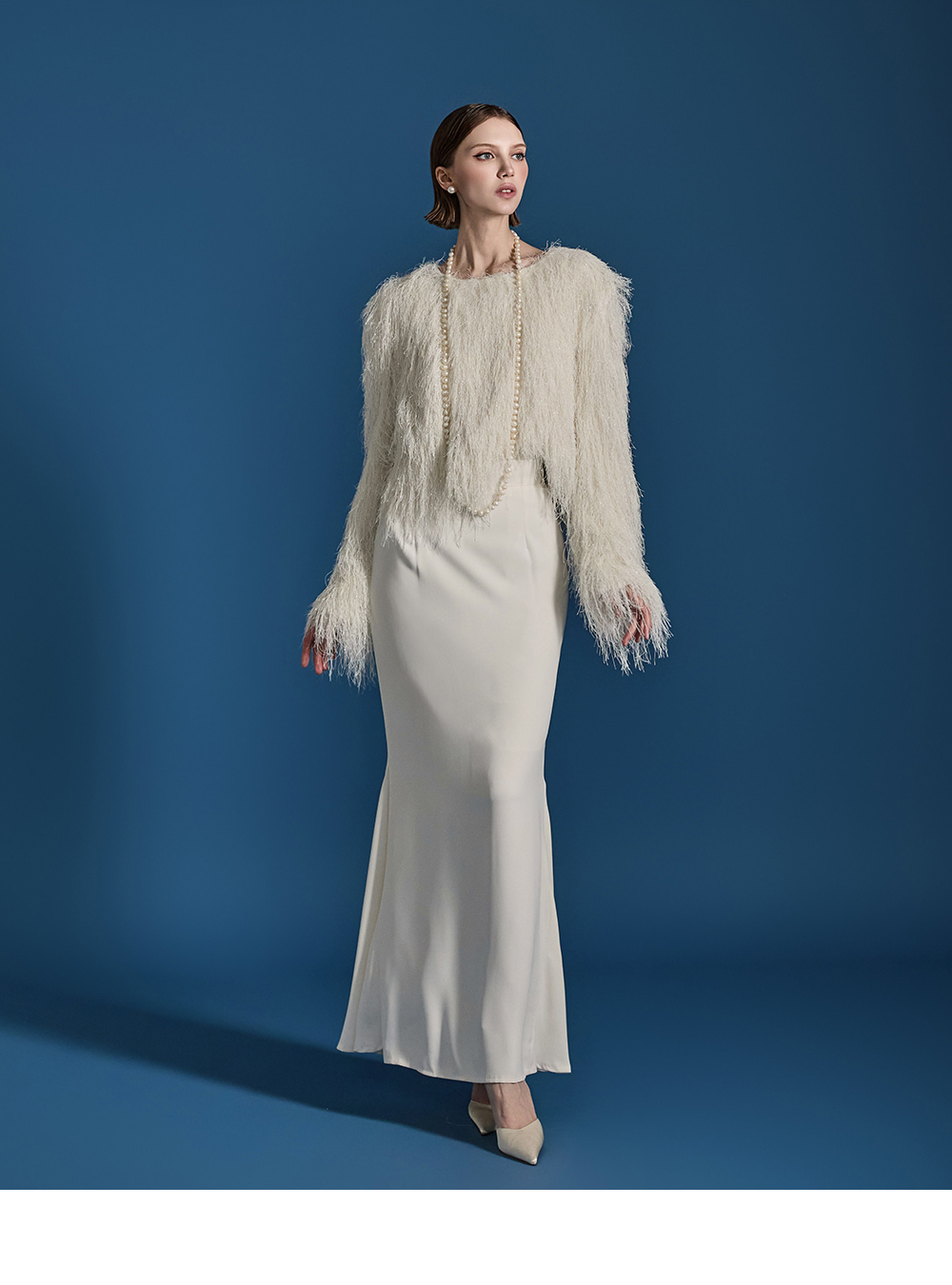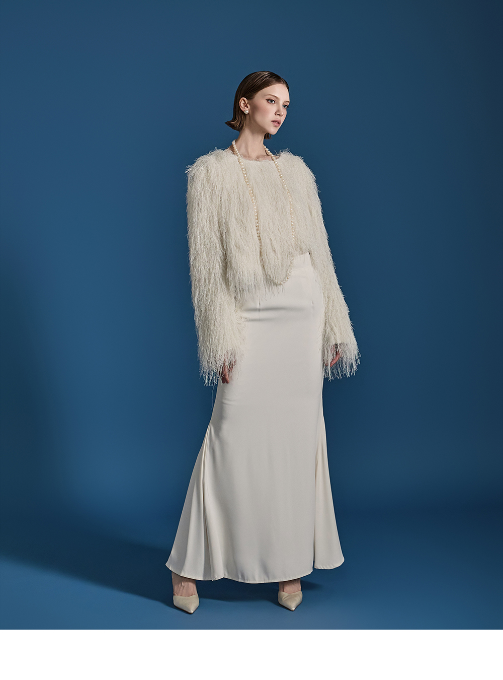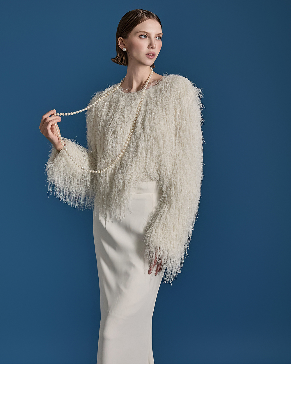 这是一款独特剪裁的肩垫上衣。 采用柔软且结实的聚酯纤维材质制作,ONE尺码设计,可根据体型舒适穿着。 无额外开合设计,圆领设计呈现柔和脸部轮廓,肩部加入薄肩垫,保持立体外观。 整体珠光流苏设计,独特亮眼,是点缀造型的理想单品,推荐给DINT顾客。 模特身高174CM,穿着ONE尺码,颜色为象牙色。