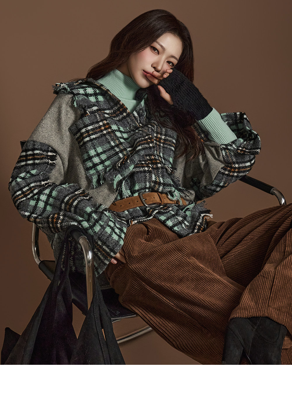 보온성 높은 코듀로이 소재와 포인트 컬러의 구성으로