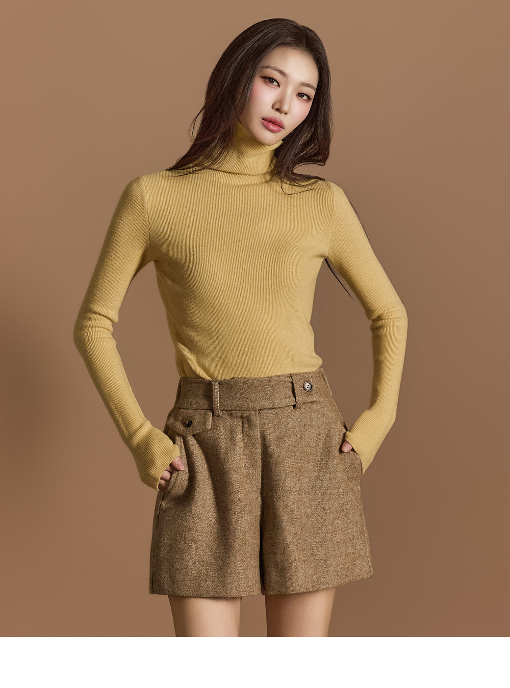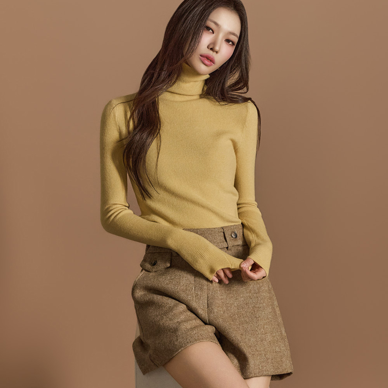 这是一款日常风格的上衣。采用柔软的聚酯纤维、尼龙及粘胶混纺材质制作,ONE尺码设计,可根据体型舒适穿着。无额外开合设计,弹性良好,穿着舒适,高领设计提升保暖性。多种色彩选择,修身版型营造纤细外观,可作为外套内搭单品使用。基础设计与适中长度,便于日常穿搭,推荐给DINT顾客。模特身高173CM,穿着ONE尺码,颜色为黄色。
