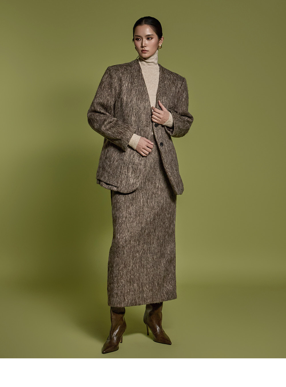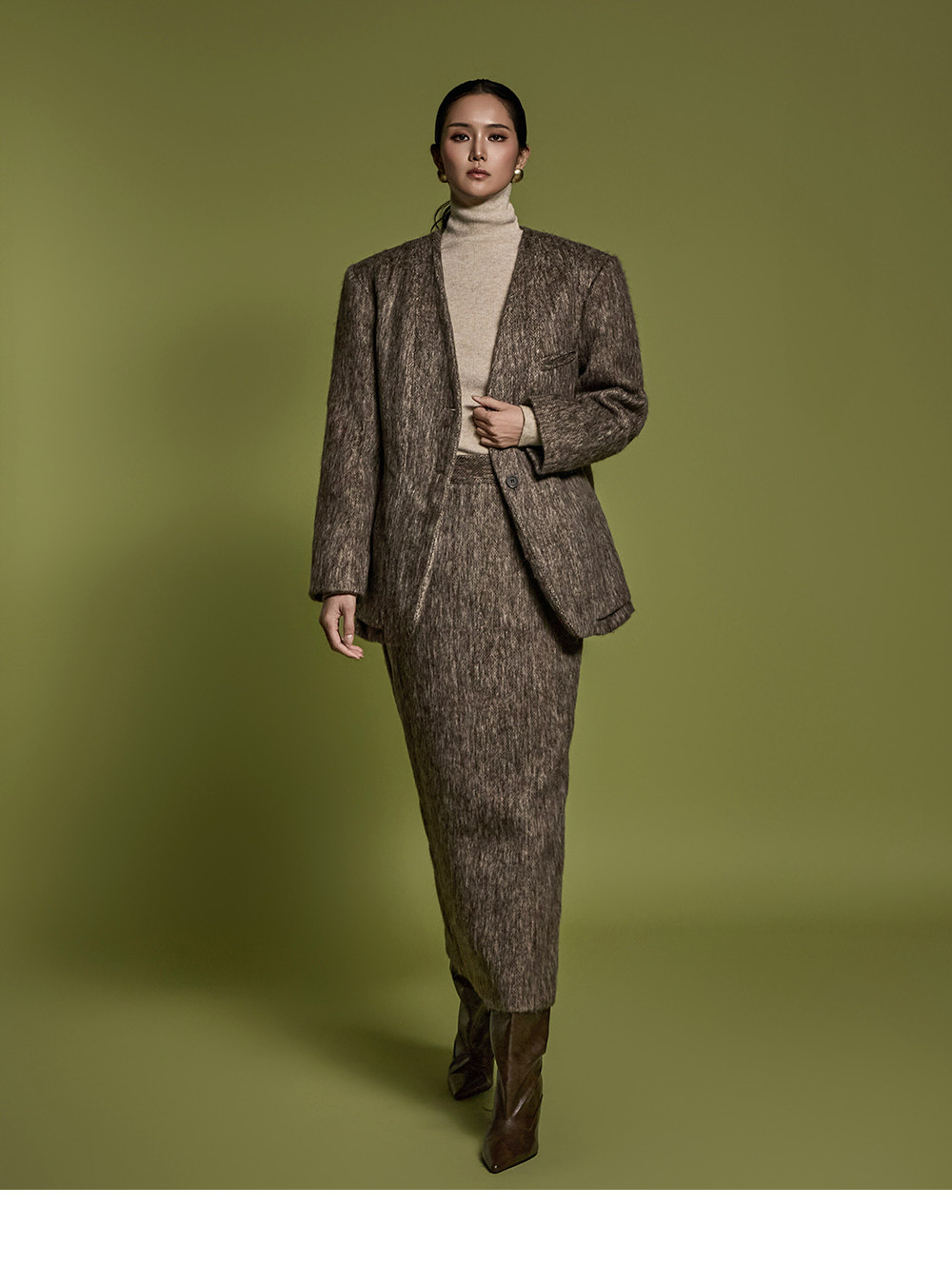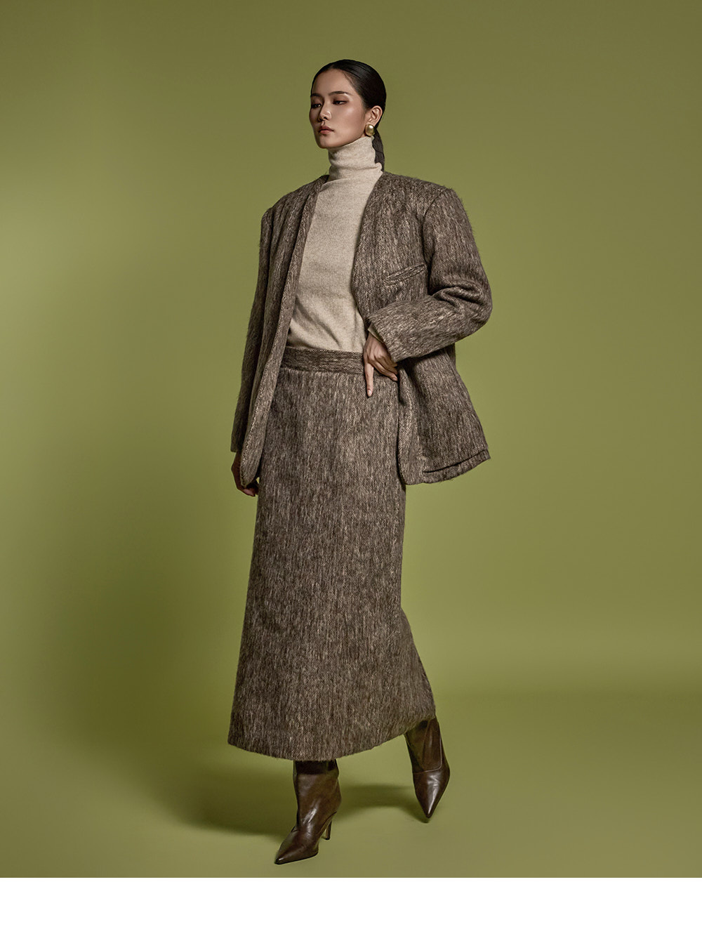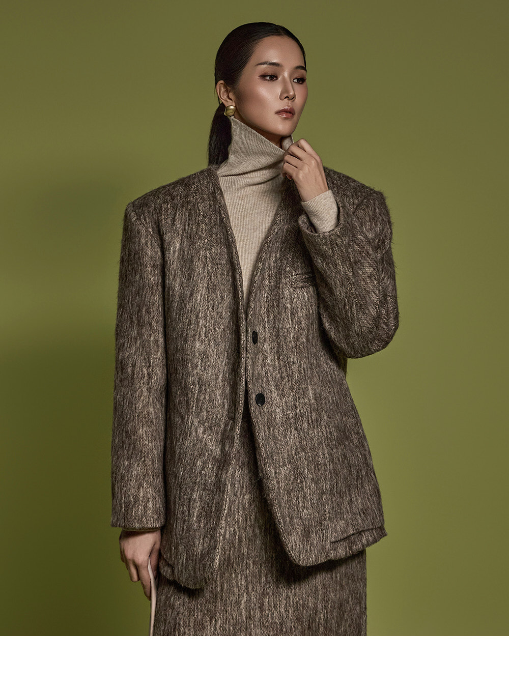 这是一款日常风格的上衣。 采用柔软的聚酯纤维、尼龙及粘胶混纺材质制作,ONE尺码设计,可根据体型舒适穿着。 无额外开合设计,弹性良好,穿着舒适,高领设计提升保暖性。 多种色彩选择,修身版型营造纤细外观,可作为外套内搭单品使用。 基础设计与适中长度,便于日常穿搭,推荐给DINT顾客。 模特身高173CM,穿着ONE尺码,颜色为米色。