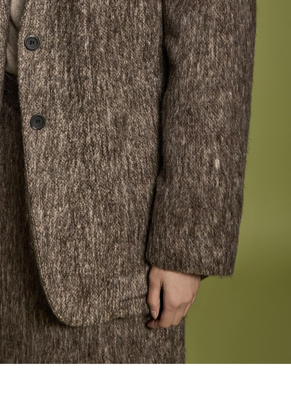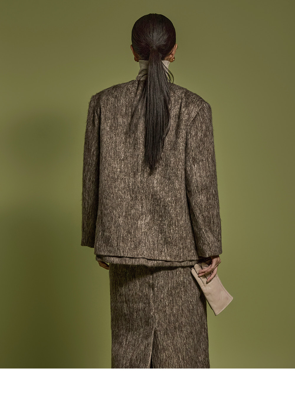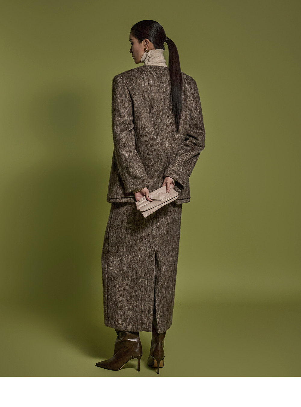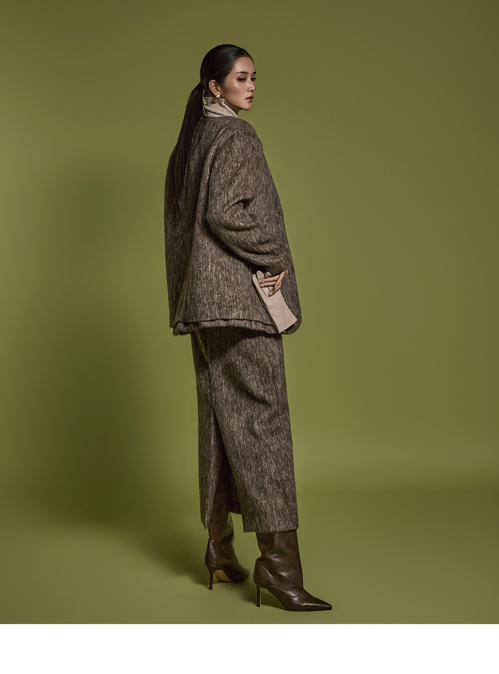 헤어리한 원단으로 시즌에 맞는 무드를 연출하고