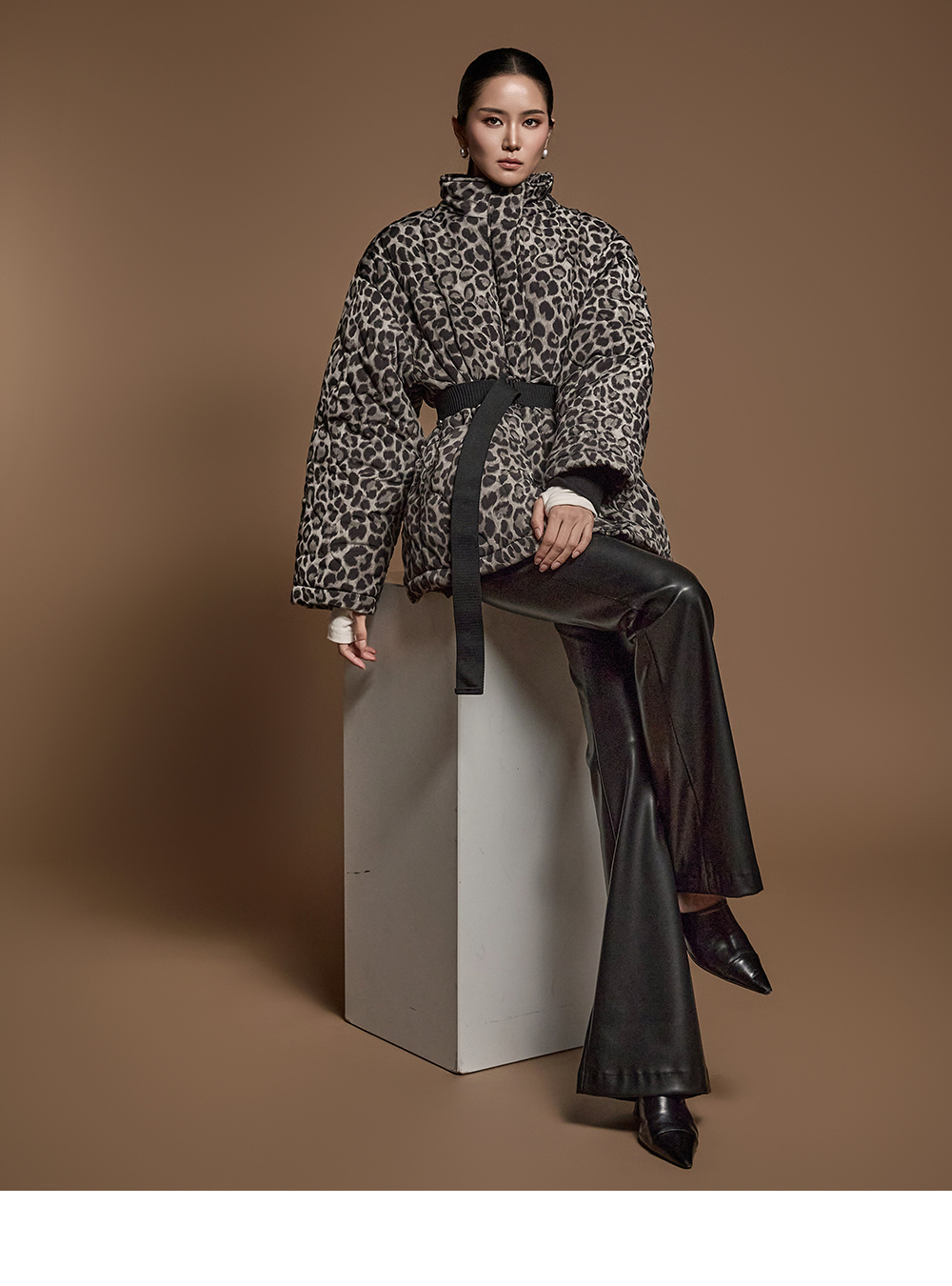 전체 레더 원단으로 유니크한 룩을 완성합니다.