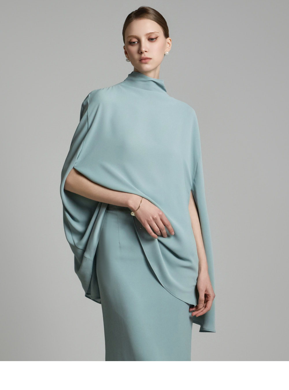 가볍게 떨어지는 케이프 디자인으로 제작되었습니다.