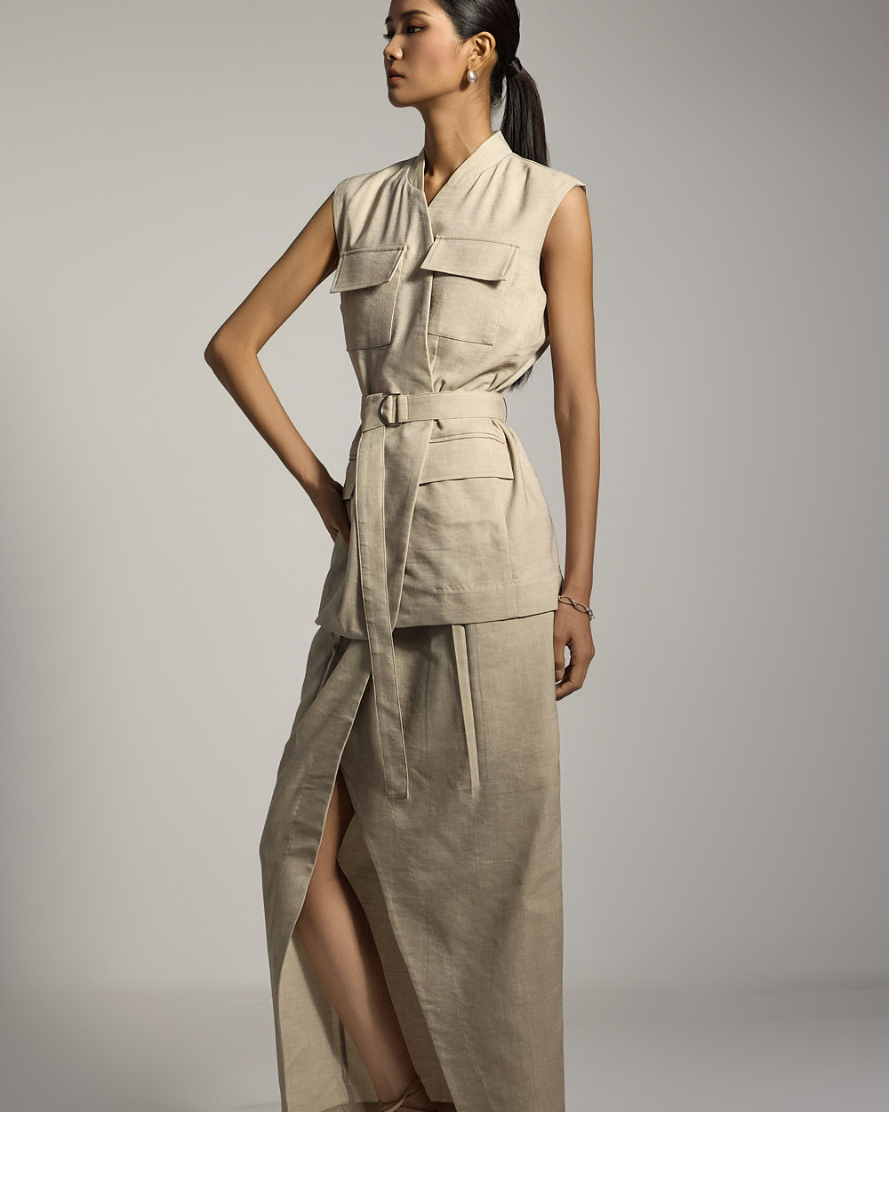 폴리에스테르, 레이온, 린넨, 코튼, 스판 혼방 소재로 제작되어