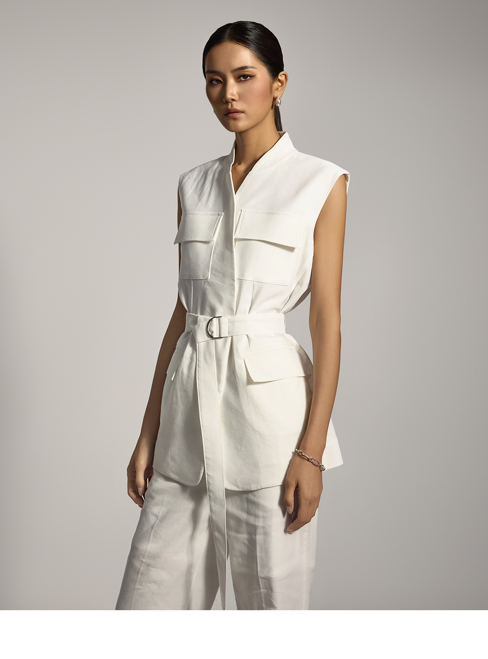 전면 후크와 지퍼 여밈으로 간편하게 착용할 수 있으며,