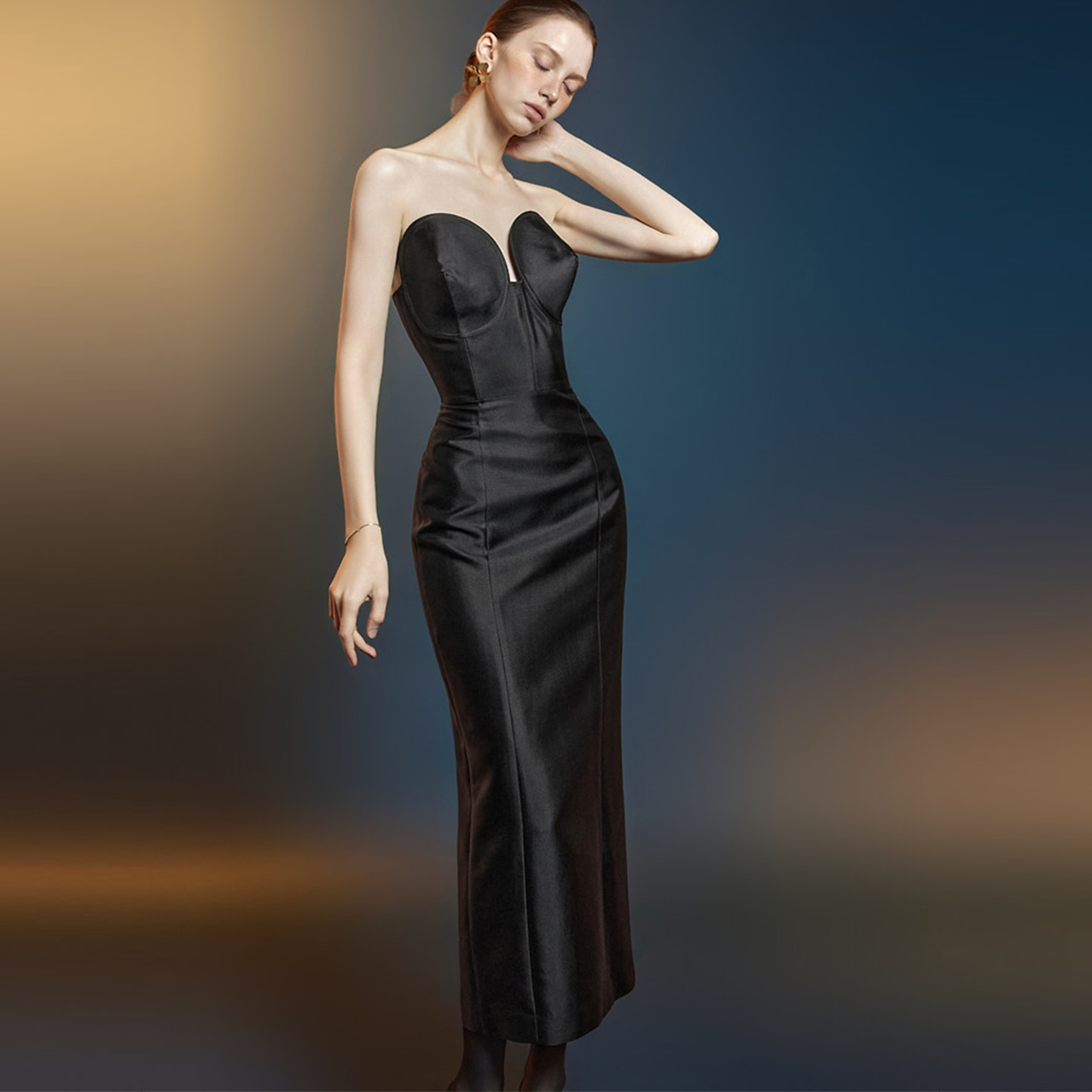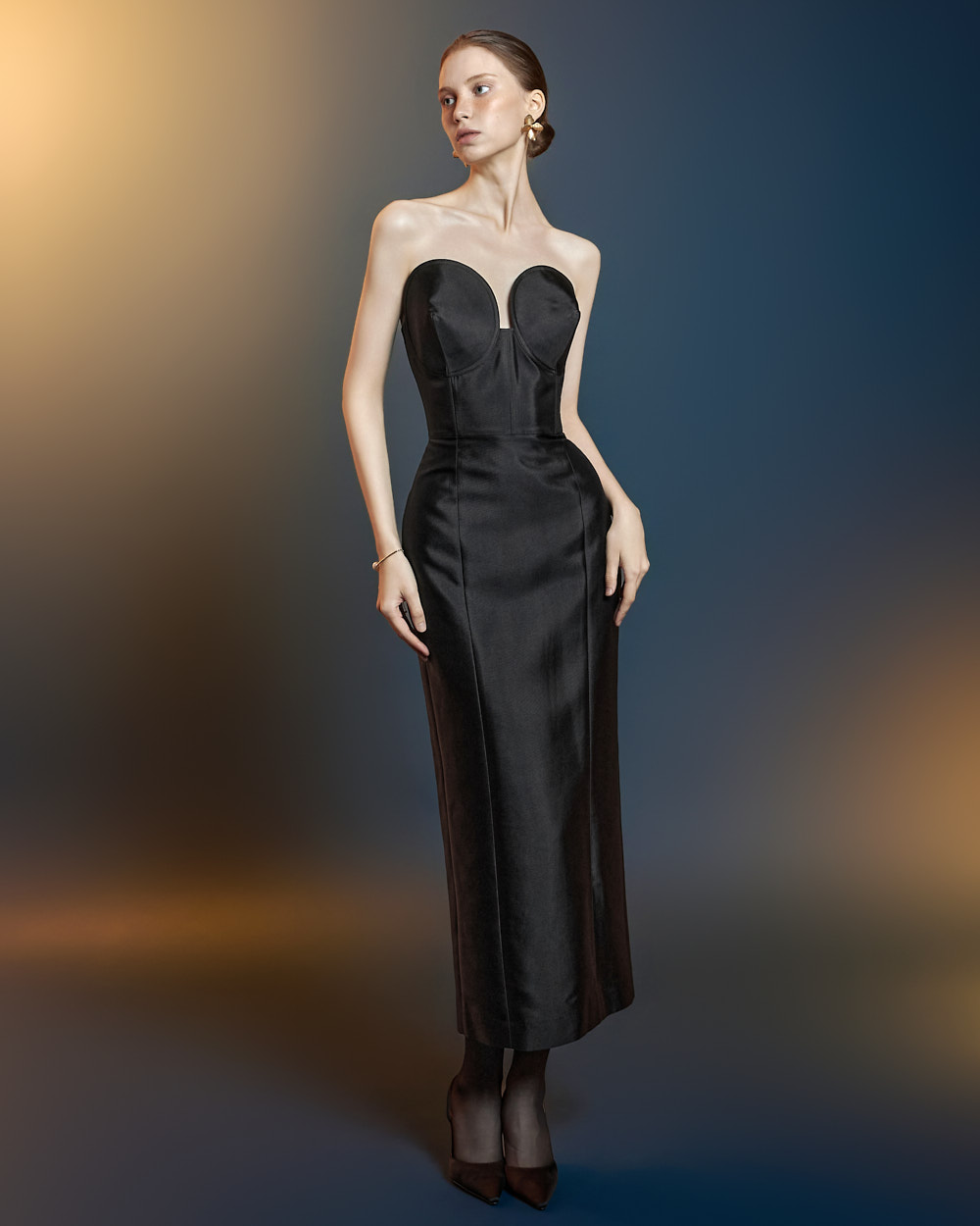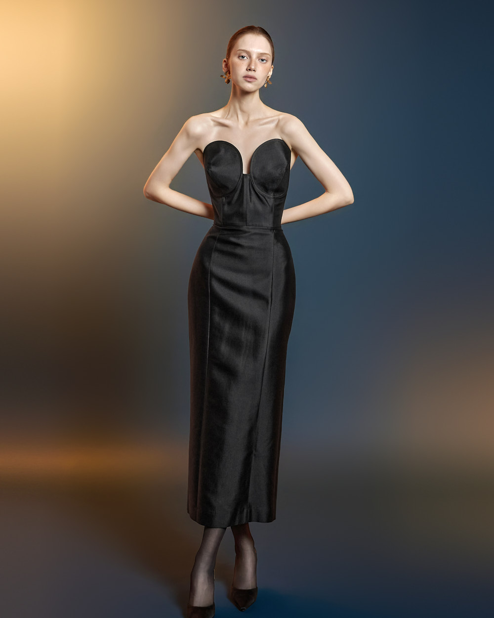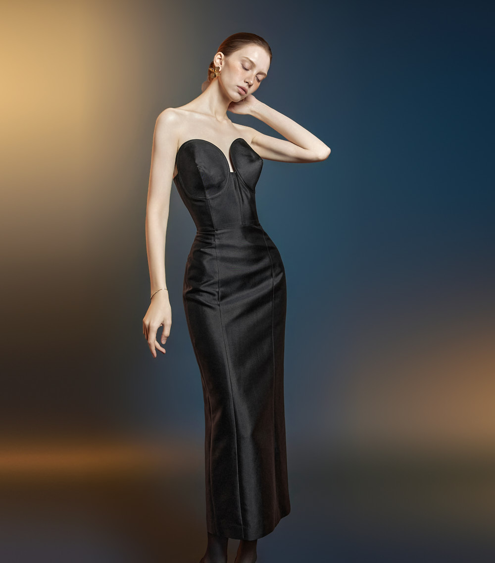 고급스러운 실루엣의 슬림핏 드레스입니다.