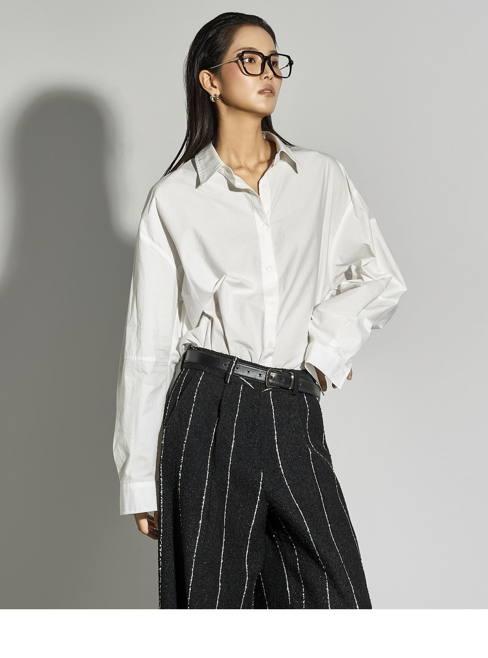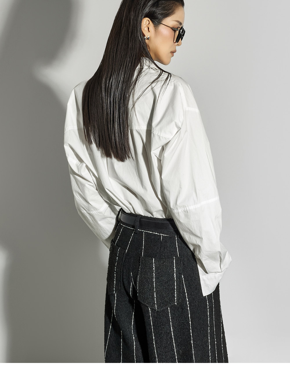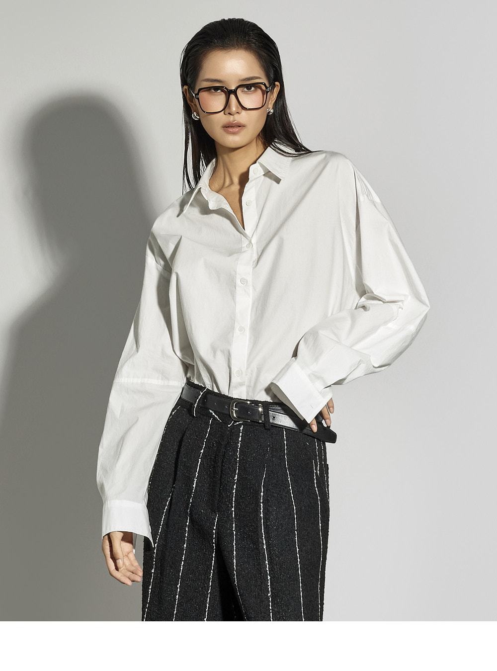 这是一款简约时尚风格的衬衫。 采用棉质面料制作,版型挺括,ONE SIZE设计打造宽松廓形。 宽松版型与不对称下摆增添潮流感与自然造型感,后背的打褶细节成为低调亮点。 前襟纽扣开合方便穿脱,设计简洁基础,易于与多种下装搭配,实用性高。 既适合日常穿搭,也适合想增添时尚感的造型日。 173CM模特身穿ONE尺寸,WHITE色。