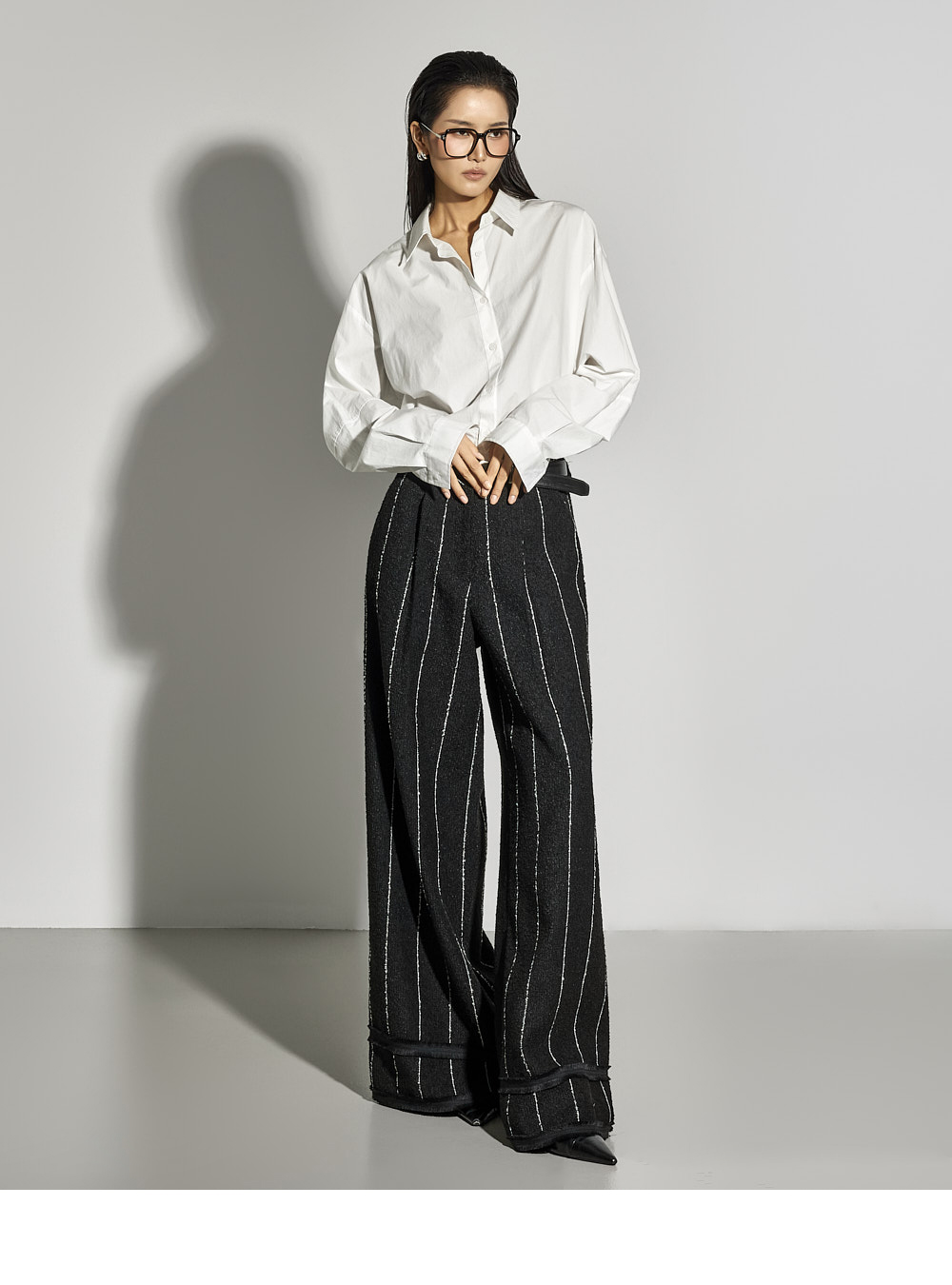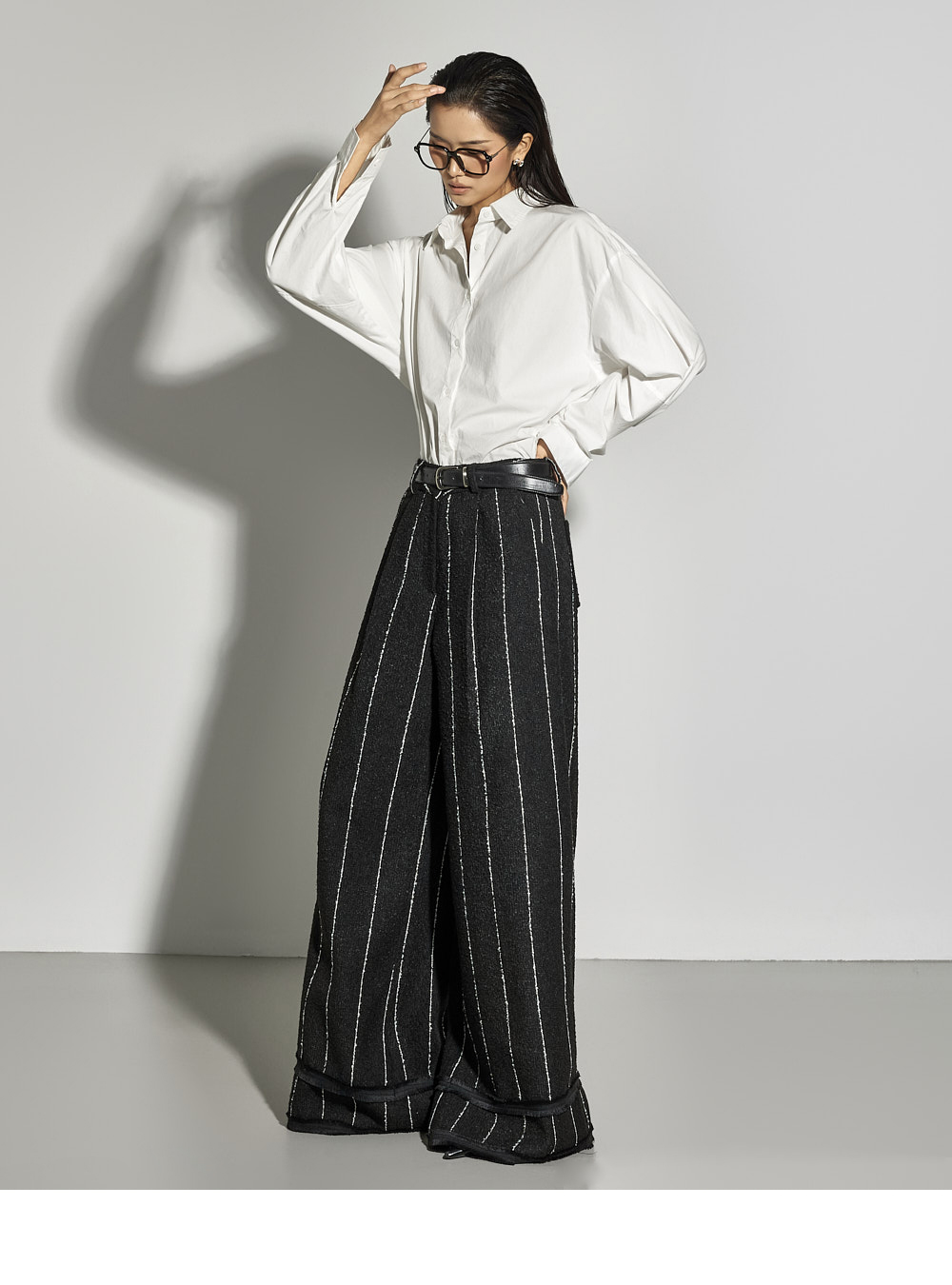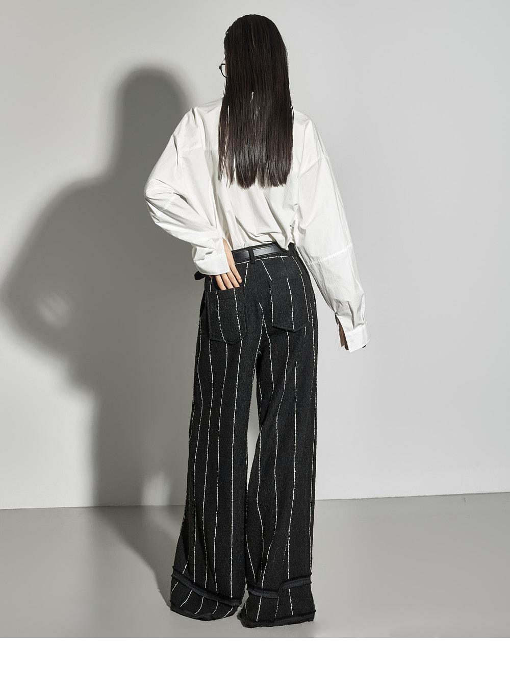 这是一款简约时尚风格的衬衫。 采用棉质面料制作,版型挺括,ONE SIZE设计打造宽松廓形。 宽松版型与不对称下摆增添潮流感与自然造型感,后背的打褶细节成为低调亮点。 前襟纽扣开合方便穿脱,设计简洁基础,易于与多种下装搭配,实用性高。 既适合日常穿搭,也适合想增添时尚感的造型日。 173CM模特身穿ONE尺寸,WHITE色。