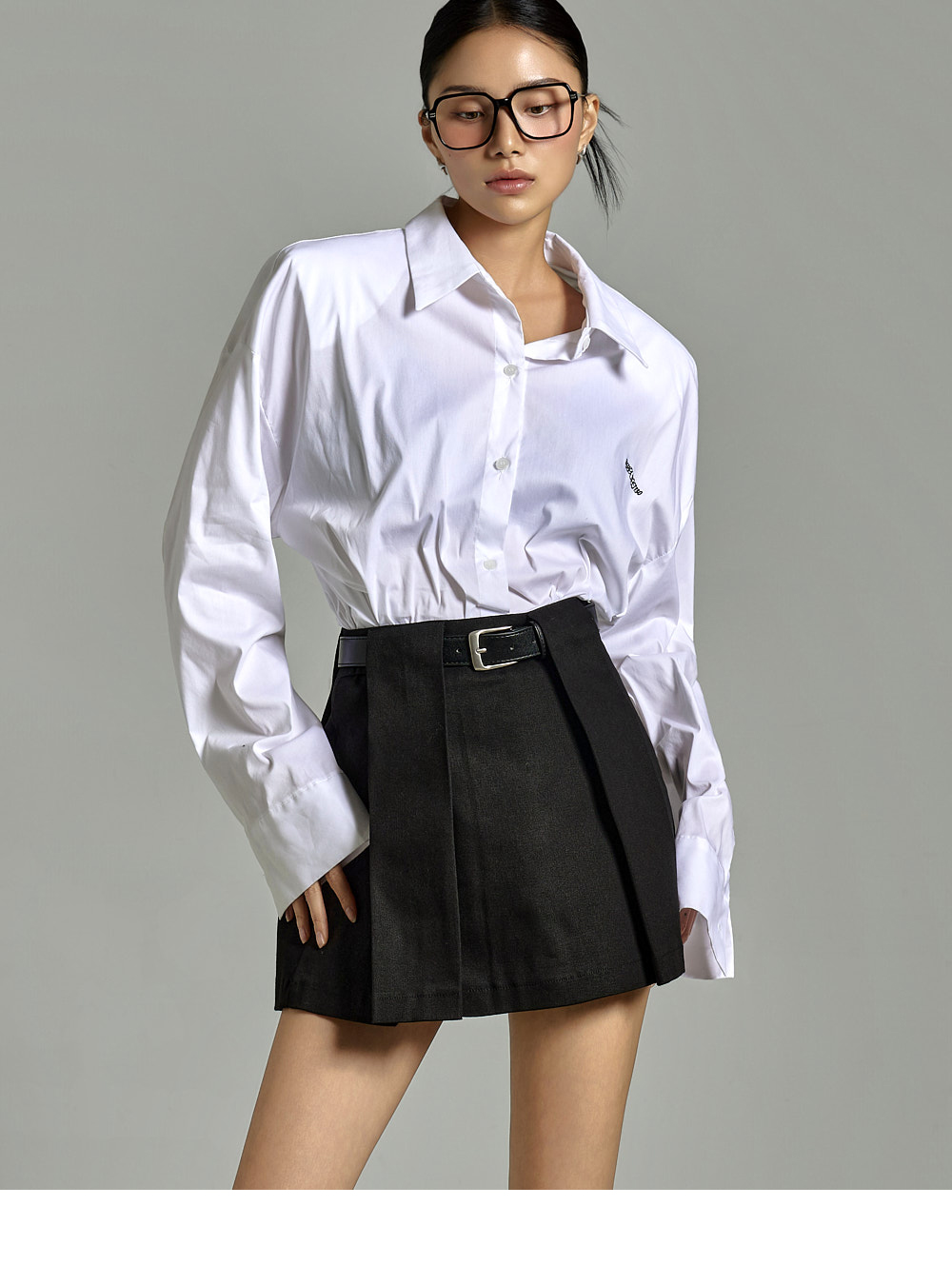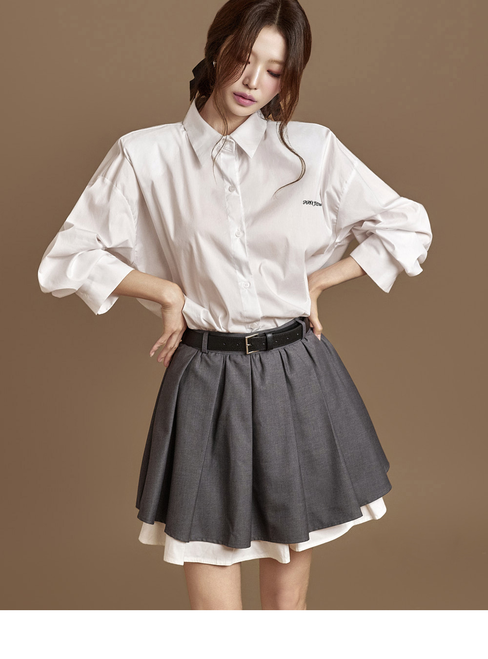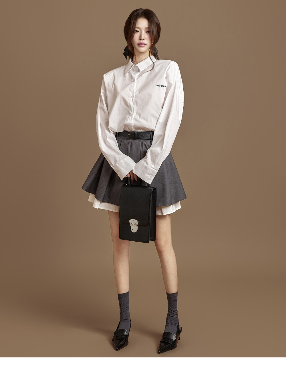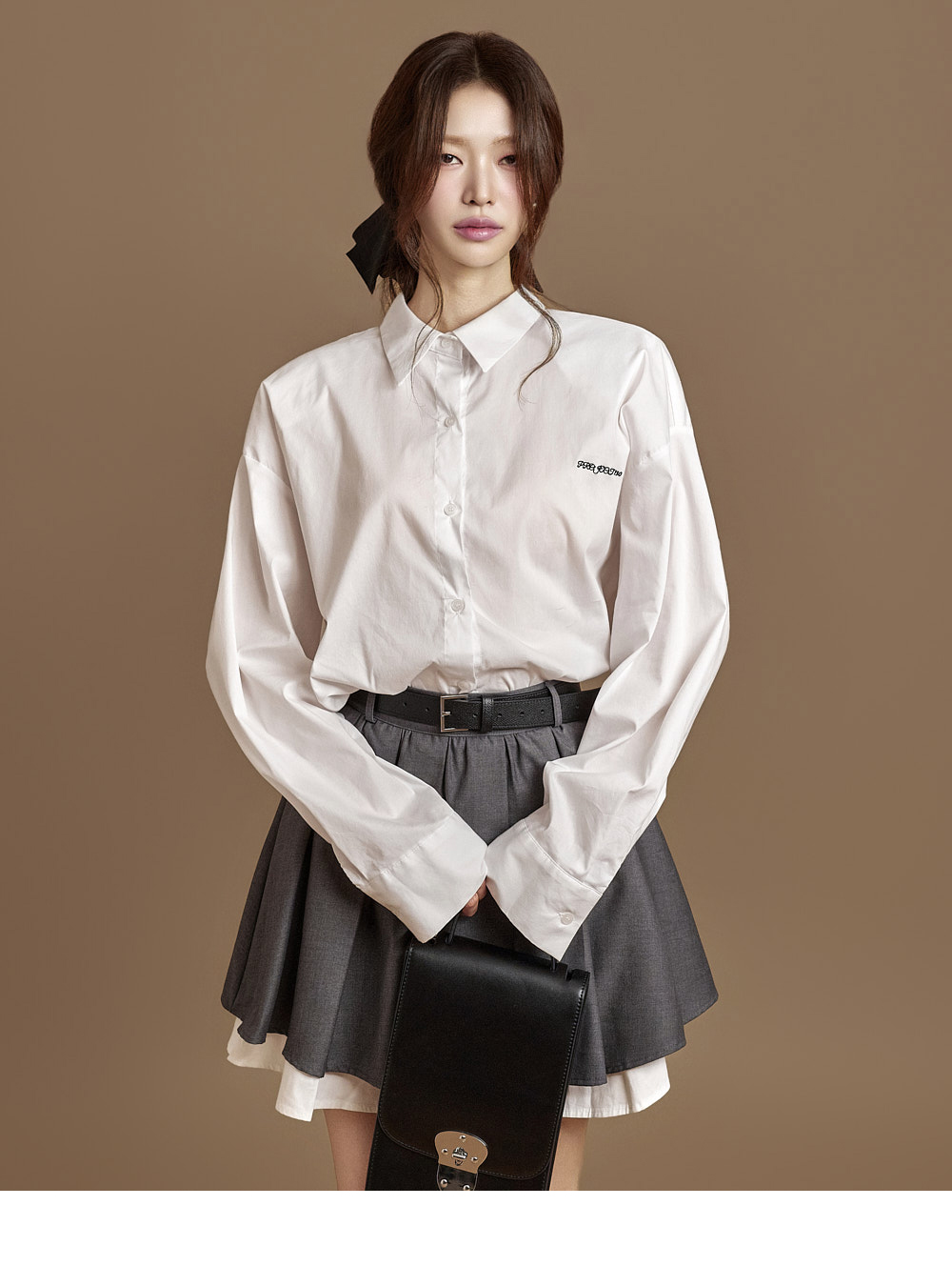 这是一款日常氛围的字母刺绣衬衫。 采用棉、人造丝、尼龙及氨纶混纺面料制作,穿着舒适,质感自然。 前幅加入刺绣字母细节,增添亮点,后幅的褶皱设计,让整体造型更具层次感与时尚感。 袖口纽扣与前幅纽扣设计,方便穿脱,肩部配有可拆卸肩垫,打造稳妥的廓形。 面料弹性适中,活动自如,适合作为叠穿单品,可轻松搭配日常造型或作为造型亮点,是一款高实用性的衬衫。 模特身高 171CM,穿着 ONE SIZE,白色款。