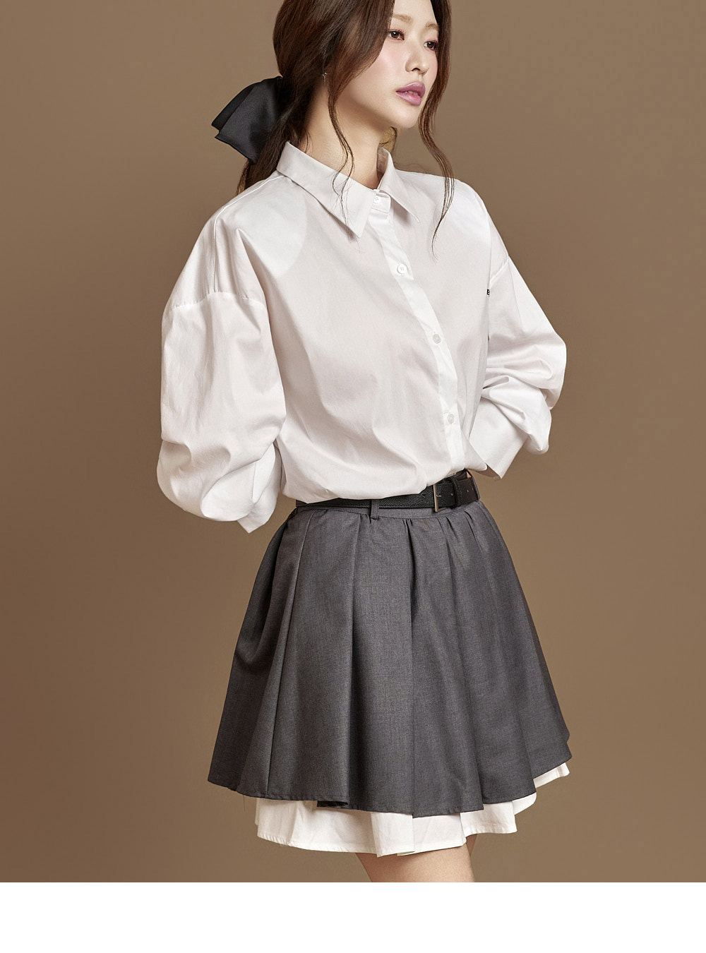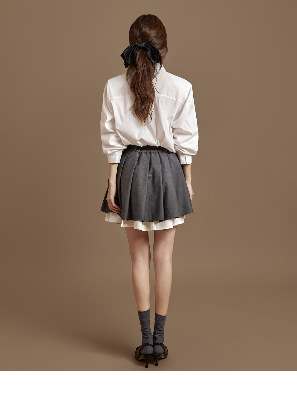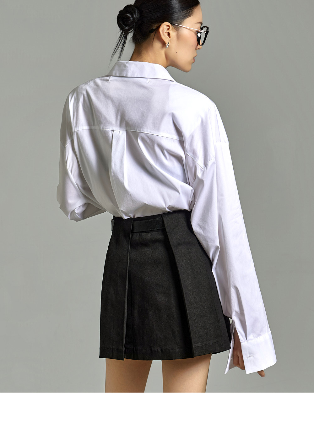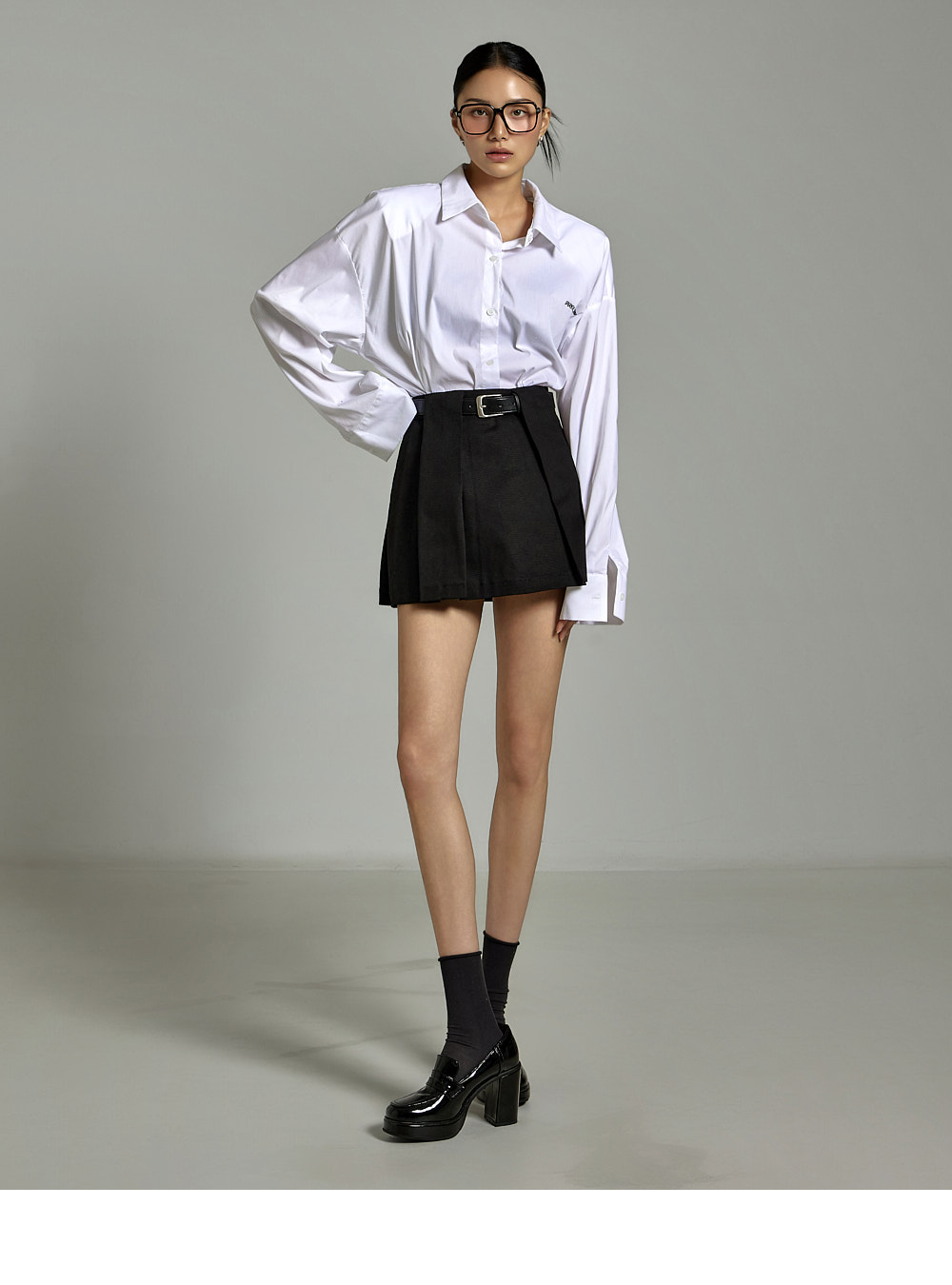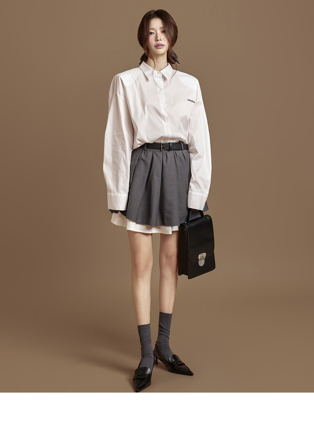 这是一款日常氛围的字母刺绣衬衫。 采用棉、人造丝、尼龙及氨纶混纺面料制作,穿着舒适,质感自然。 前幅加入刺绣字母细节,增添亮点,后幅的褶皱设计,让整体造型更具层次感与时尚感。 袖口纽扣与前幅纽扣设计,方便穿脱,肩部配有可拆卸肩垫,打造稳妥的廓形。 面料弹性适中,活动自如,适合作为叠穿单品,可轻松搭配日常造型或作为造型亮点,是一款高实用性的衬衫。 模特身高 171CM,穿着 ONE SIZE,白色款。
