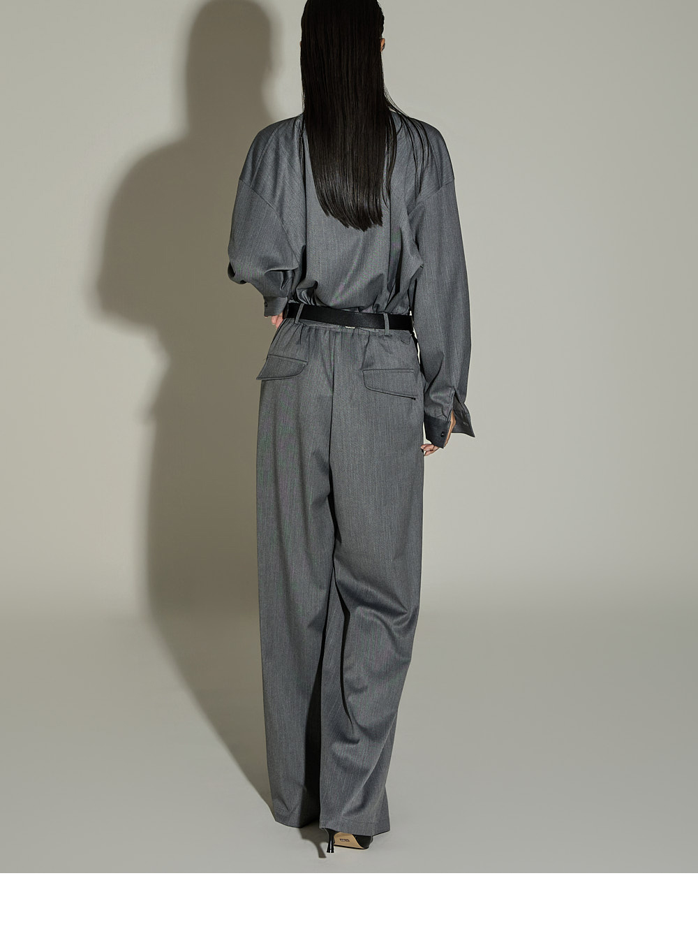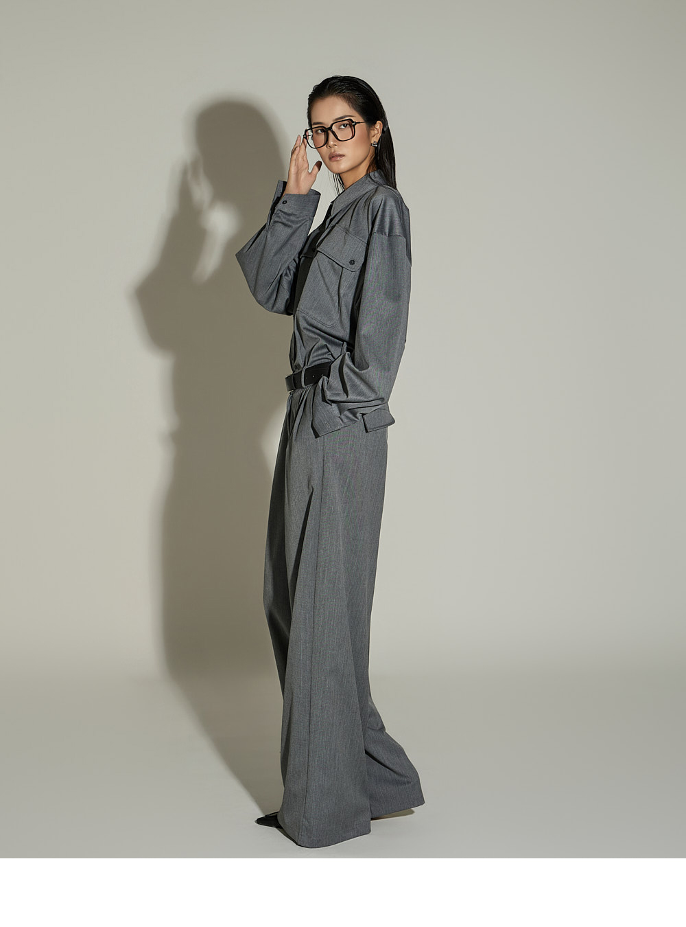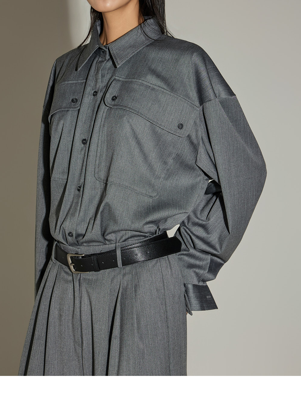 模特身高 173CM,穿着 ONE SIZE,GRAY 颜色。